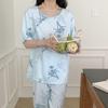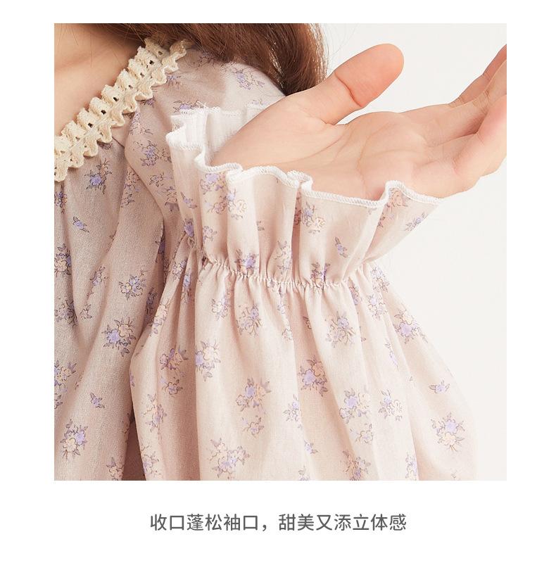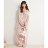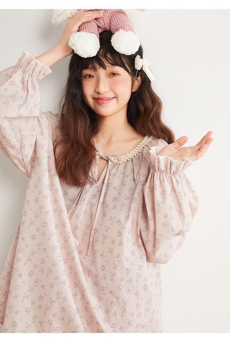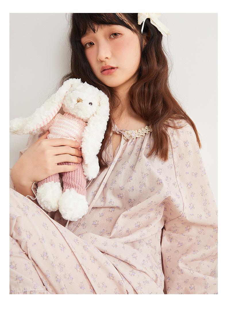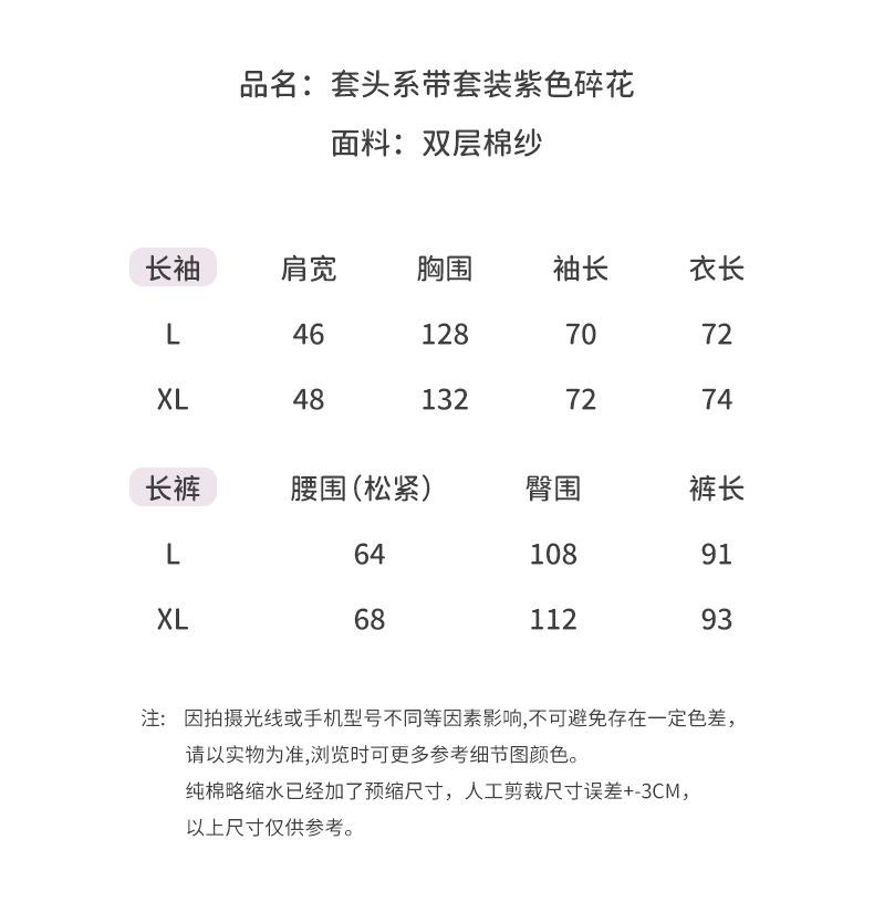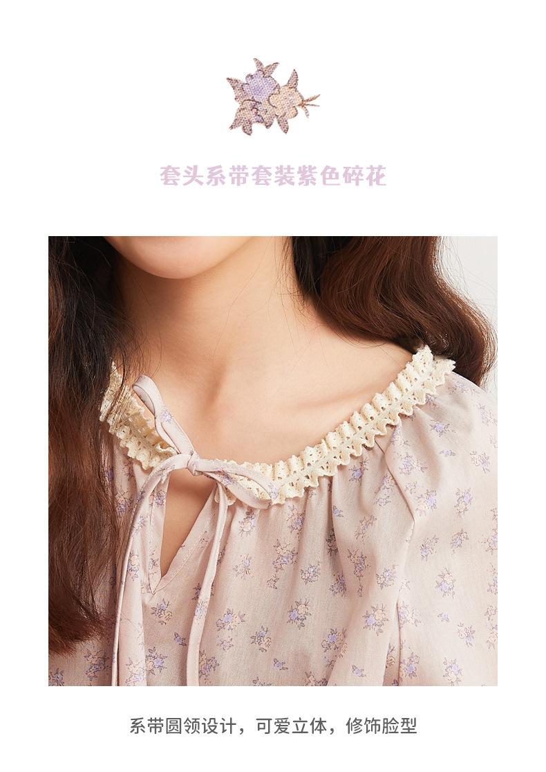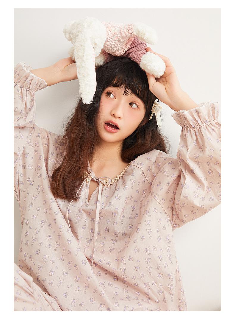 Jiangnan Wo 25 Nuevos pijamas de primavera para mujer, jersey de algodón con cordones, ropa de hogar con estampado floral morado, traje de alta gama