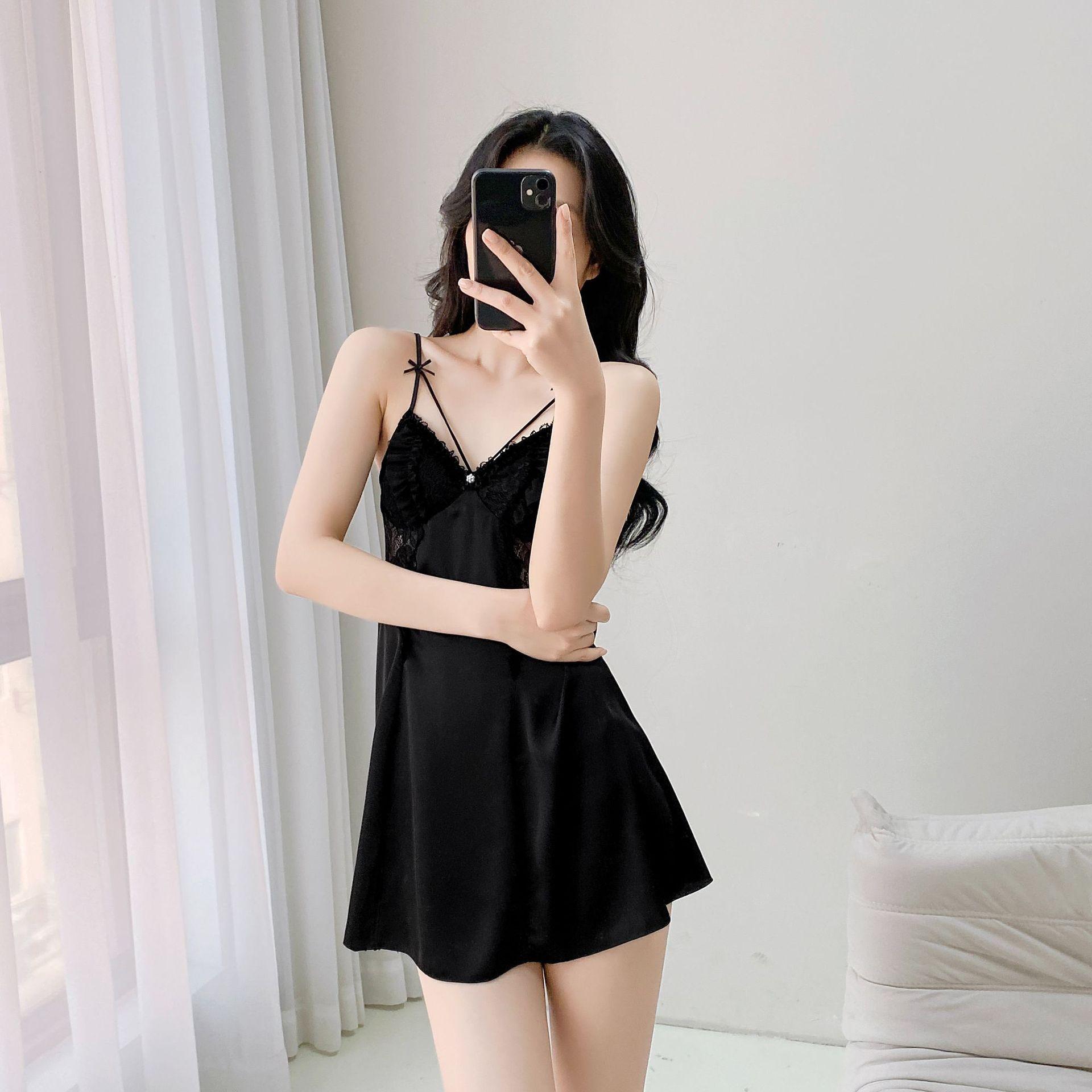 Primavera y Verano Nuevo Camisón Sexy Tentación para Mujer con Tirantes Pijama de Seda Helada Pijama Puro Deseo Ropa para el Hogar Seda