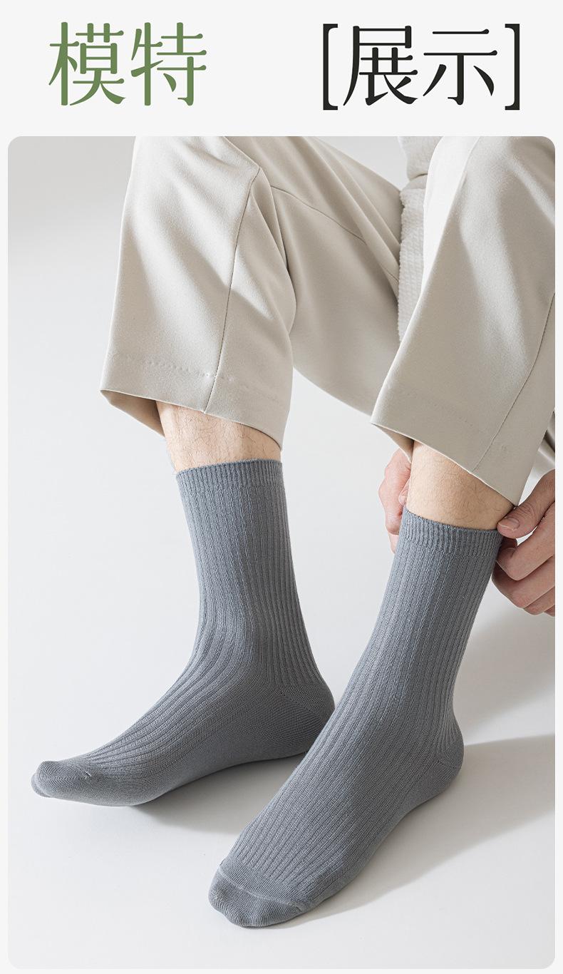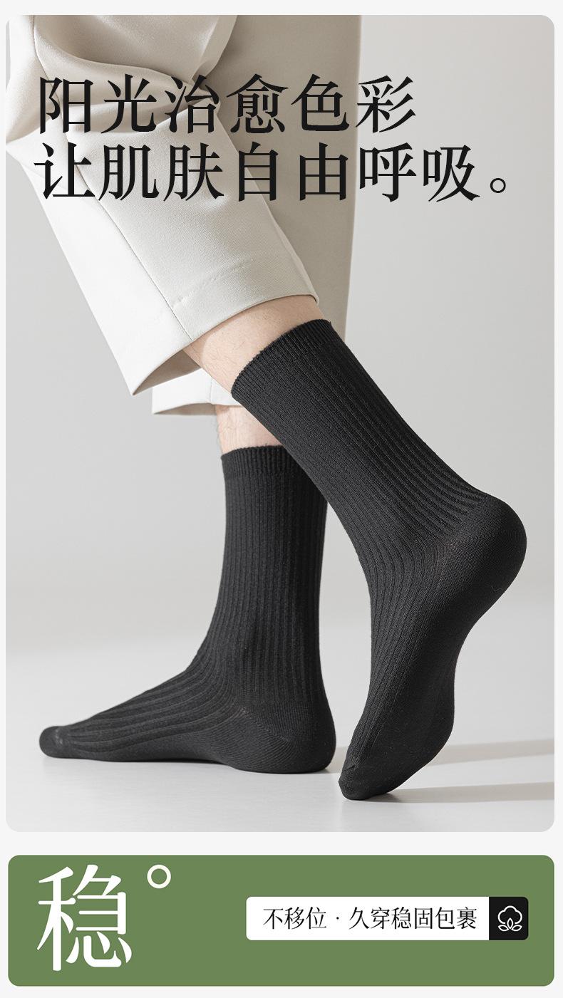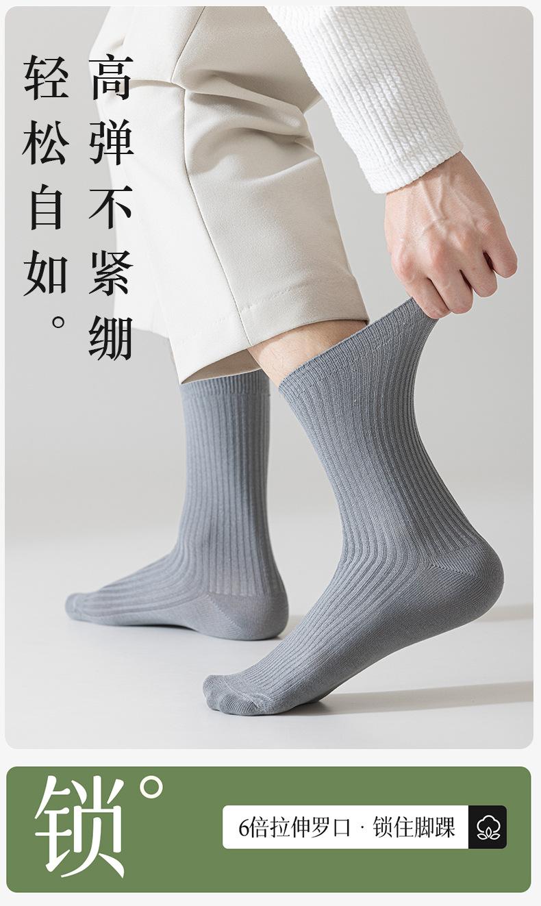 Calcetines Zhuji para Hombre Primavera y Verano Color Puro Media Caña Patrón Vertical Doble Aguja Casuales Largos Al Por Mayor Alta Elasticidad Transpirables Calcetines de Hombre