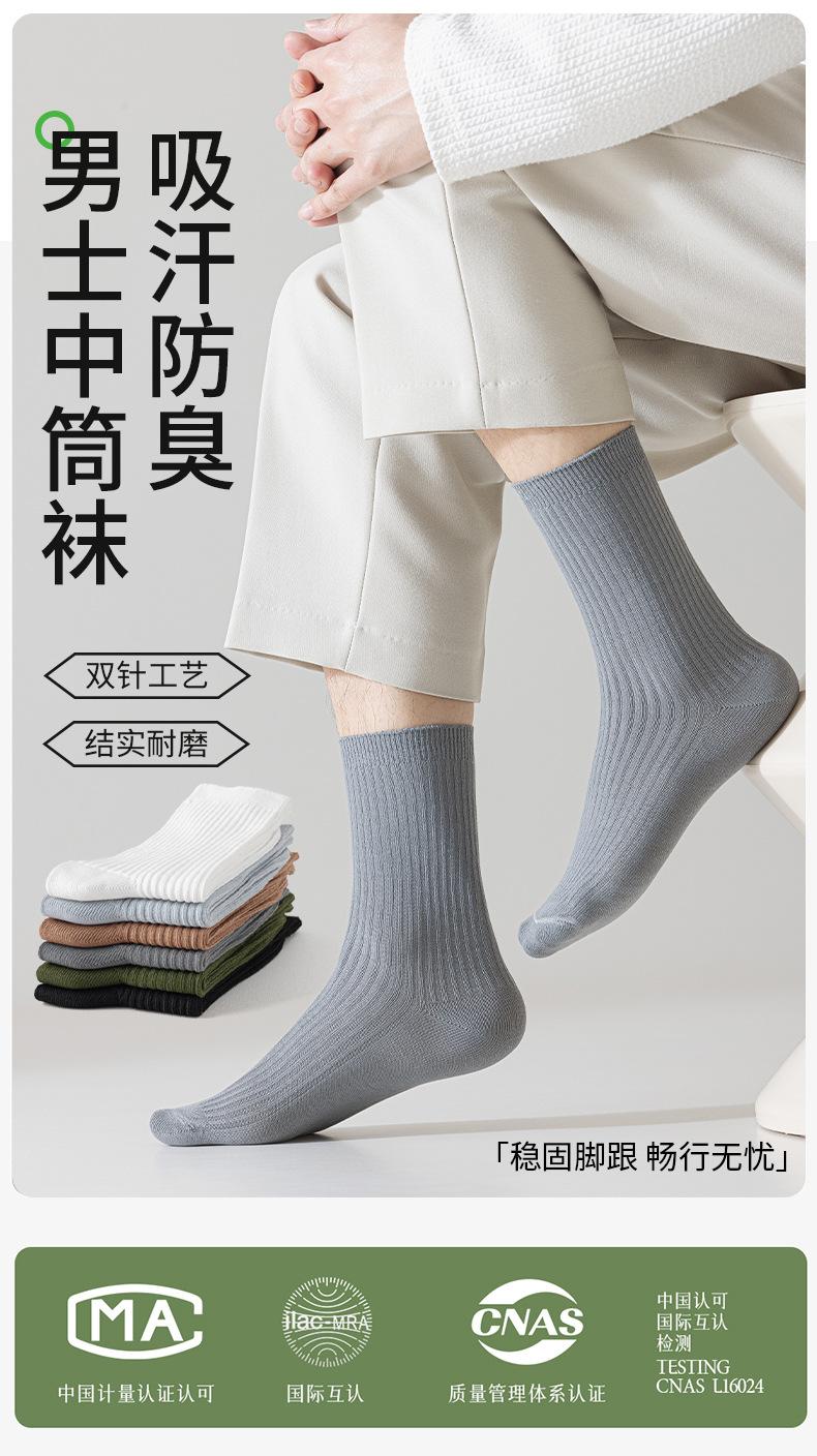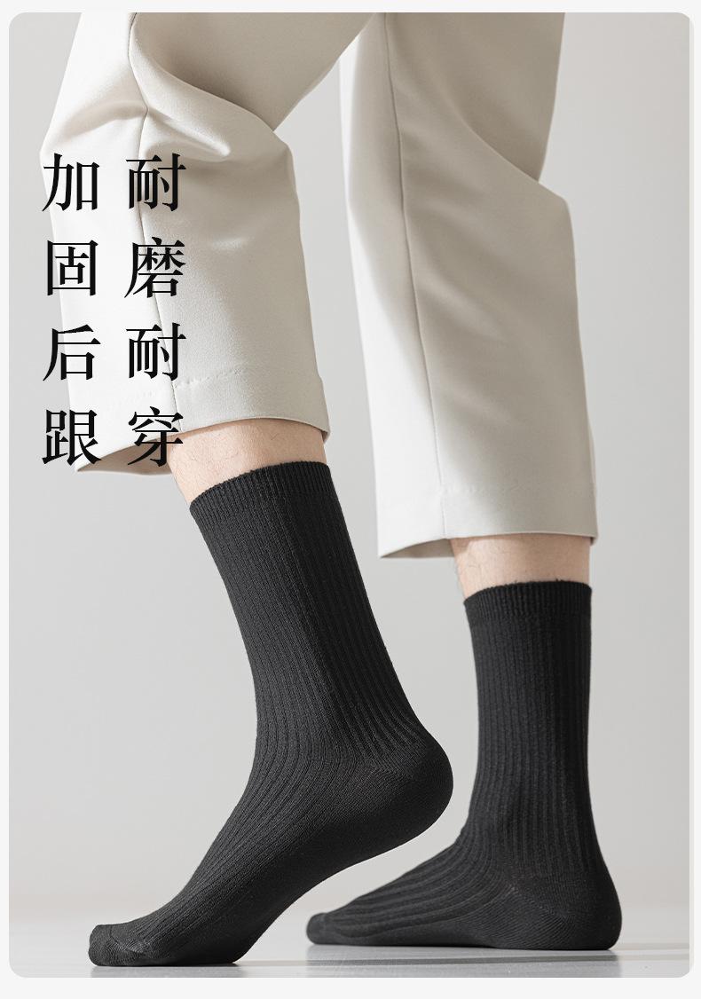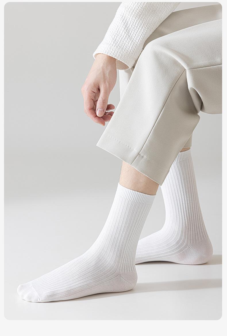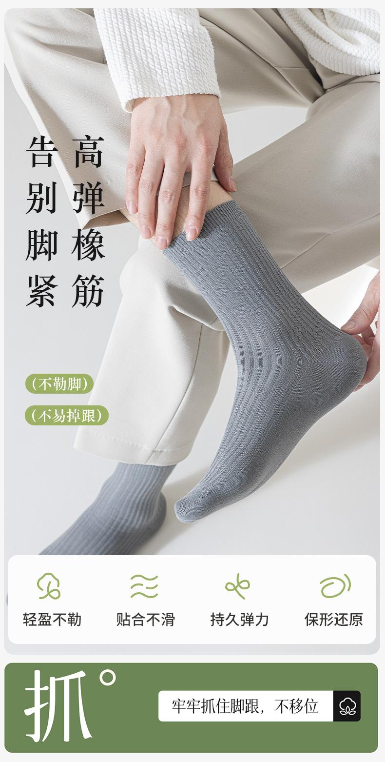 Calcetines Zhuji para Hombre Primavera y Verano Color Puro Media Caña Patrón Vertical Doble Aguja Casuales Largos Al Por Mayor Alta Elasticidad Transpirables Calcetines de Hombre