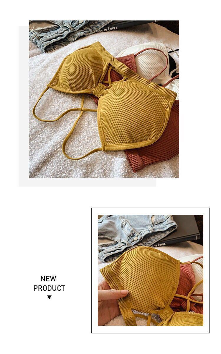 Sujetador tipo top con tirantes cruzados y espalda envuelta para chicas, ropa interior de estudiante, sujetador sin aros y cinturón cruzado