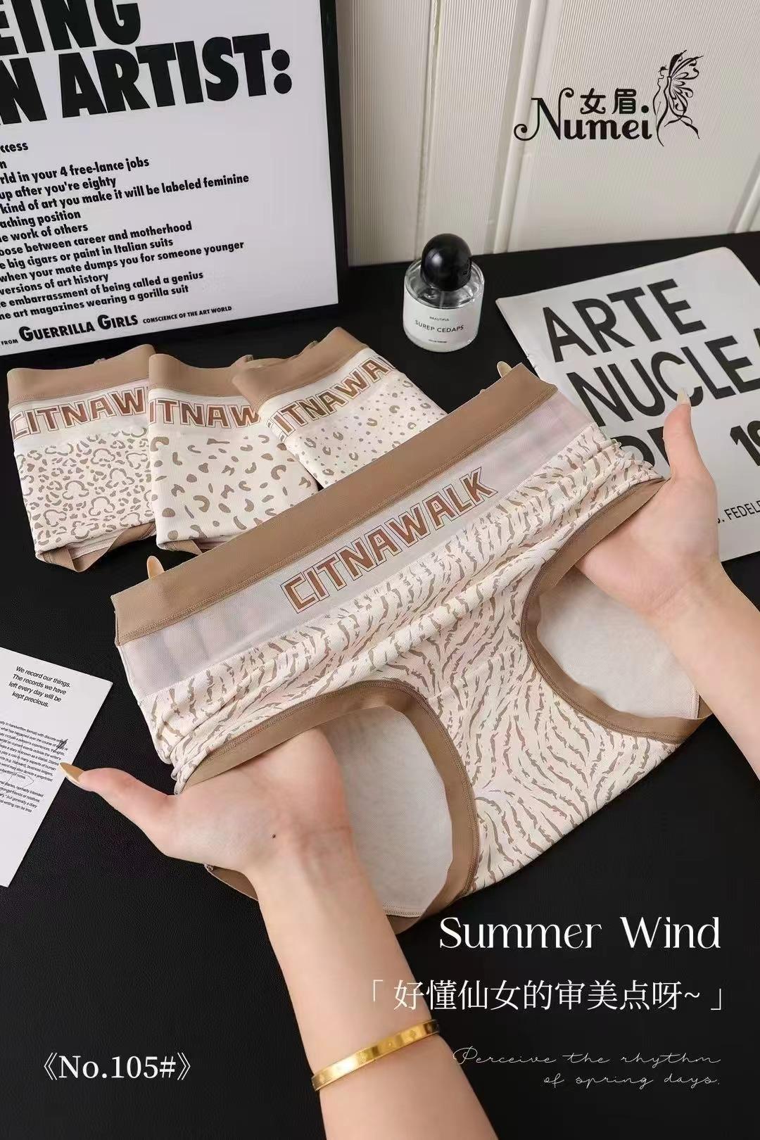 Braguitas de cintura alta modal para mujer, tallas grandes, gorditas, sexys, con estampado de leopardo y letras en contraste de colores claros, para primavera