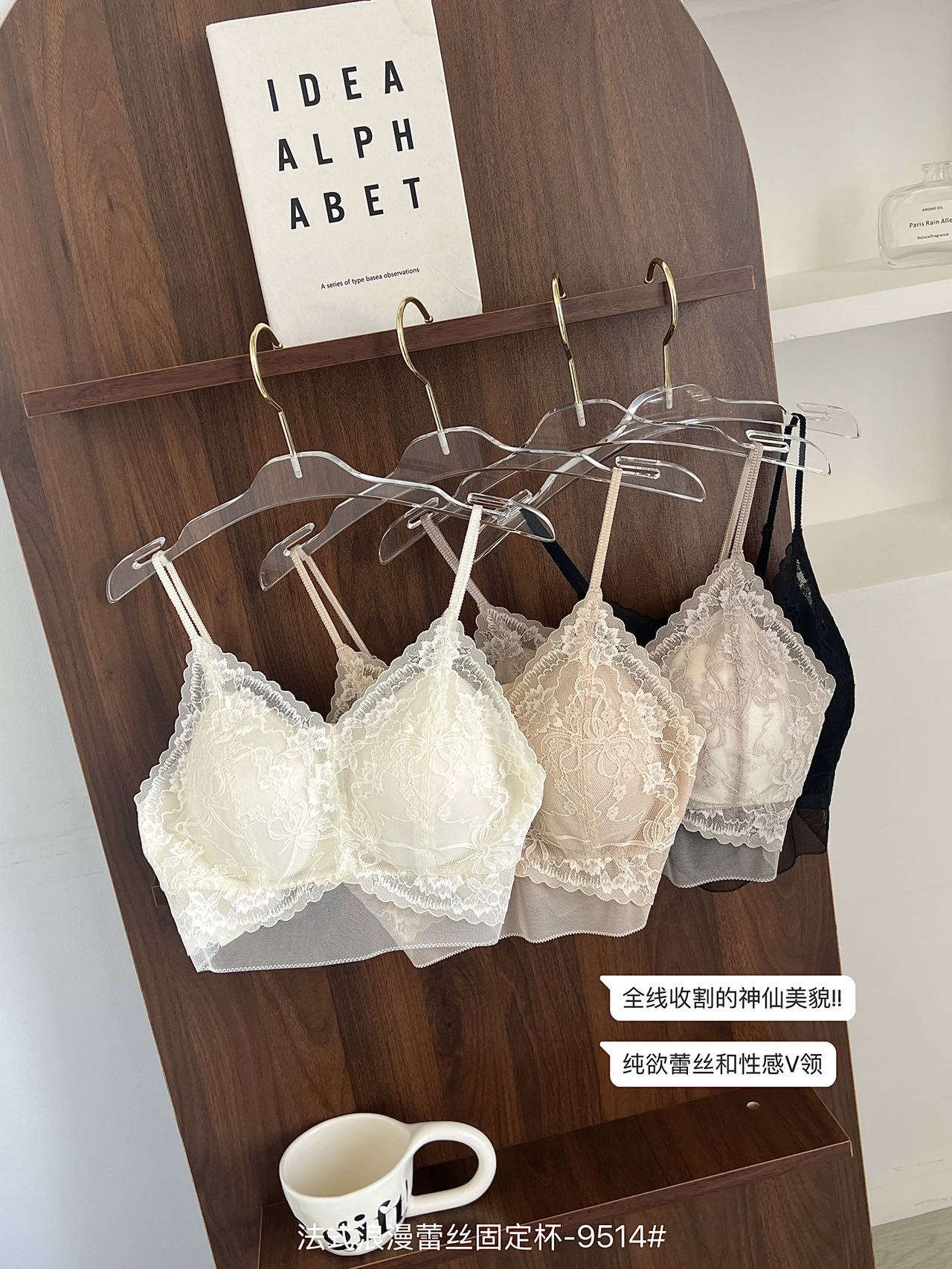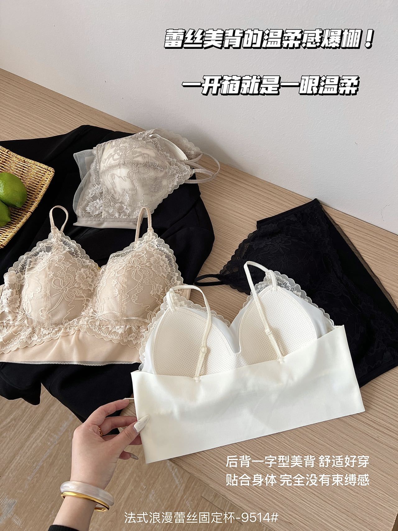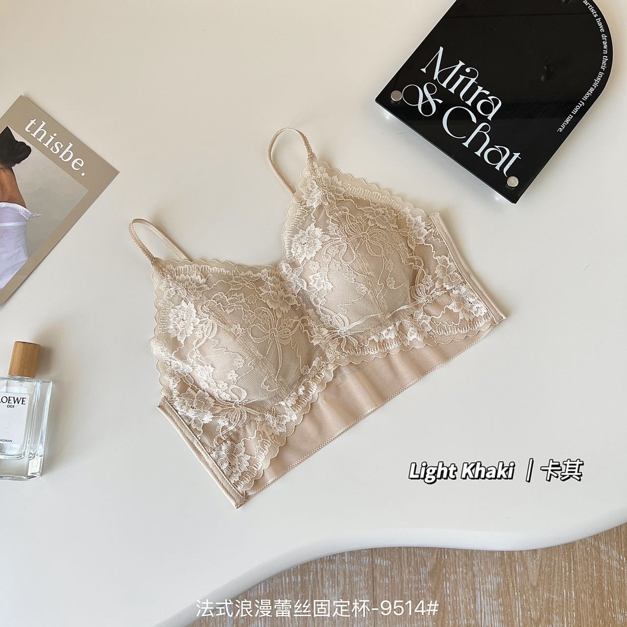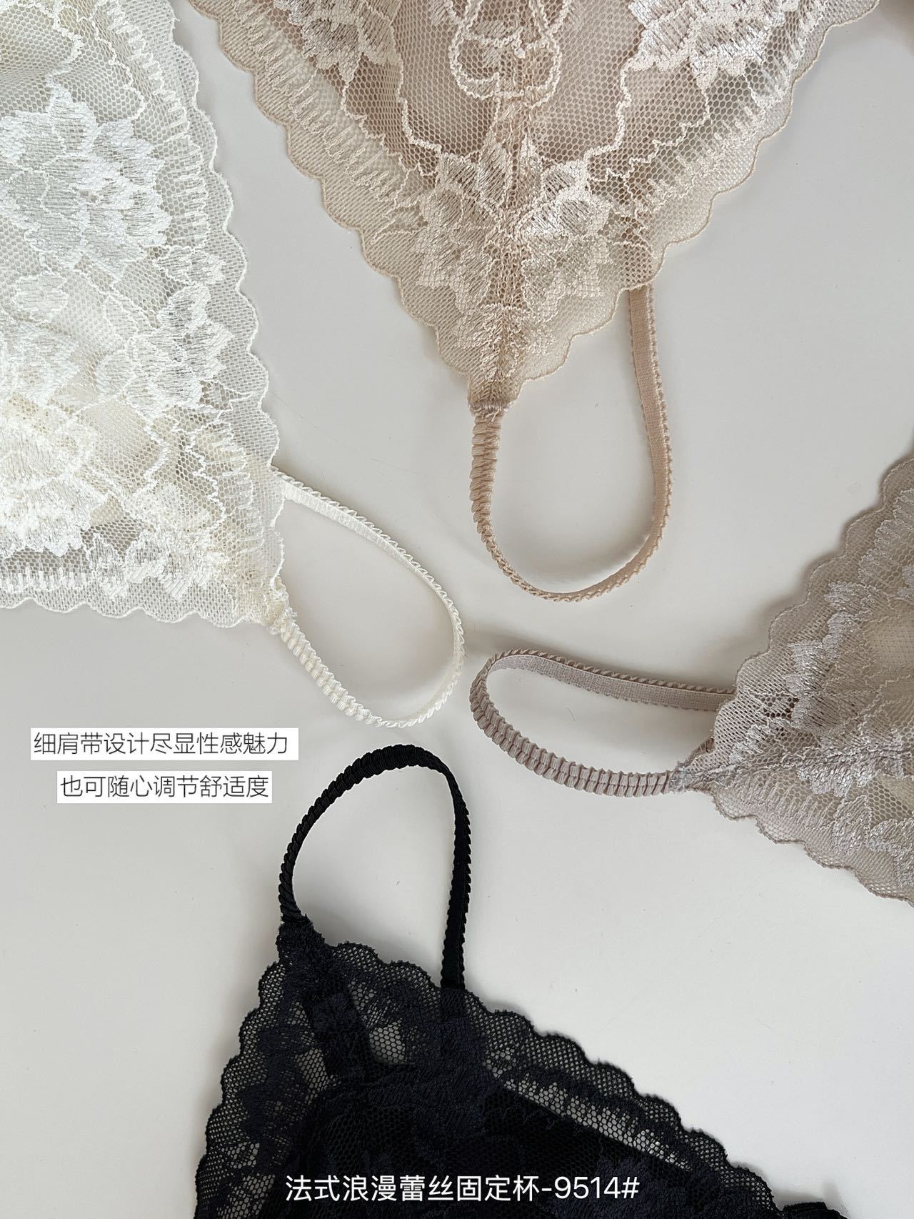 Pure Desire - Elegante lencería de encaje floral, espalda hermosa, tirantes finos, ajustables, cómodas, fruncidas, ligeras y de lujo, 9514