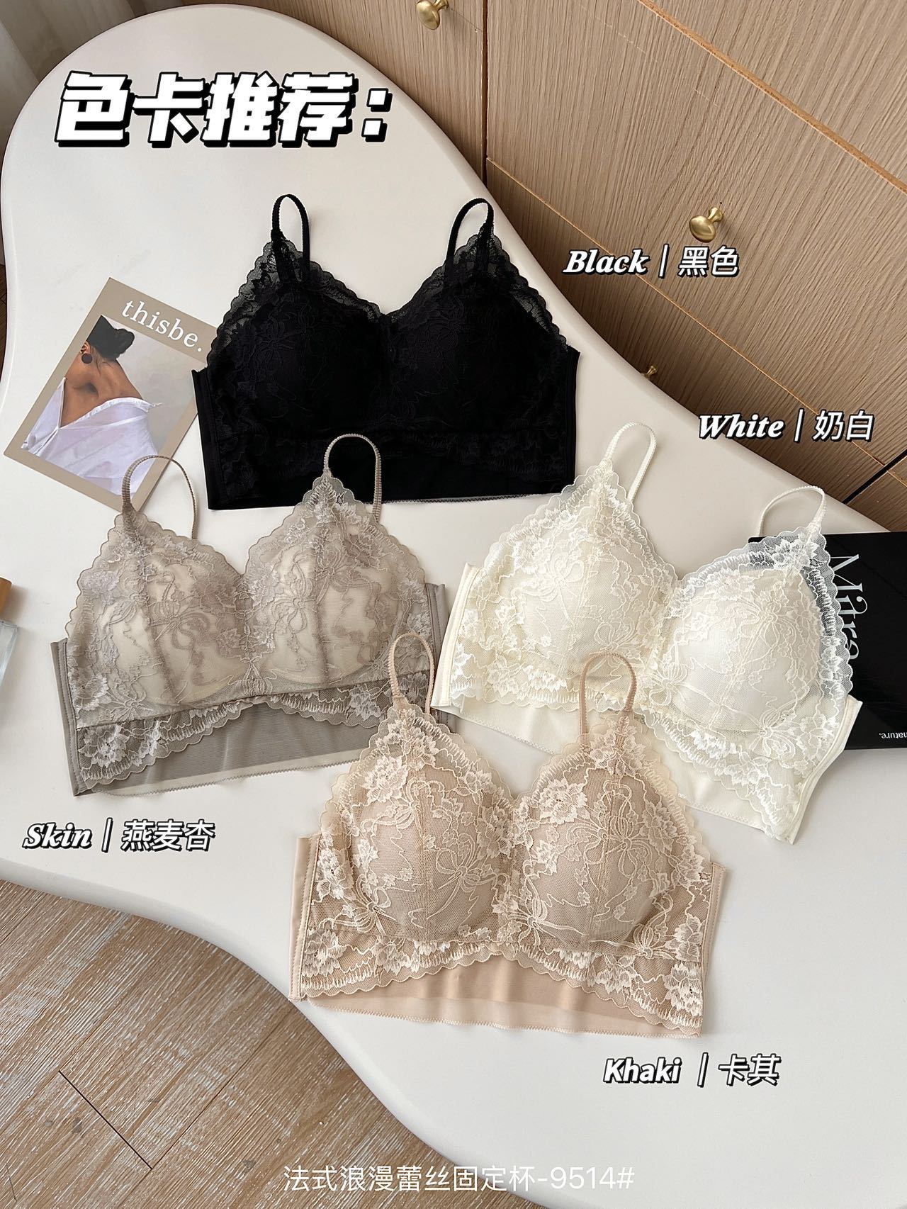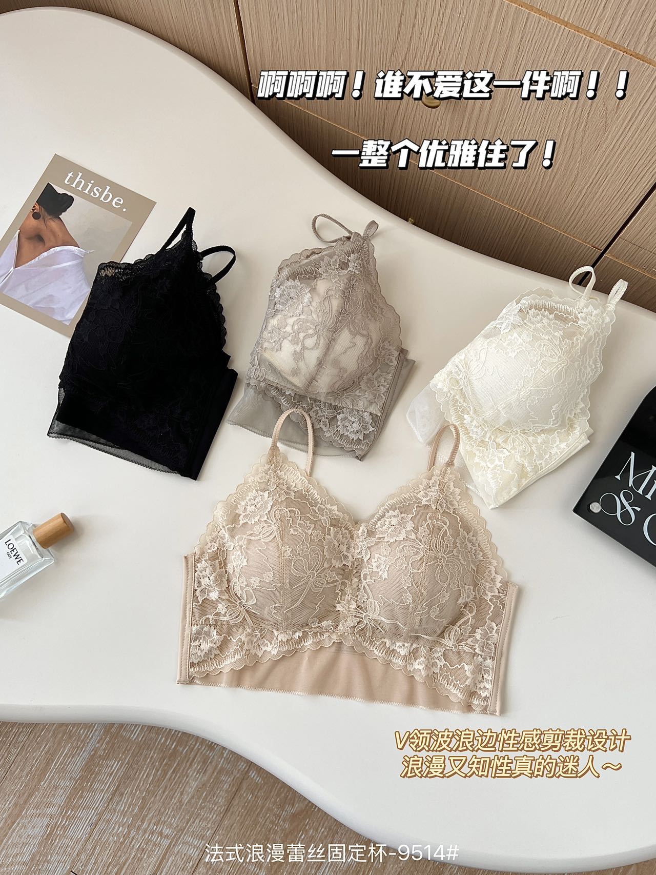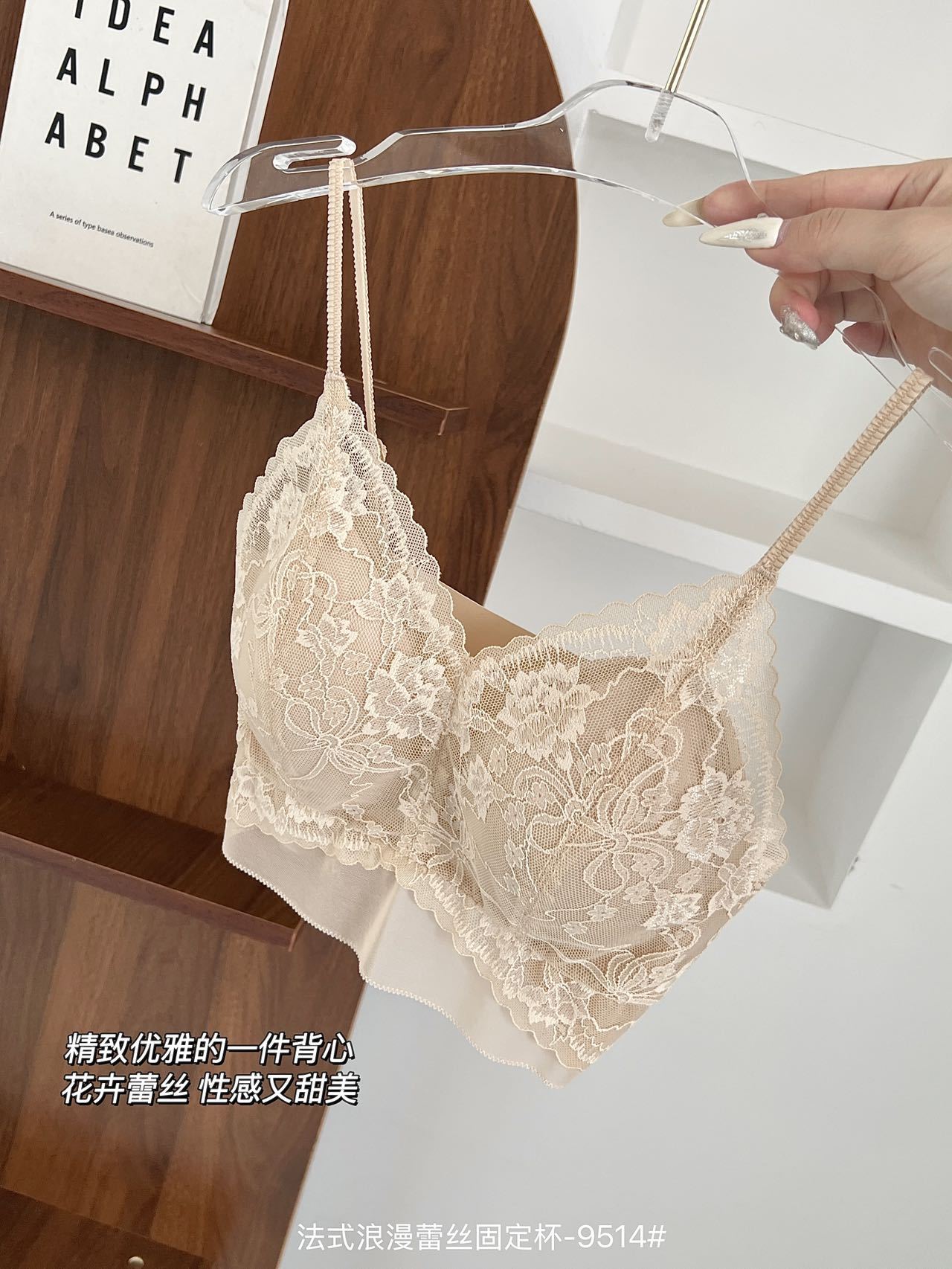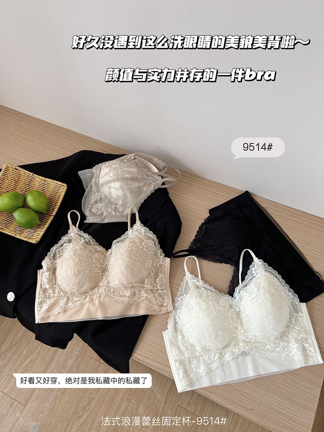 Pure Desire - Elegante lencería de encaje floral, espalda hermosa, tirantes finos, ajustables, cómodas, fruncidas, ligeras y de lujo, 9514