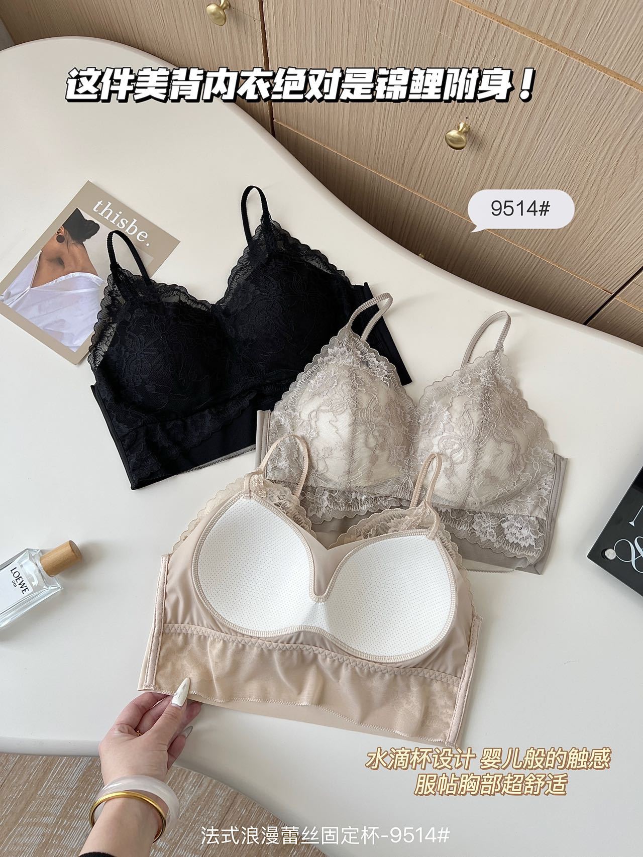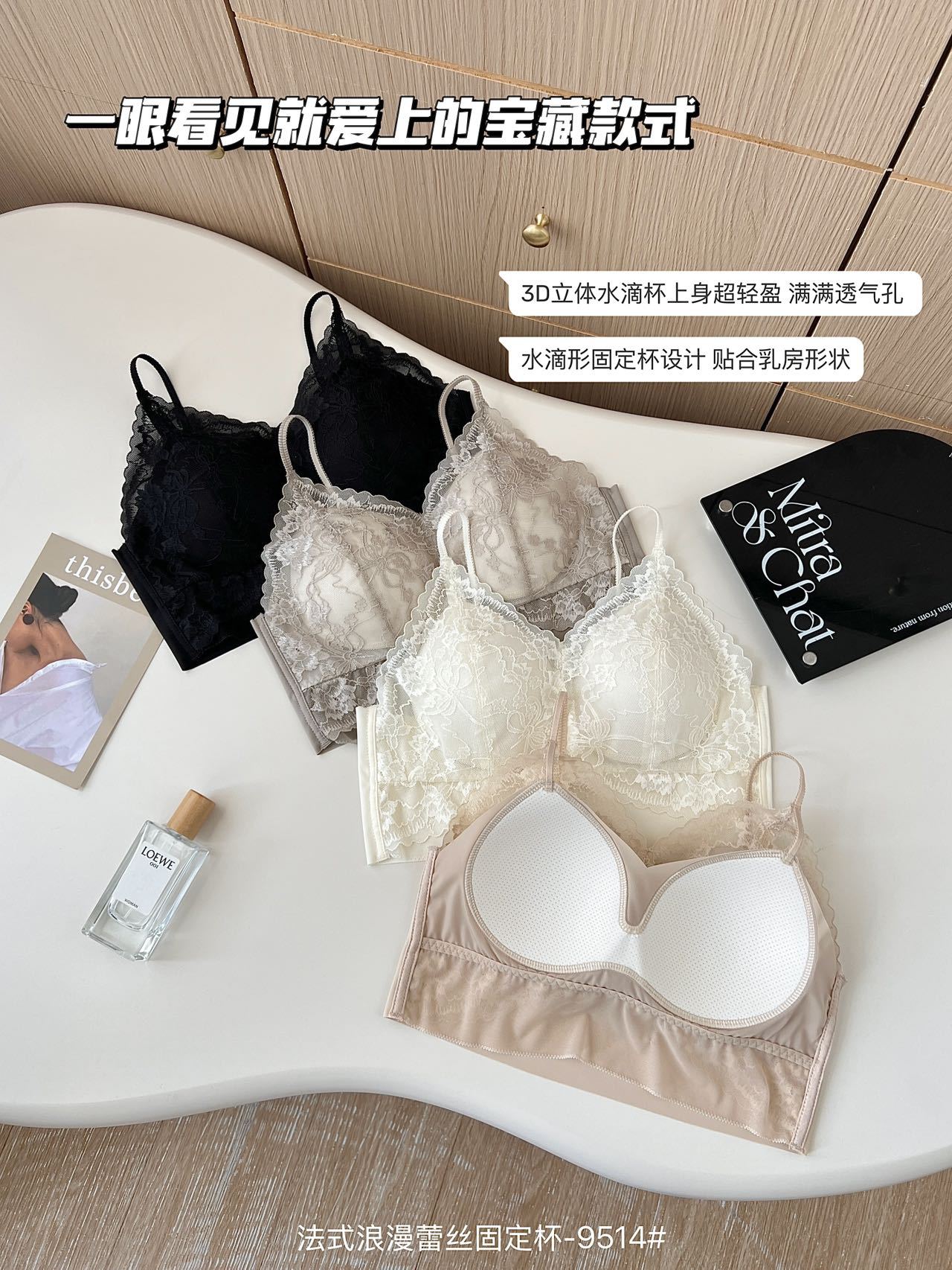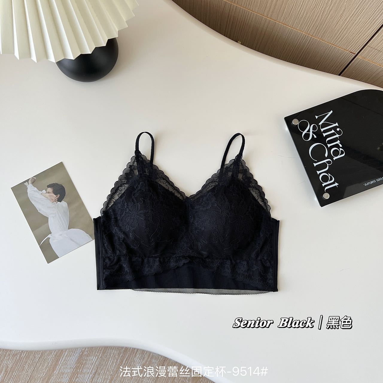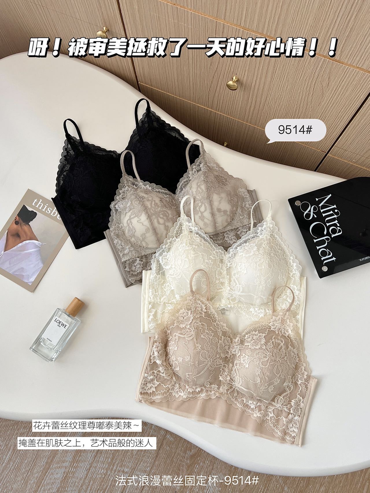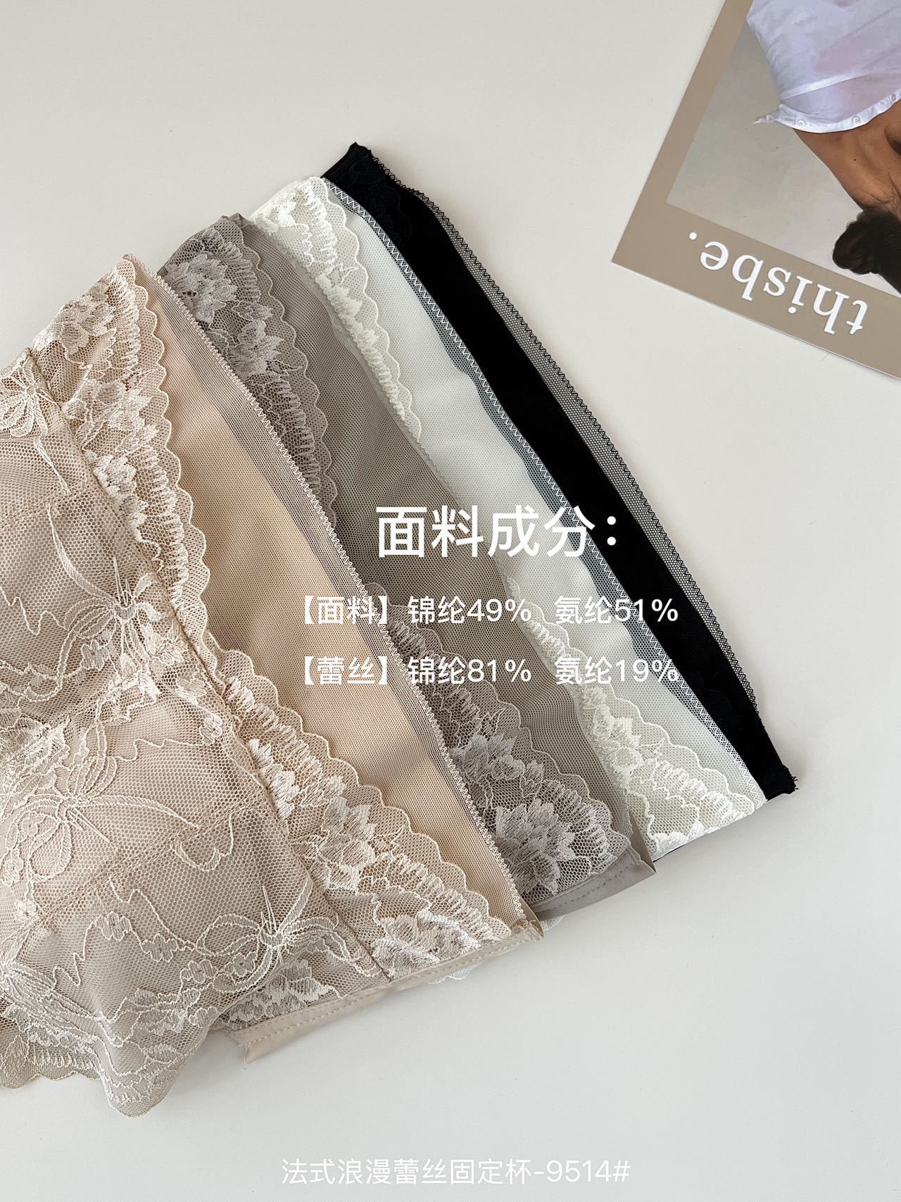 Pure Desire - Elegante lencería de encaje floral, espalda hermosa, tirantes finos, ajustables, cómodas, fruncidas, ligeras y de lujo, 9514