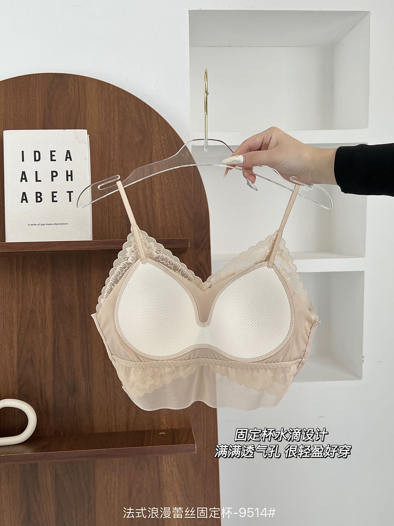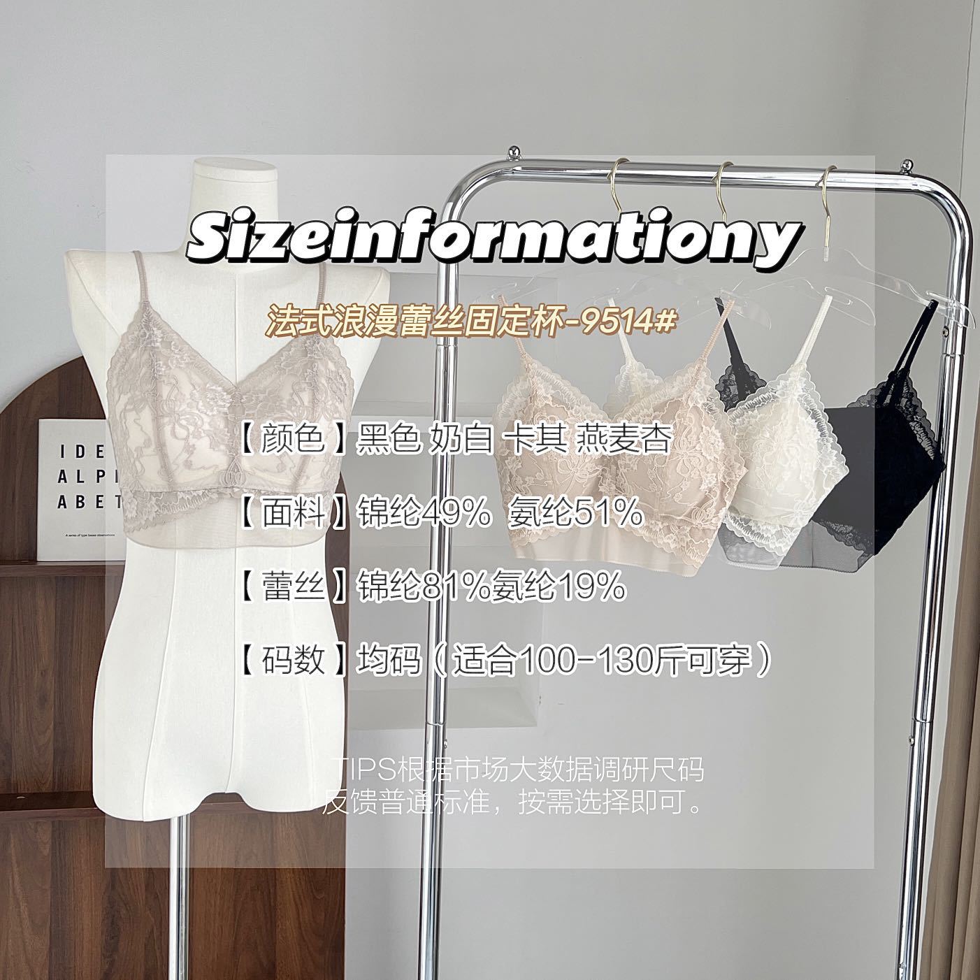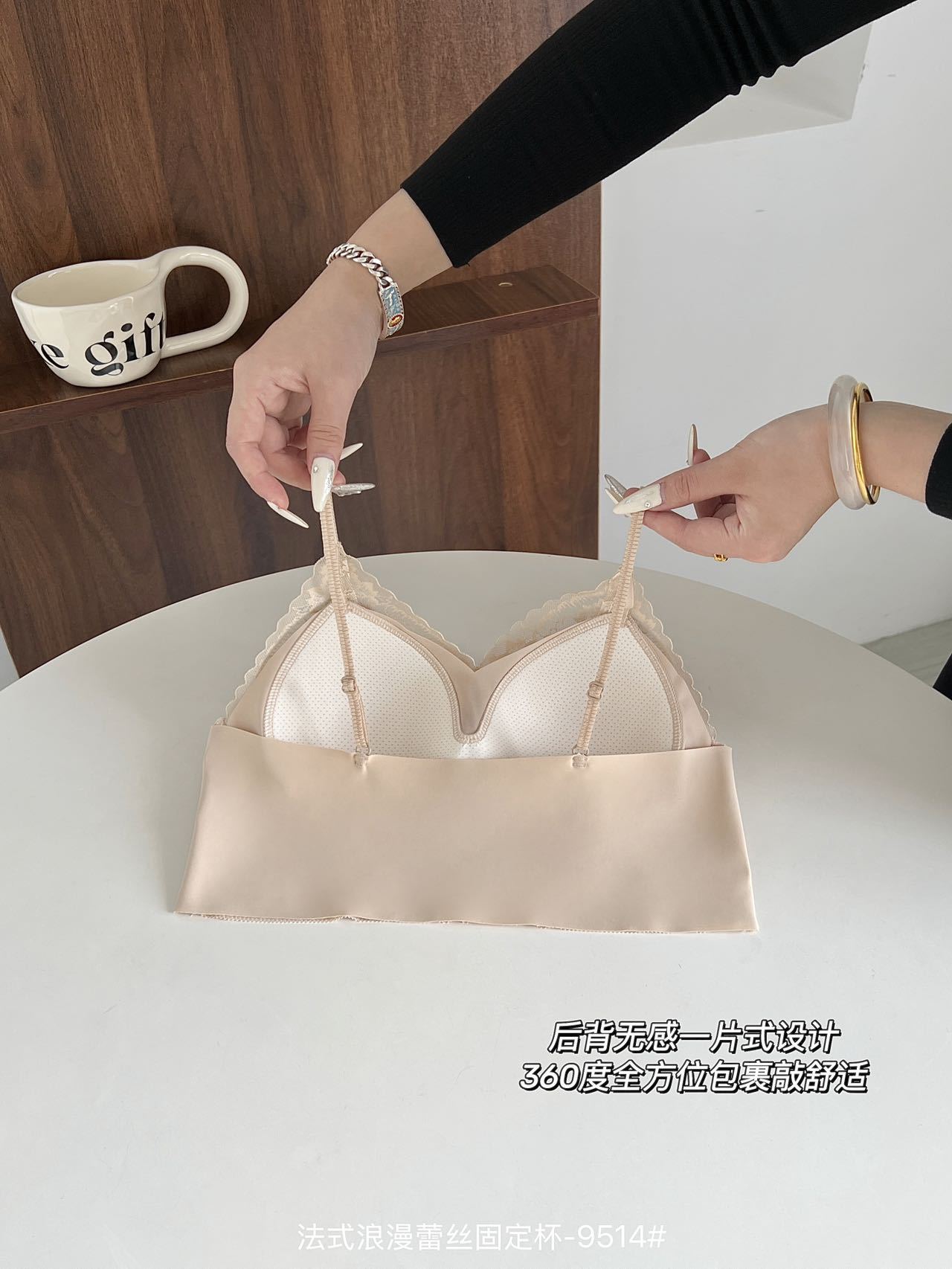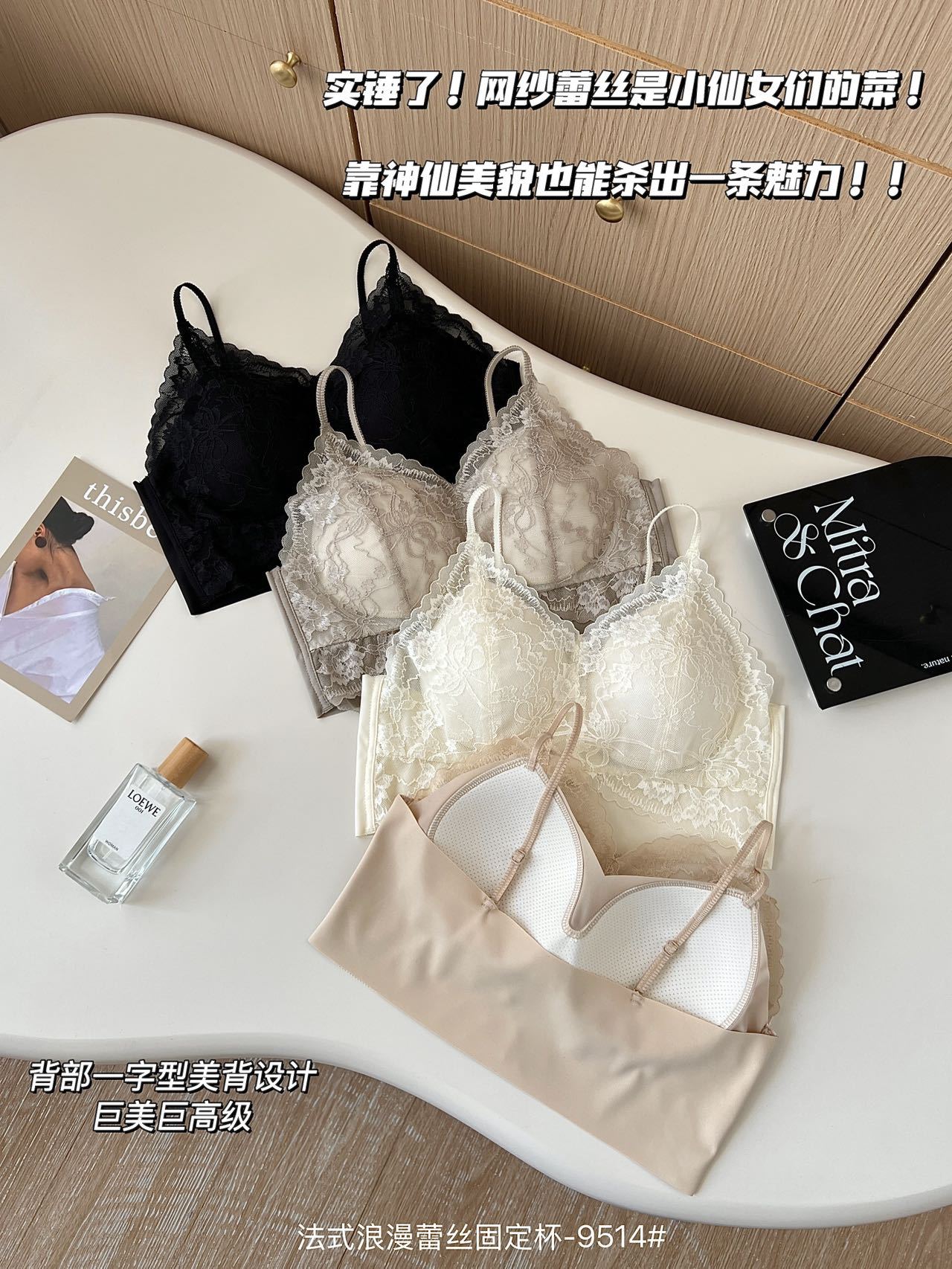 Pure Desire - Elegante lencería de encaje floral, espalda hermosa, tirantes finos, ajustables, cómodas, fruncidas, ligeras y de lujo, 9514