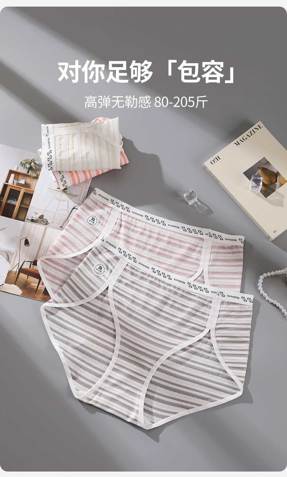 Ropa interior de rayas estilo japonés talla grande para mujer cintura alta clase 100 kg algodón puro antibacteriano entrepierna extendida estilo deportivo shorts para niña