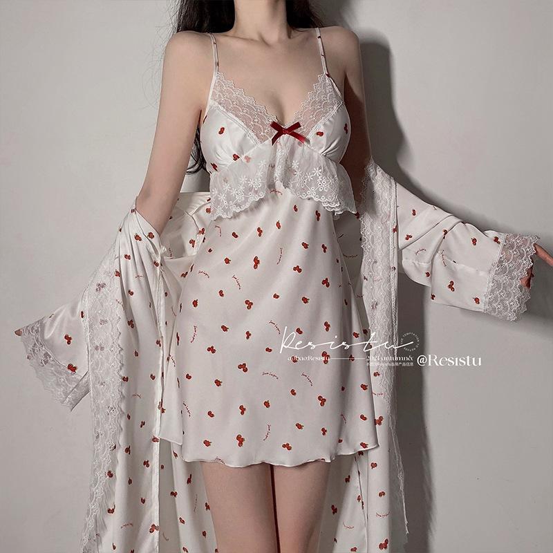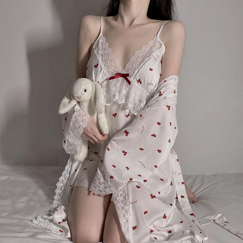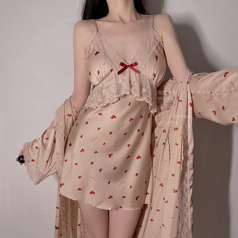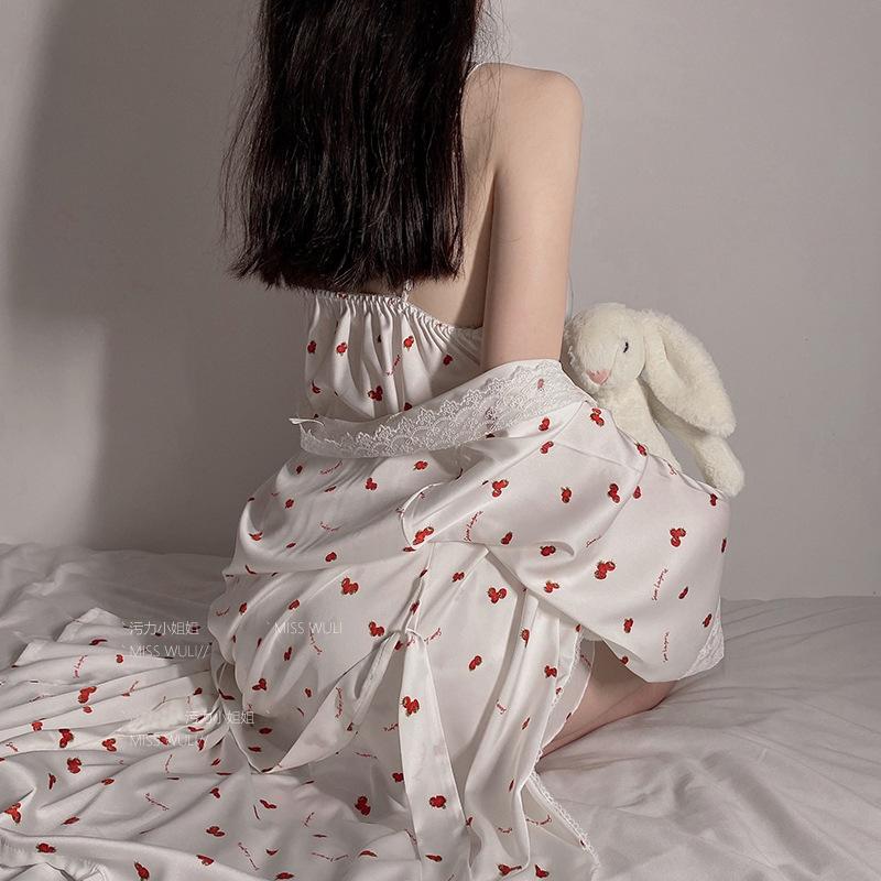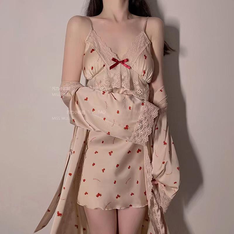 Pijama sexy dulce para mujer, verano 2024, nuevo camisón de dos piezas con tirantes de seda helada y almohadilla para el pecho, ropa de casa
