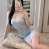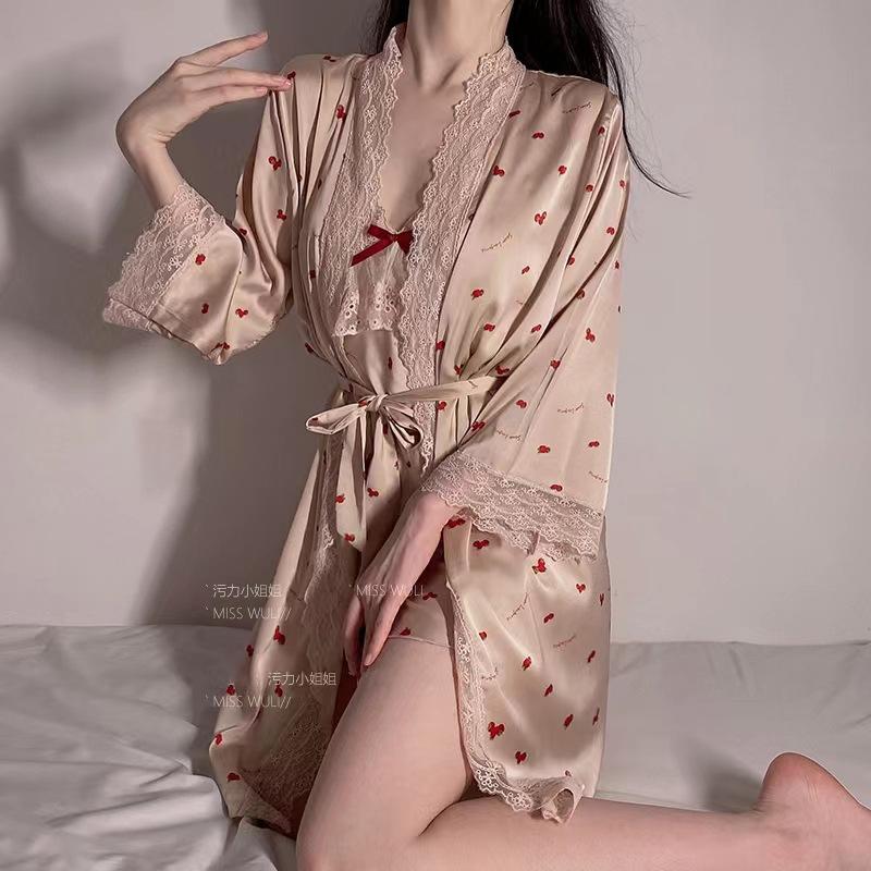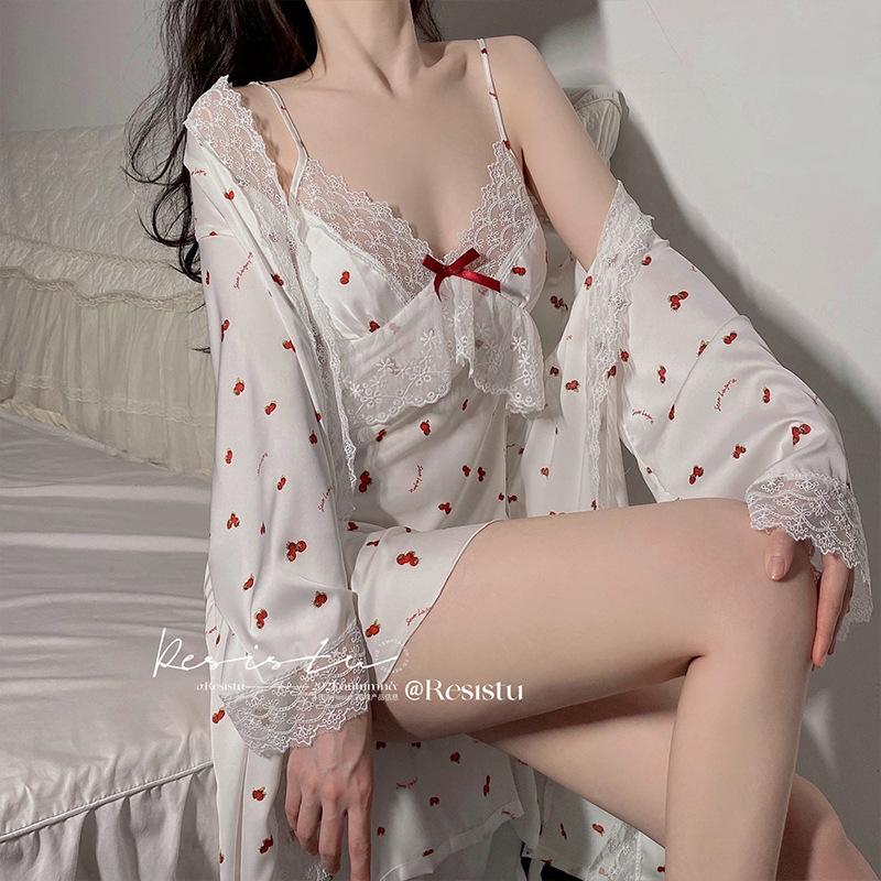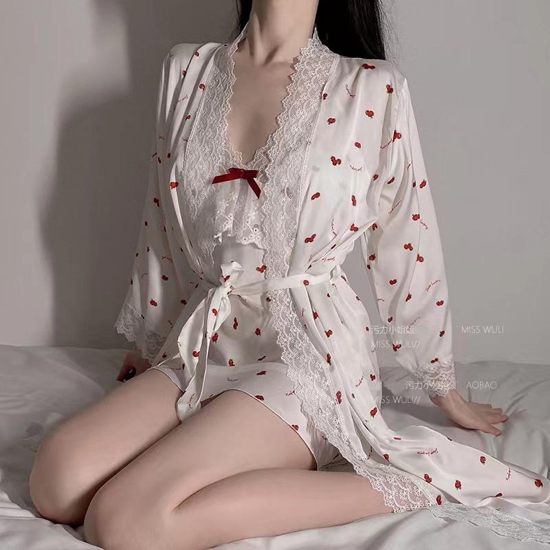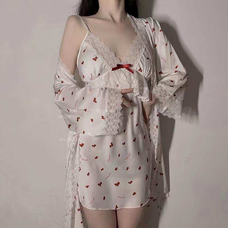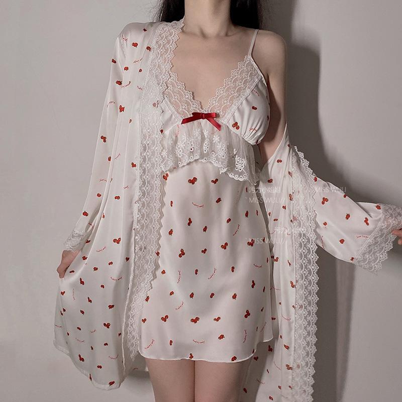 Pijama sexy dulce para mujer, verano 2024, nuevo camisón de dos piezas con tirantes de seda helada y almohadilla para el pecho, ropa de casa
