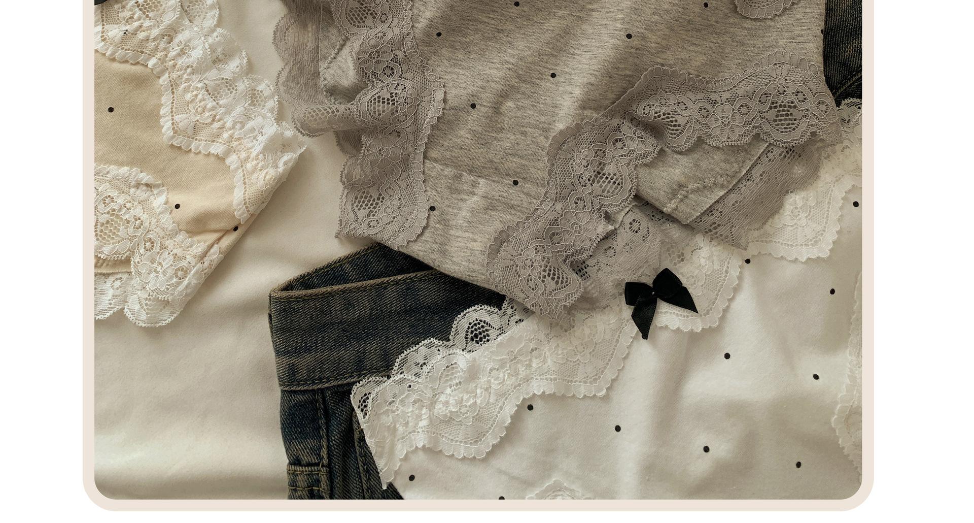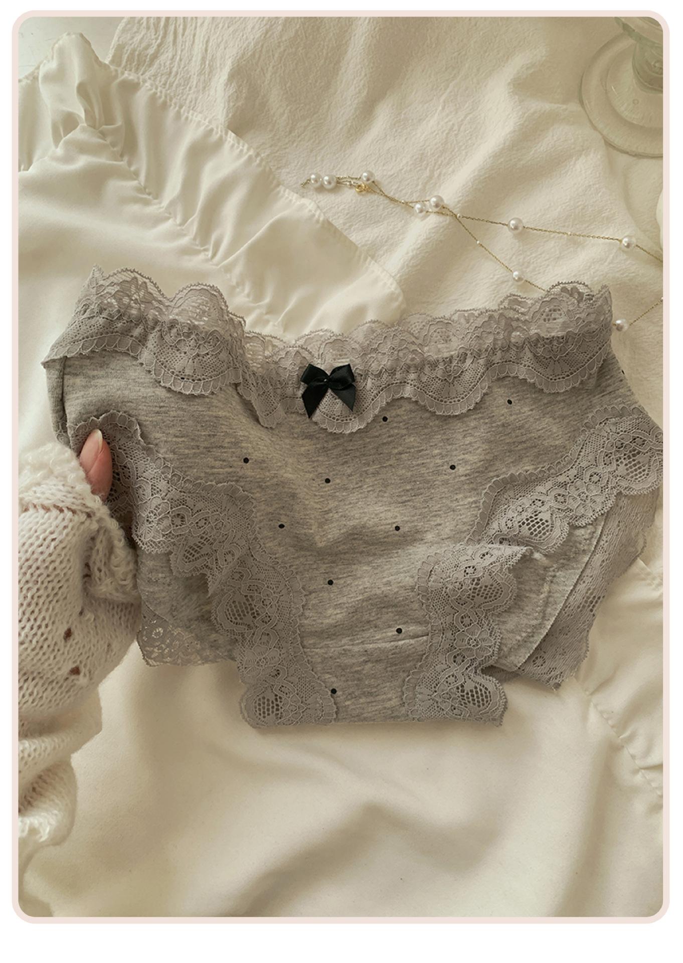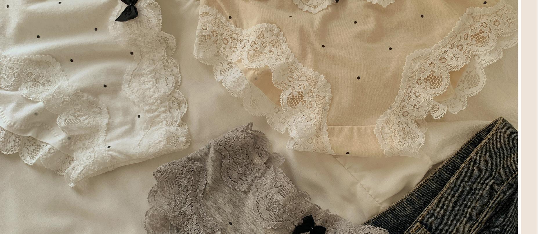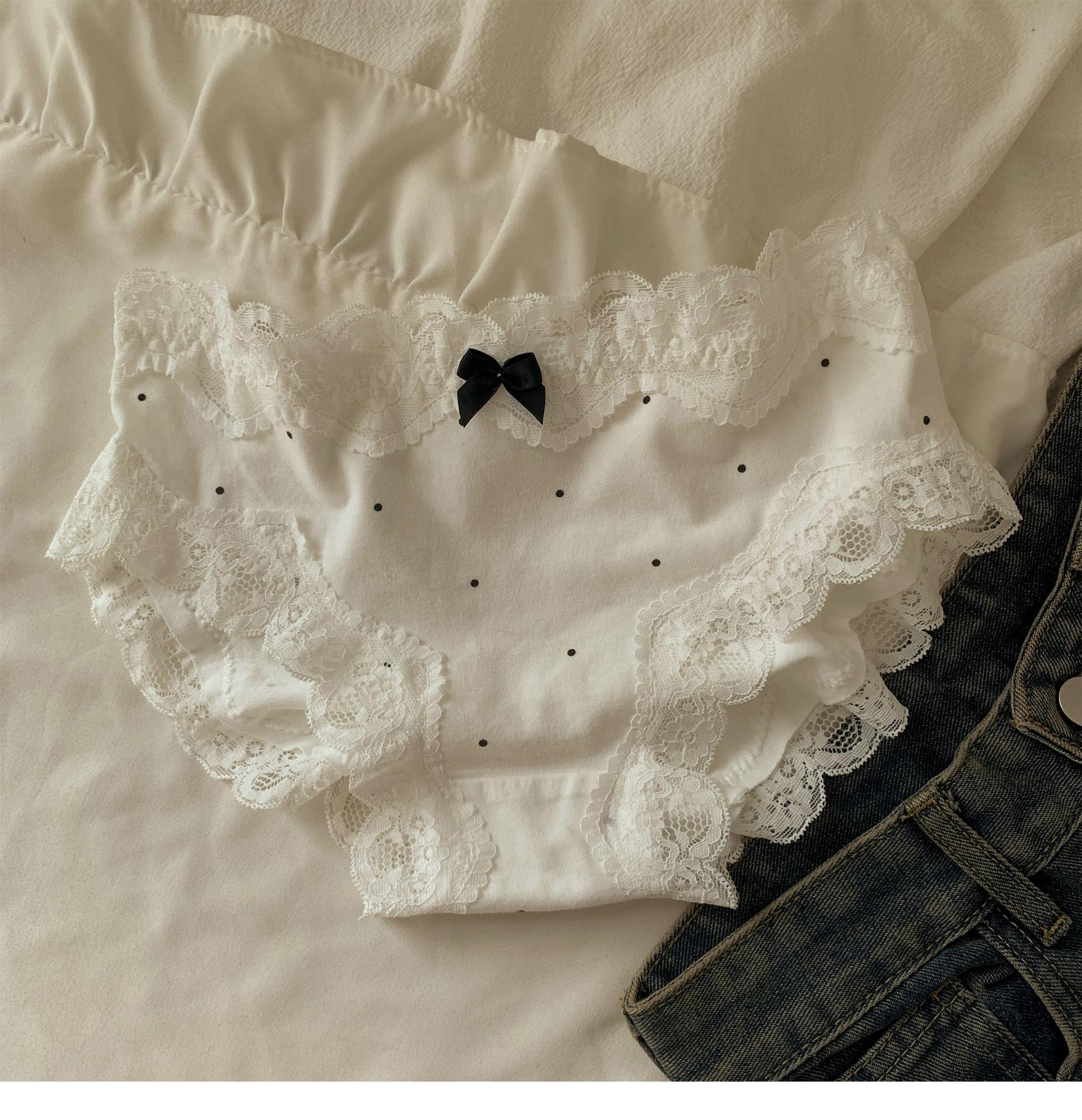 Ropa interior de algodón puro estilo retro francés con diseño de lunares y ondas color crema para otoño/invierno, bragas de algodón puro con borde de encaje y cintura baja para mujer.