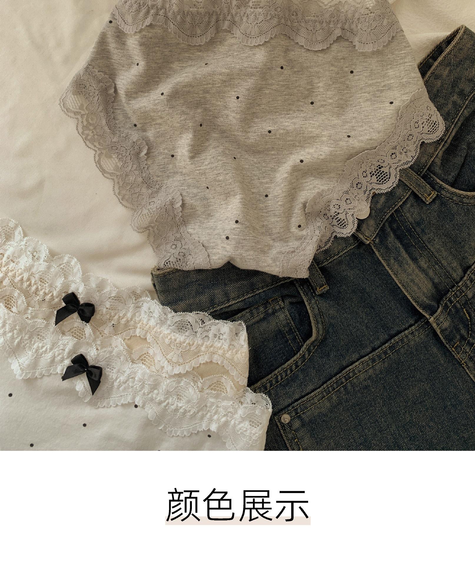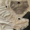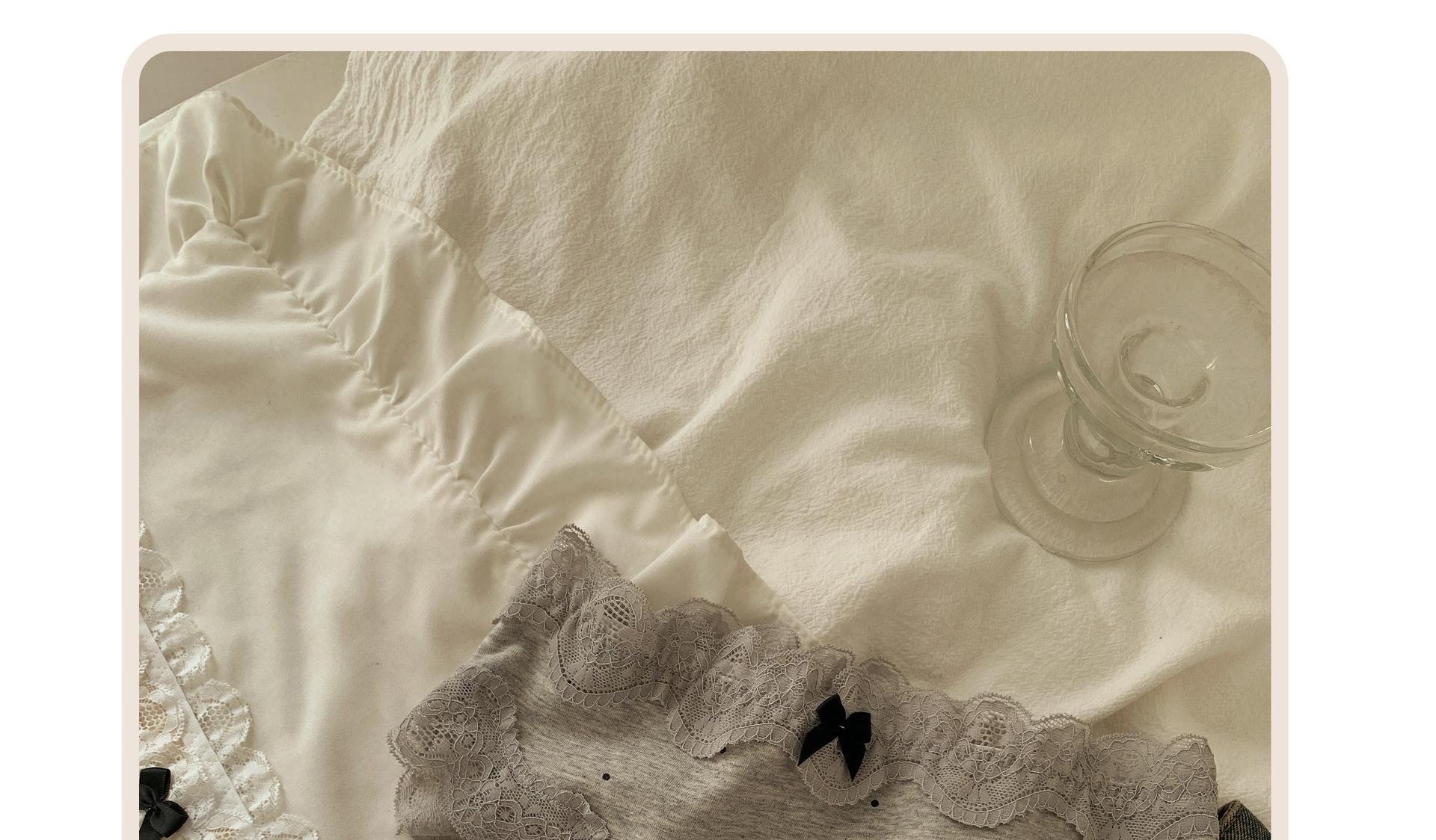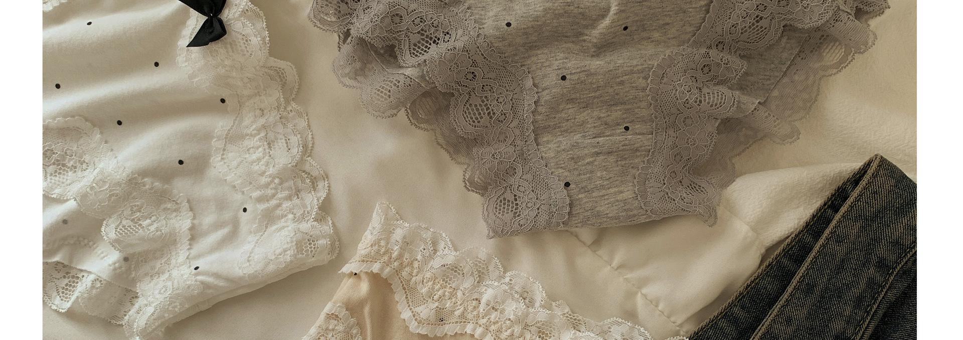 Ropa interior de algodón puro estilo retro francés con diseño de lunares y ondas color crema para otoño/invierno, bragas de algodón puro con borde de encaje y cintura baja para mujer.