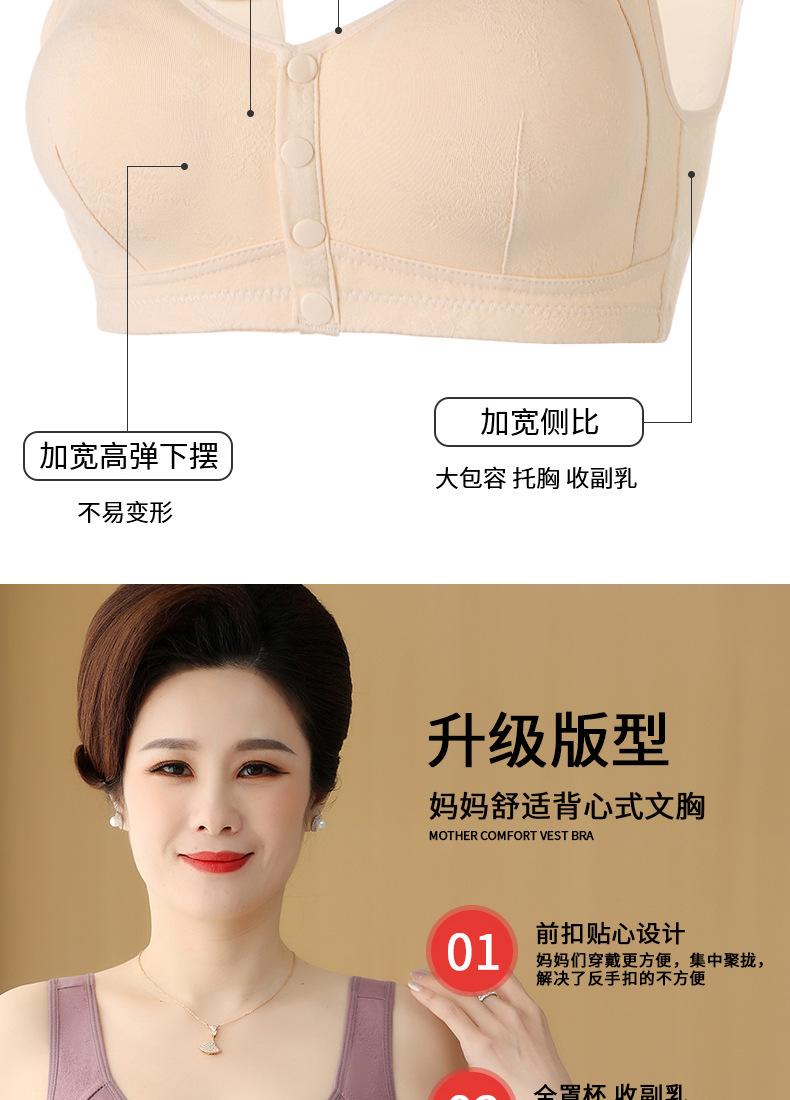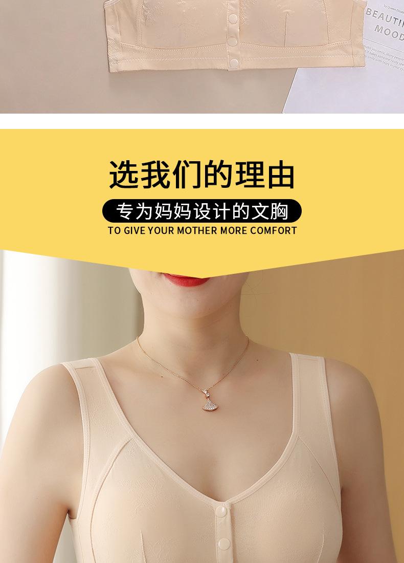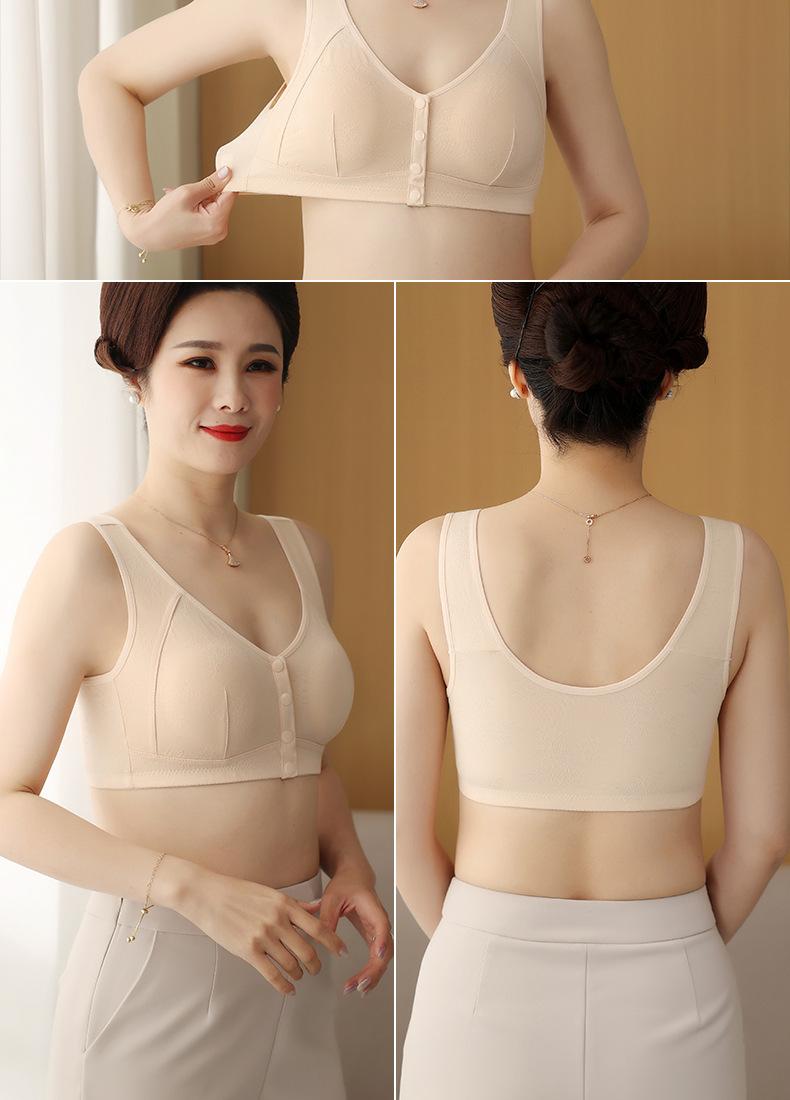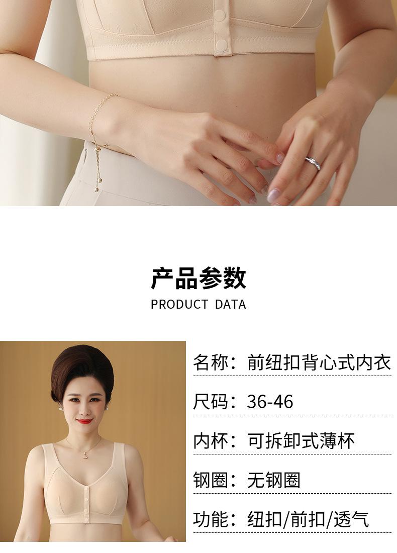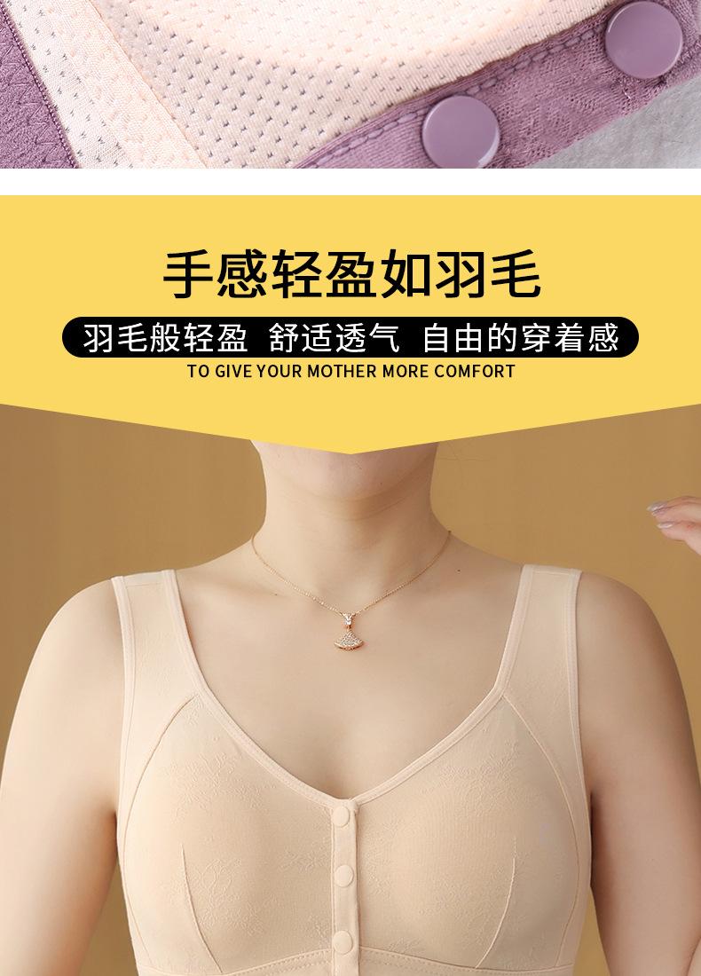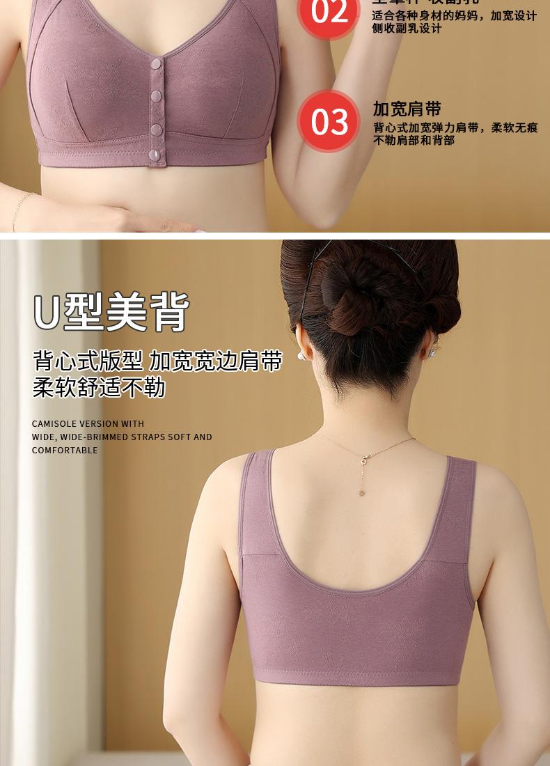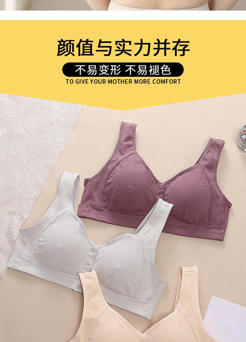 Sujetador chaleco para madre de mediana edad y anciana, hebilla de apertura frontal, sin aro de acero, ropa interior de algodón para lactancia, sujetador jacquard transpirable para mujer