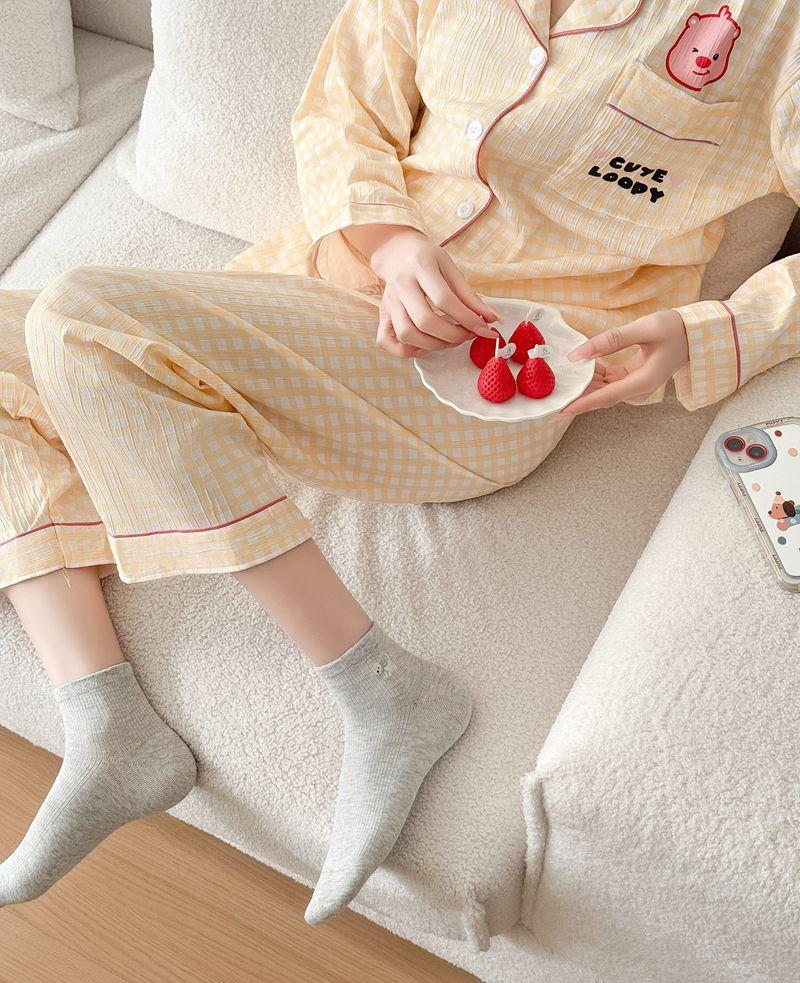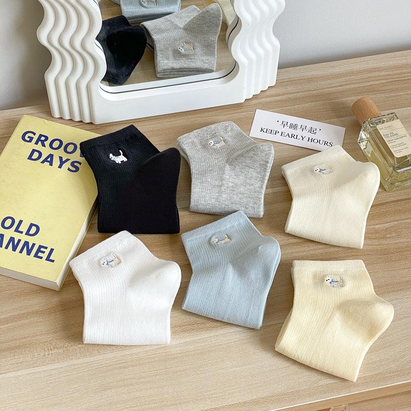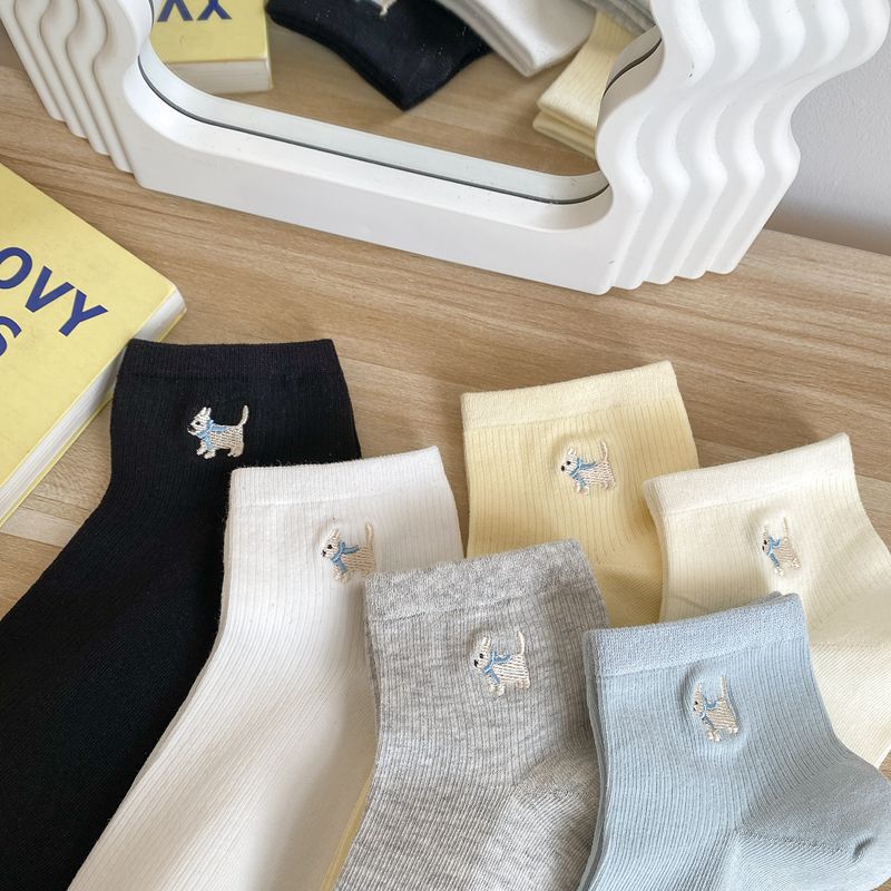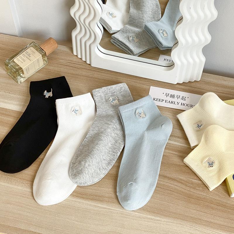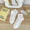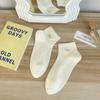 Calcetines cortos transpirables de algodón bordado, estilo coreano, de color liso, para primavera y verano de 2025, que absorben el sudor, para mujer, estilo universitario.