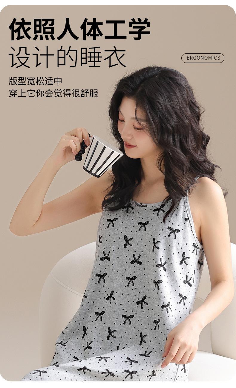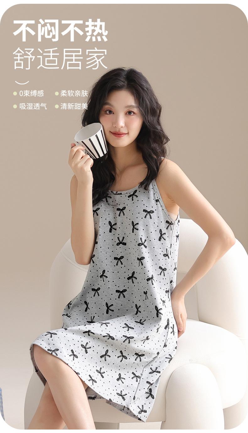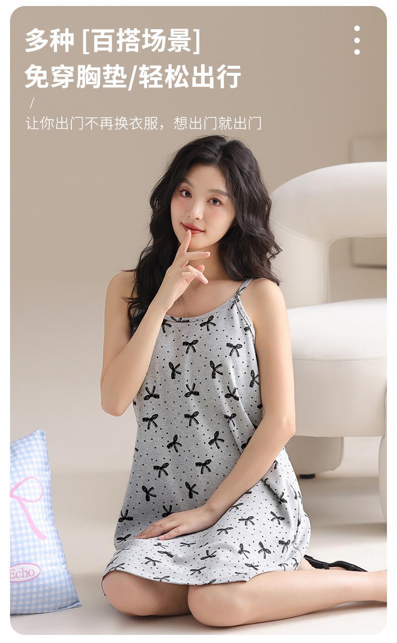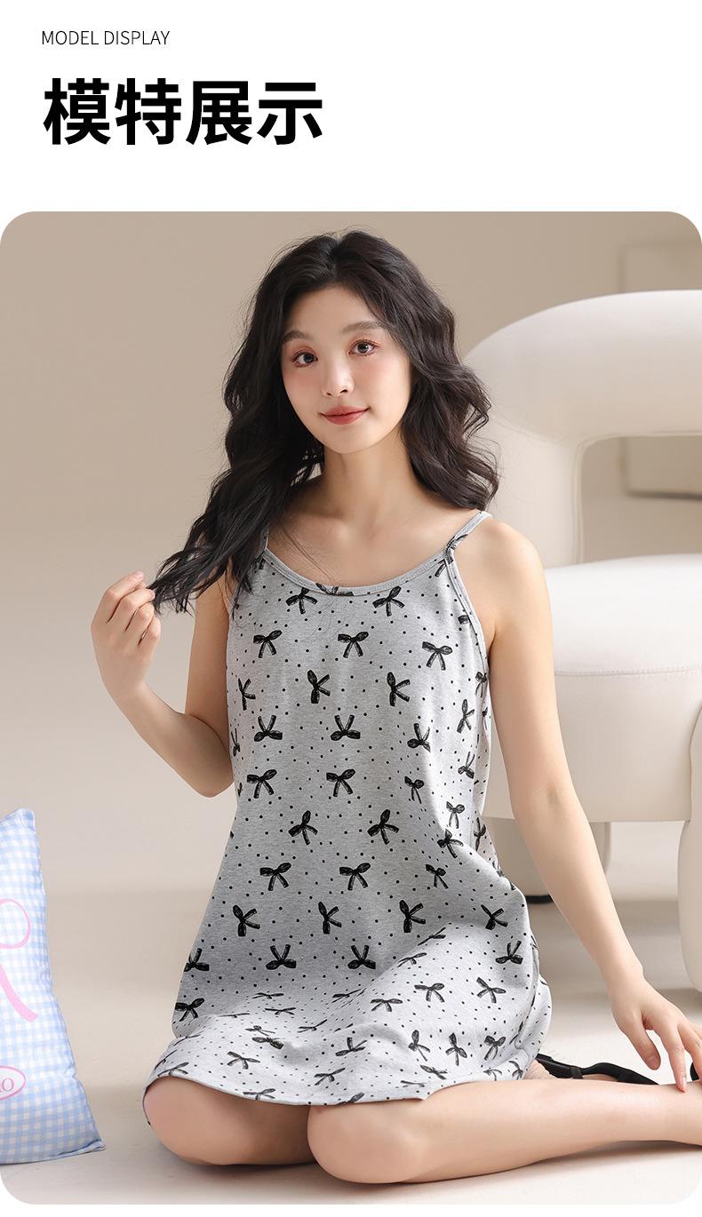 Pijama de algodón puro para mujer con almohadilla para el pecho, vestido de verano con tirantes, ropa exterior dulce, camisón fino para mujer, bonito, al por mayor