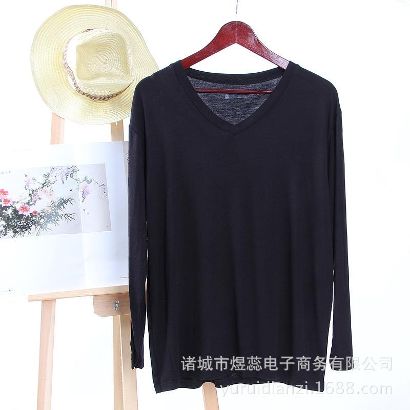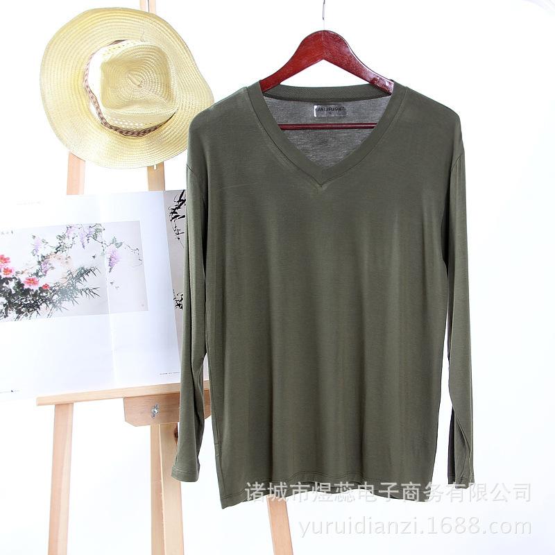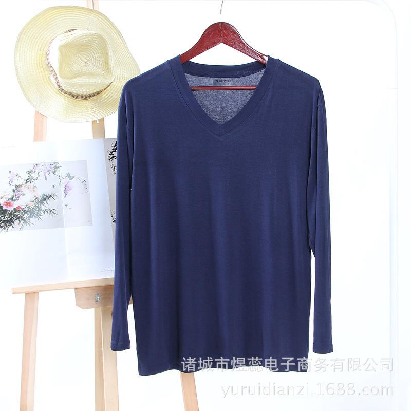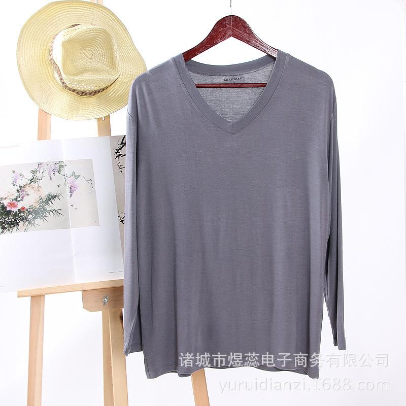 Camiseta de Manga Larga con Cuello en V de Modal para Hombre, Corte Holgado, Ropa de Dormir Deportiva Casual, Ropa para Estar en Casa, Venta al por Mayor de una Pieza, Cómoda y Versátil