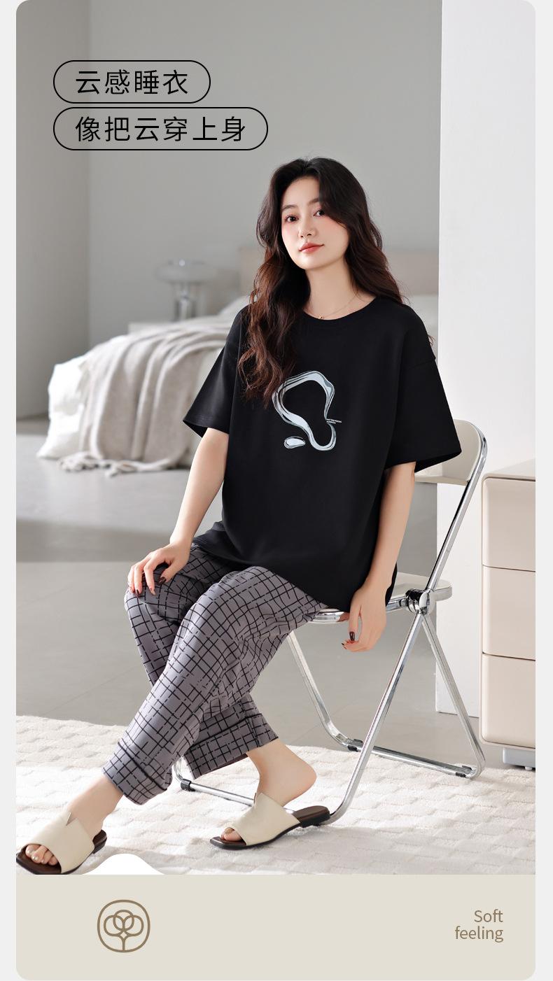 Pijamas de mujer Verano 2025 Nuevos Pantalones de manga corta de algodón puro Verano Estilo casual fino Ropa de casa Traje Ropa exterior