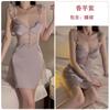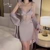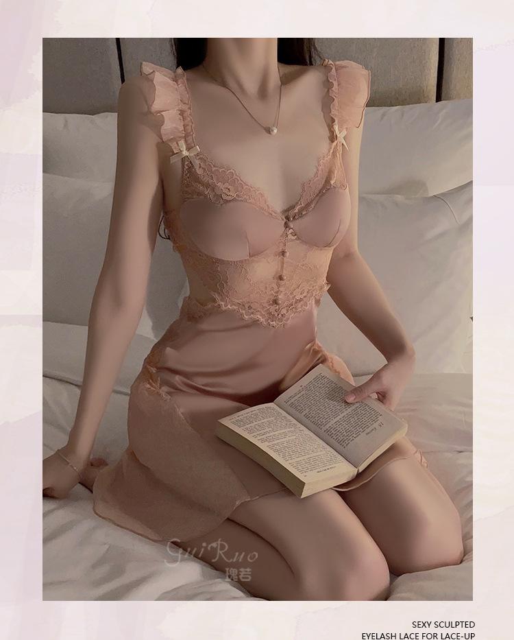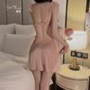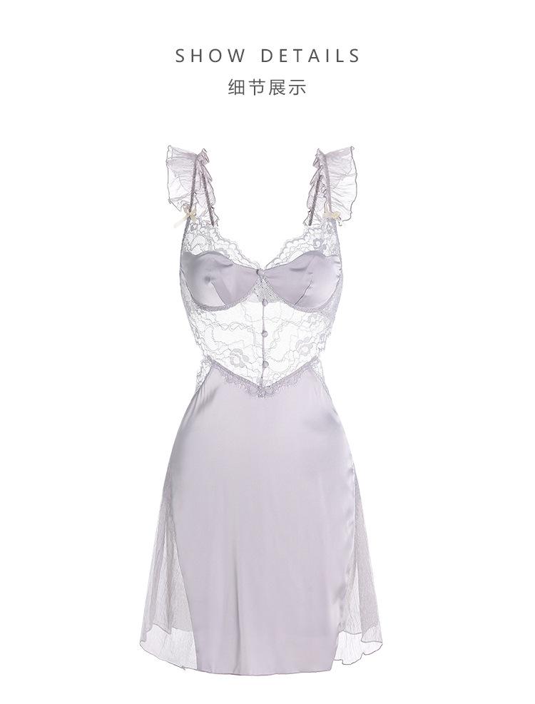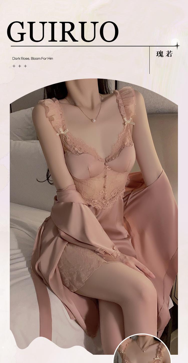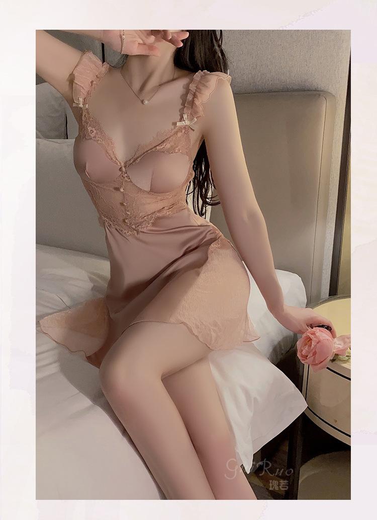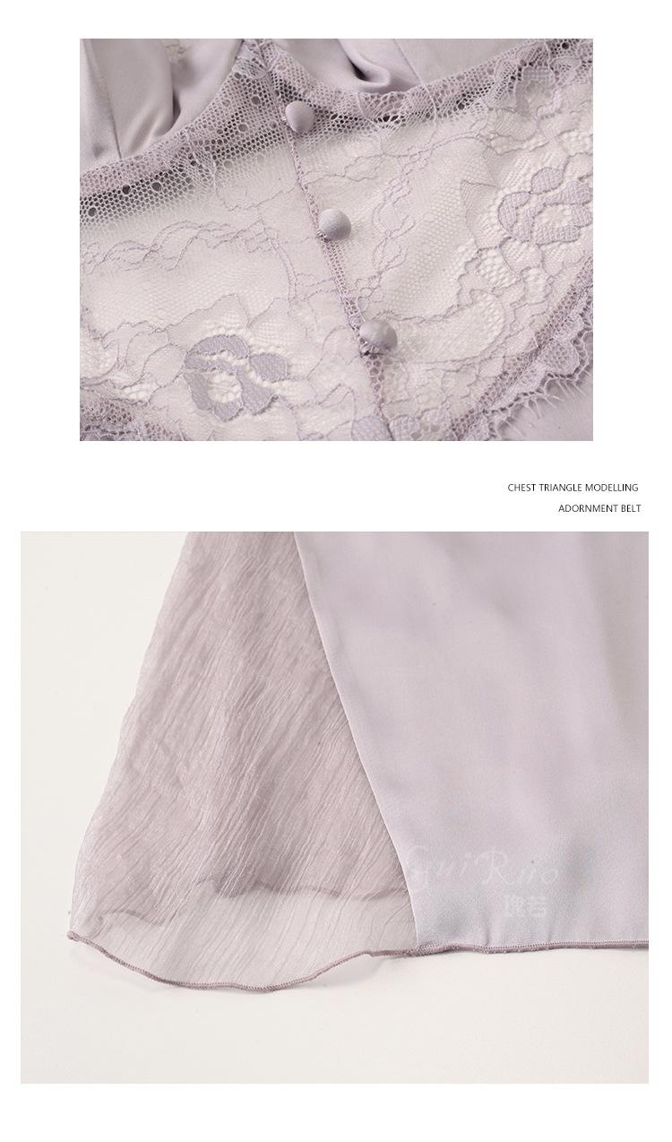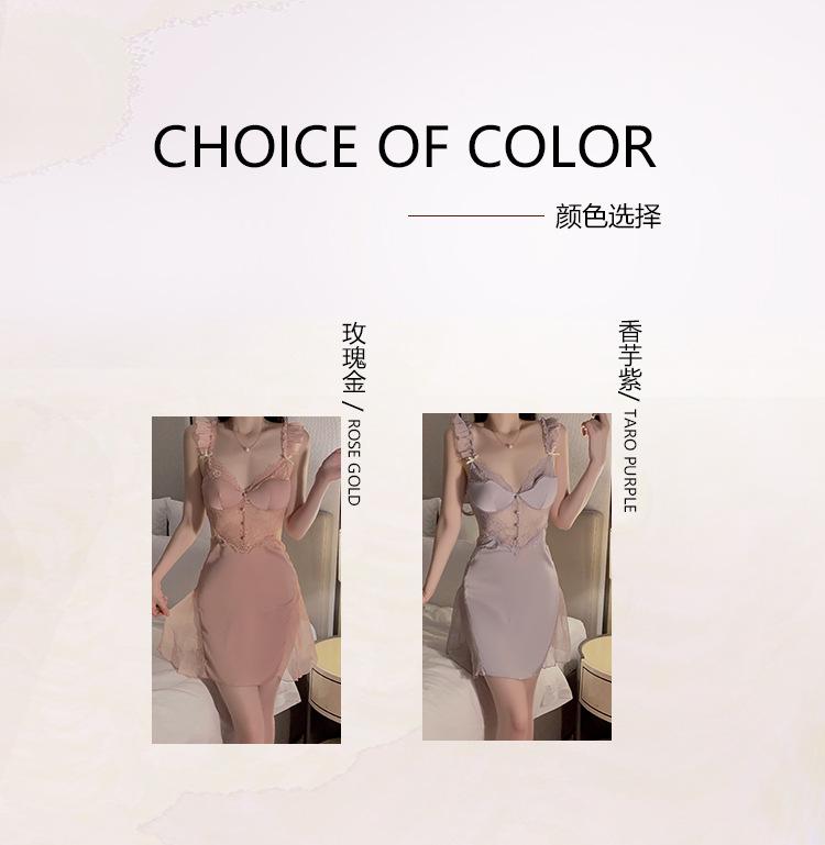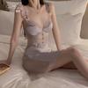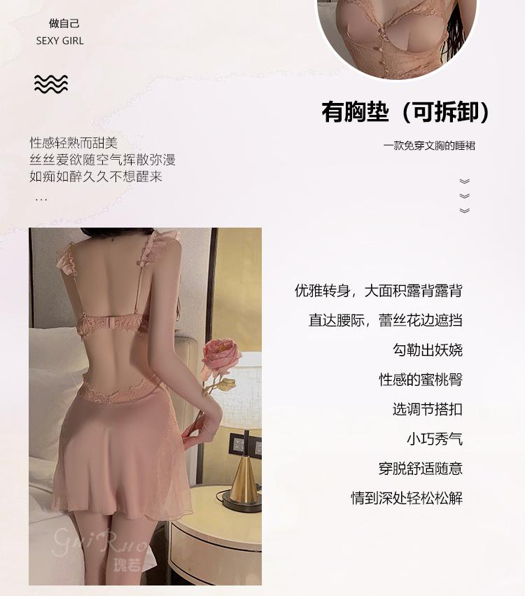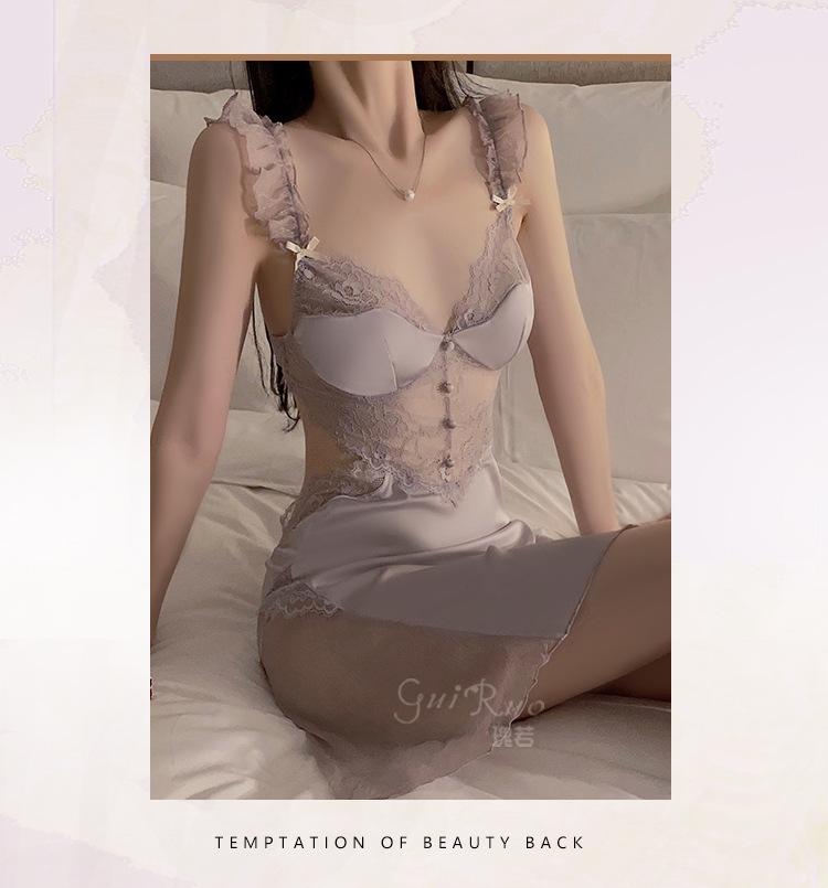 Guiruo sexy color sólido con almohadilla para el pecho satén malla costura dulce tentación sin espalda camisón ropa de casa traje 3306