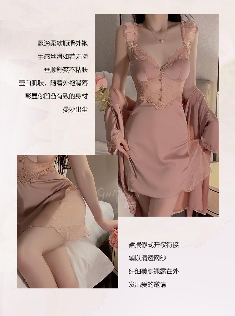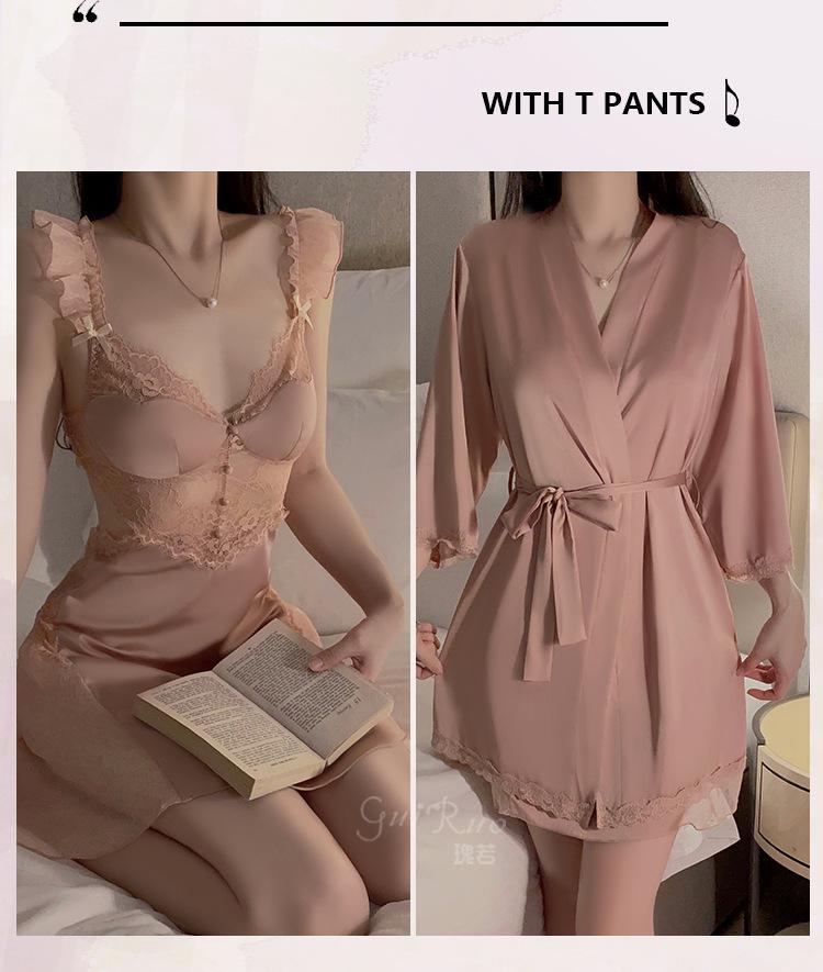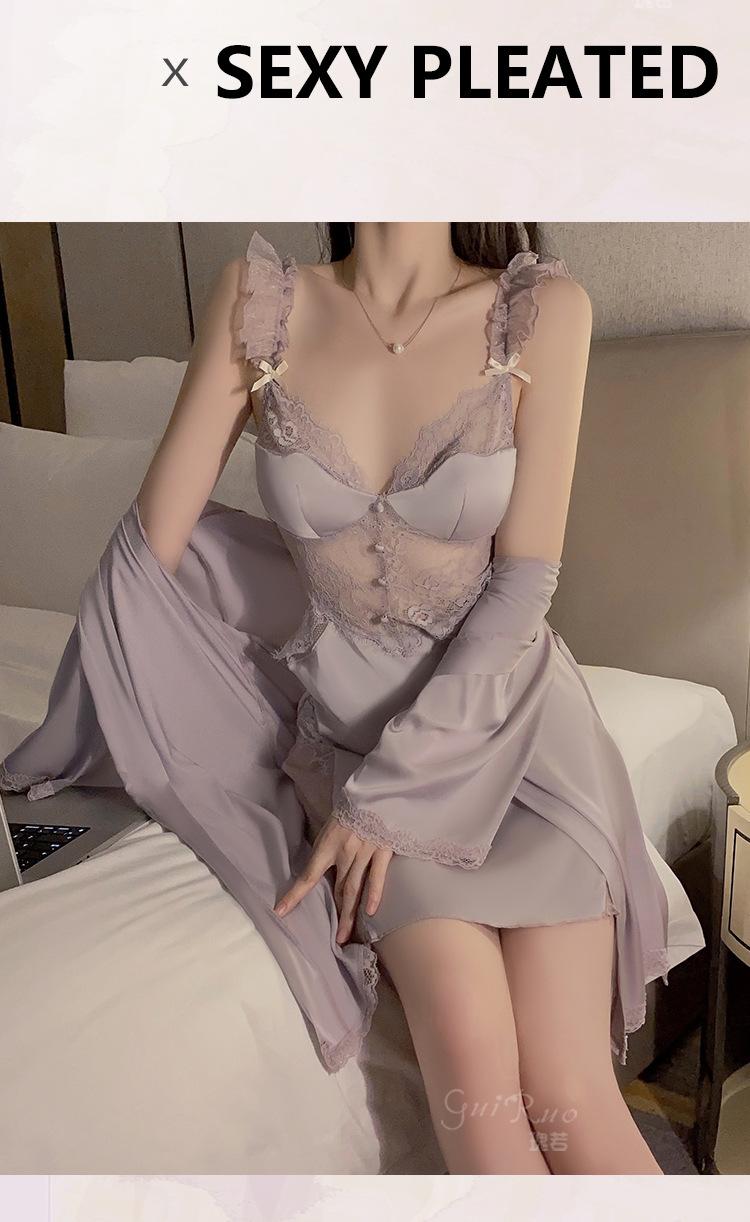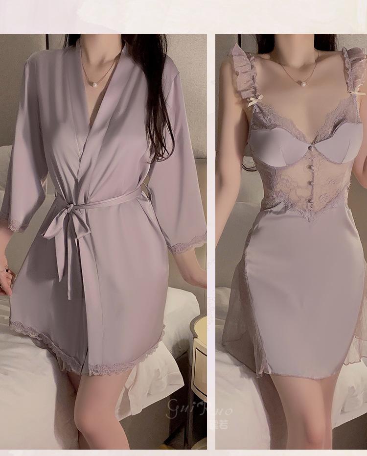 3306 taro purple (nightgown), 3957 taro purple (robe + belt), 3306 rose gold (nightgown), 3957 rose gold (robe + belt)