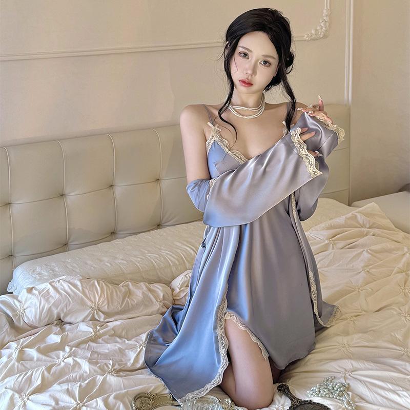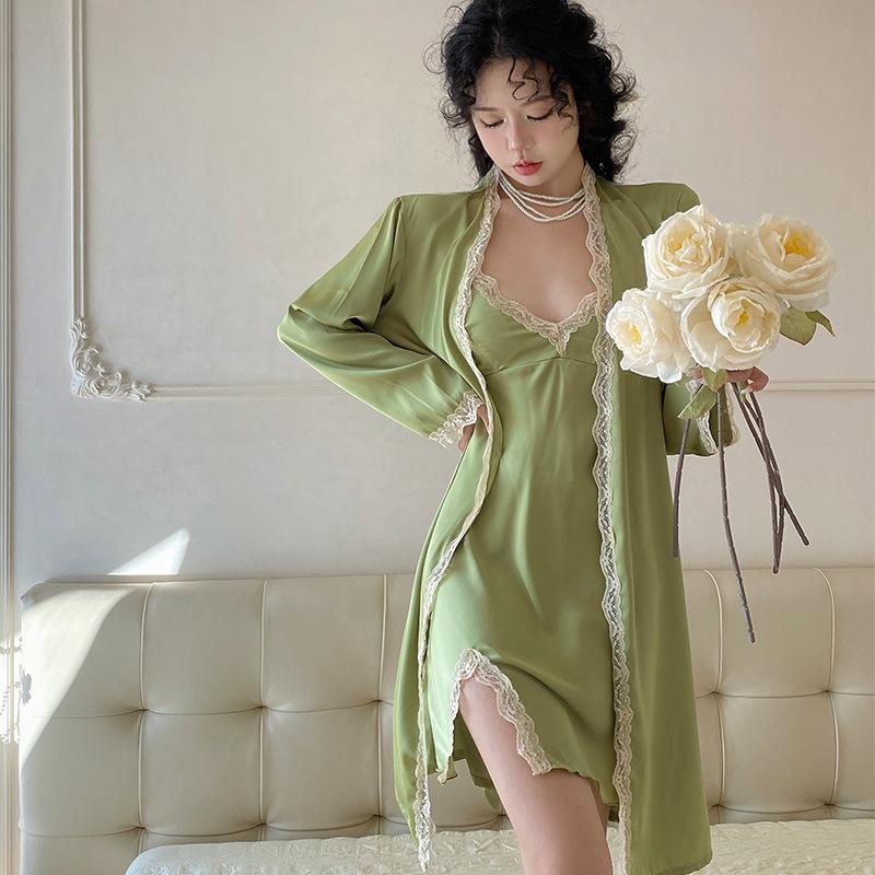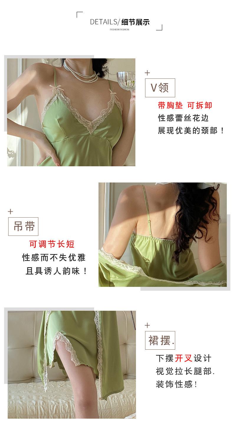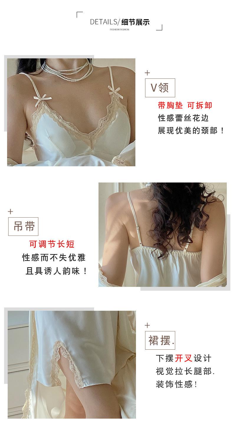 Pijama sexy camisón verano nuevo tirantes camisón dos piezas Seda de Hielo encaje avanzado almohadilla para el pecho primavera y otoño ropa para el hogar