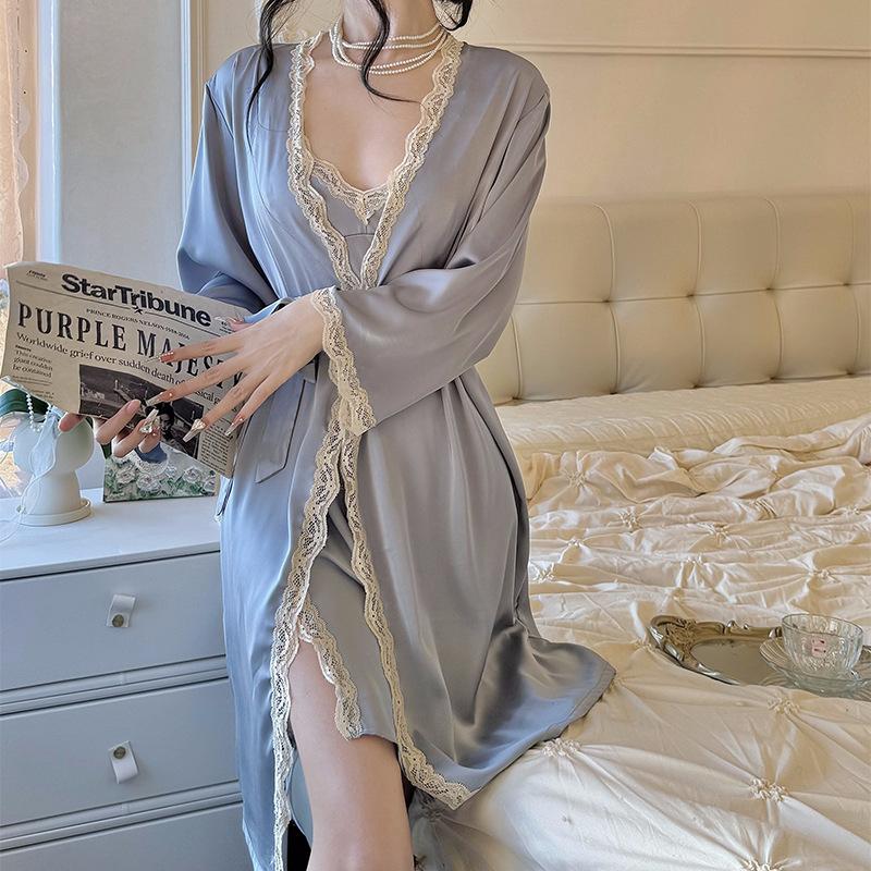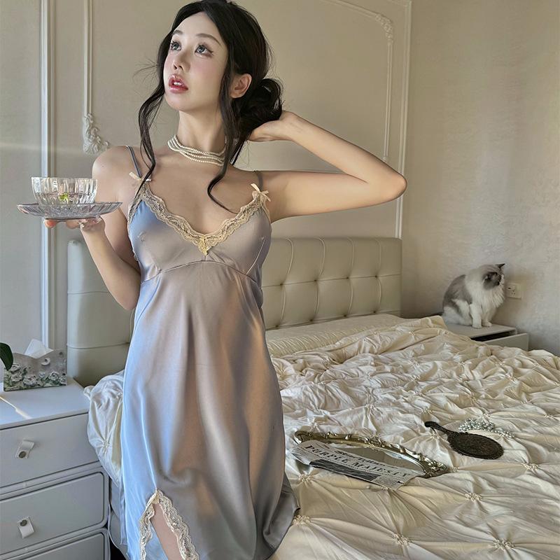 Compra Pijama sexy camisón verano nuevo tirantes camisón dos piezas Seda de Hielo encaje avanzado almohadilla para el pecho primavera y otoño ropa para el hogar al por mayor en Joom.pro