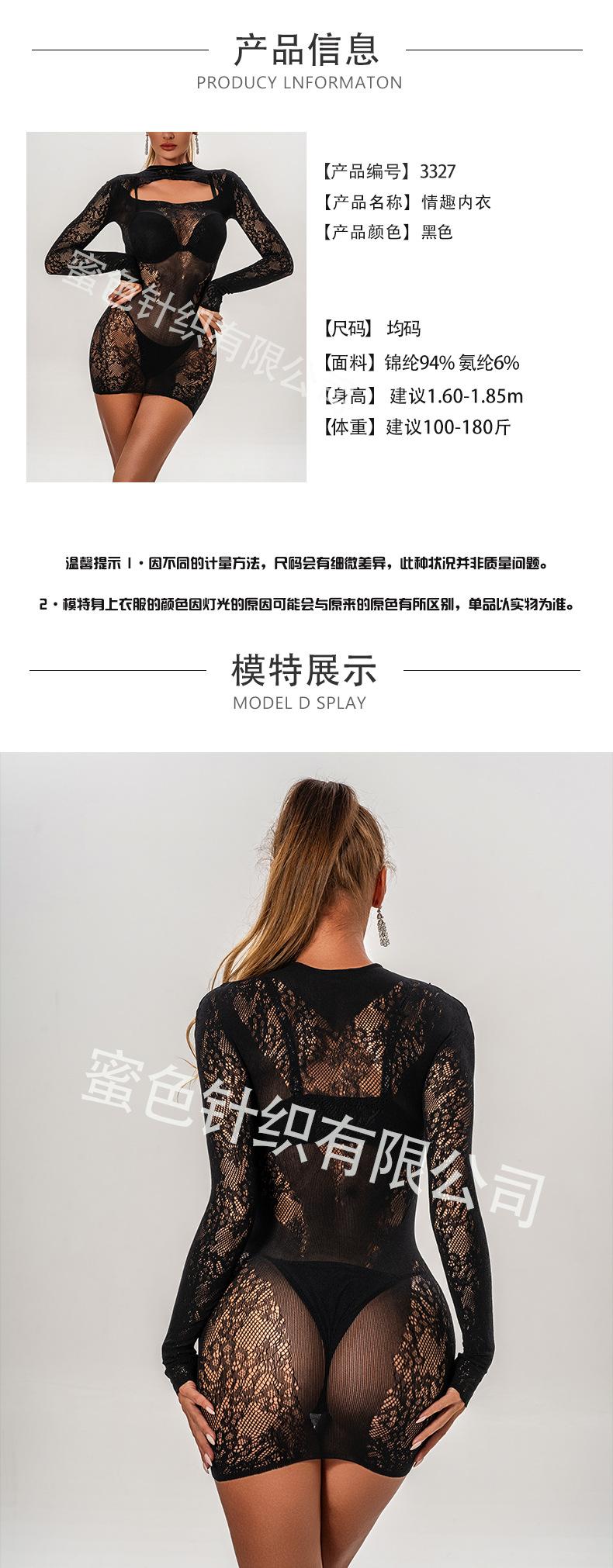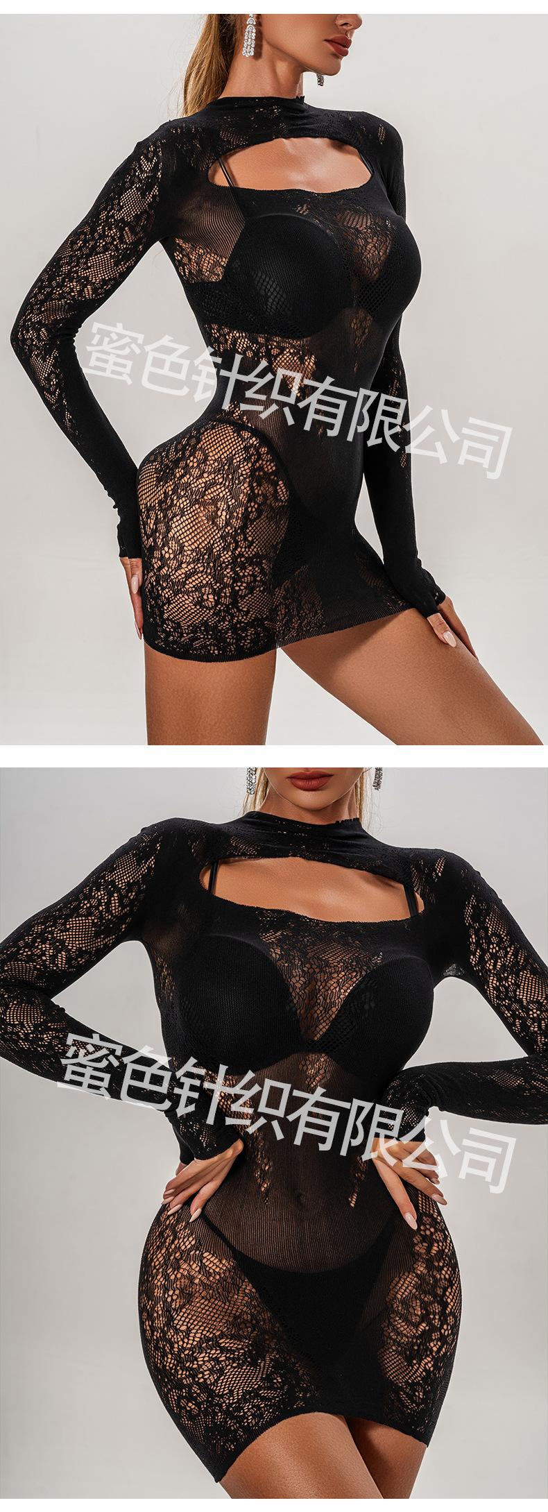 Compra Ropa interior sexy europea y americana para mujer, perspectiva de jacquard sexy, falda de malla con manga larga y cadera hueca negra al por mayor en Joom.pro