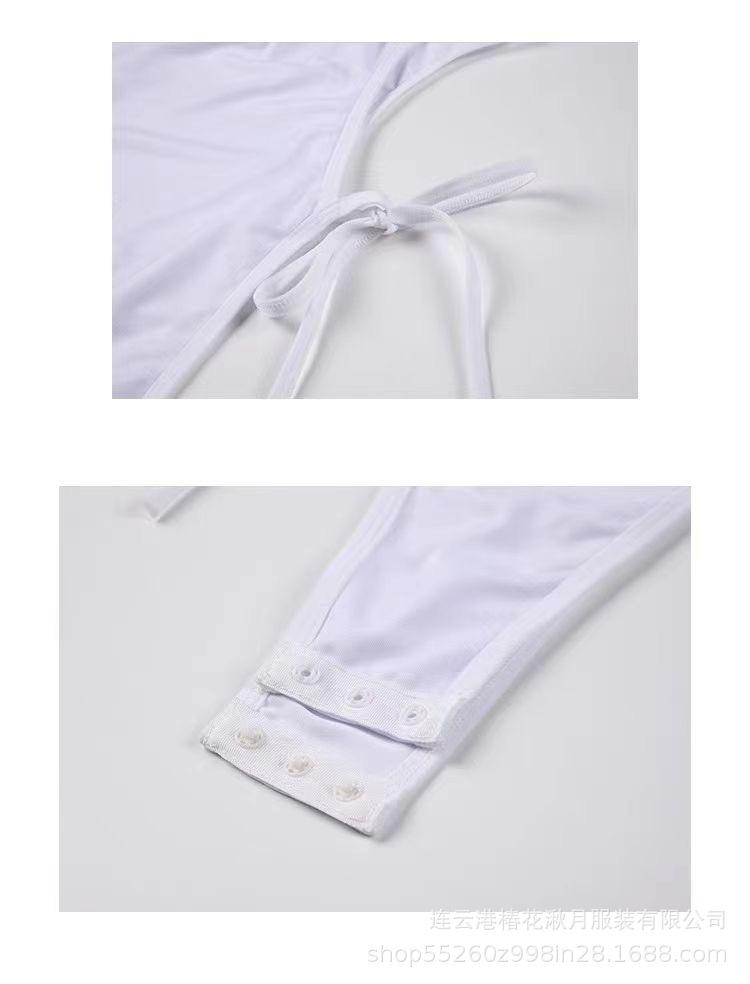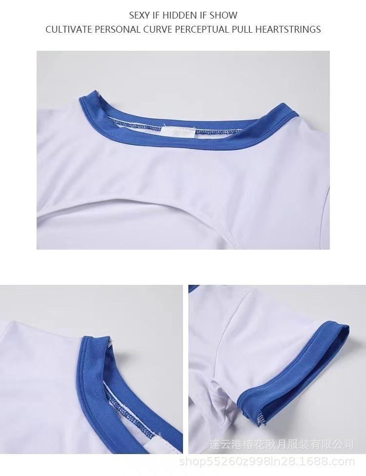Blue and white jumpsuit [excluding socks], Jumpsuit + white stockings, Jumpsuit + white fishnet stockings, Jum...