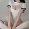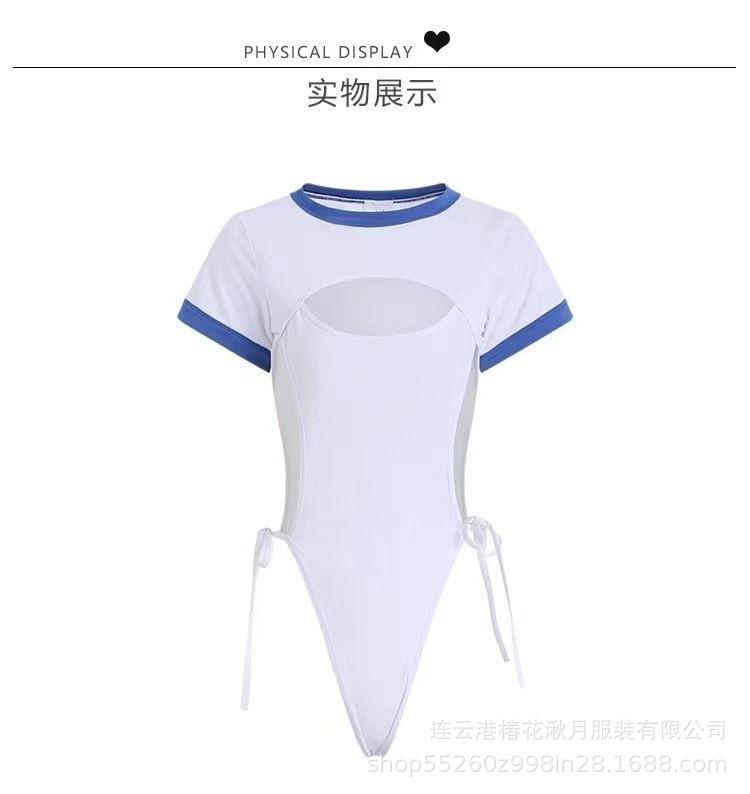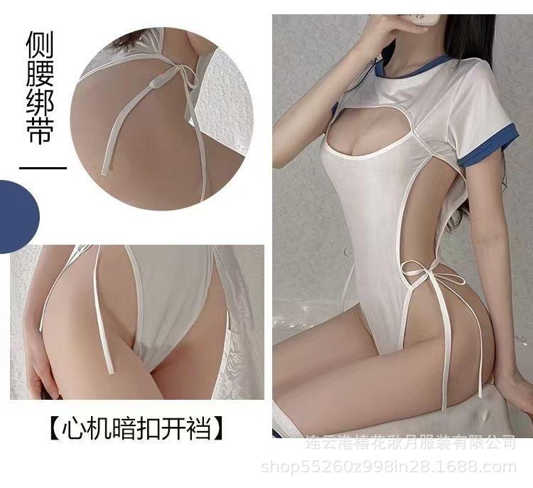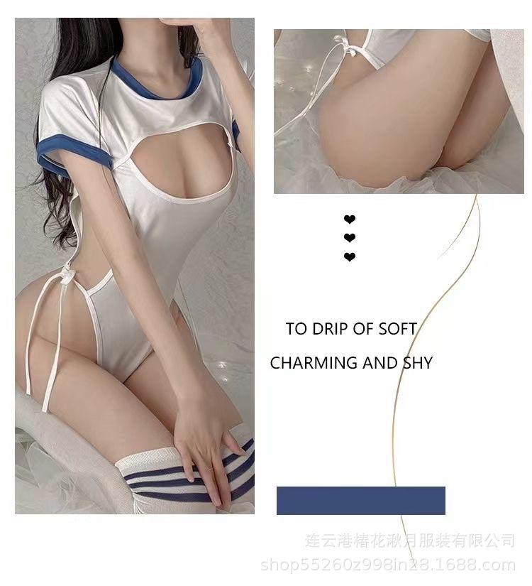 Dz Lencería Sexy Tipo Rosa Deseo Puro Pasión Entrepierna Abierta Hebilla Oculta No Quitar Uniforme Escolar Traje de Una Pieza