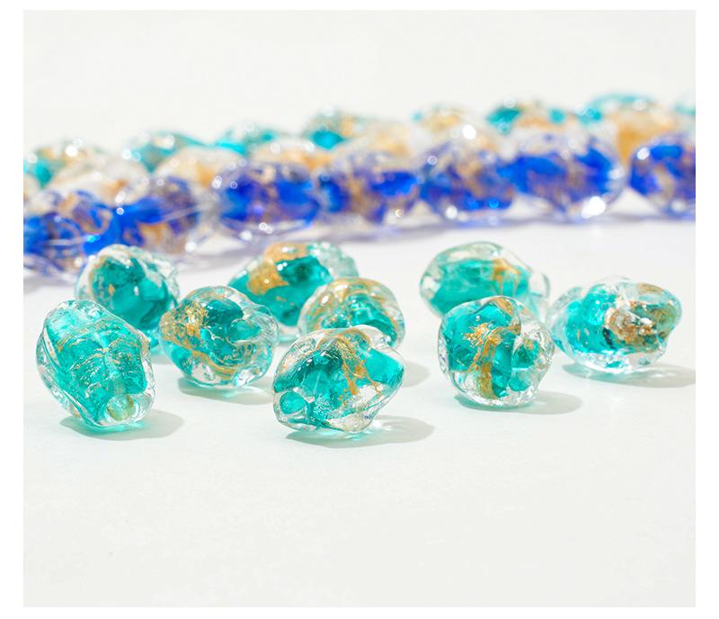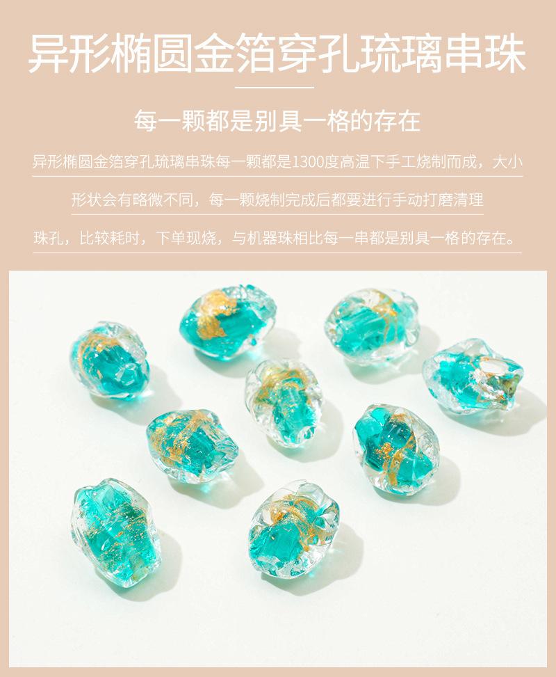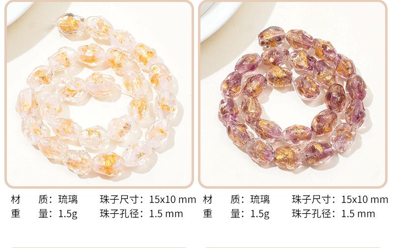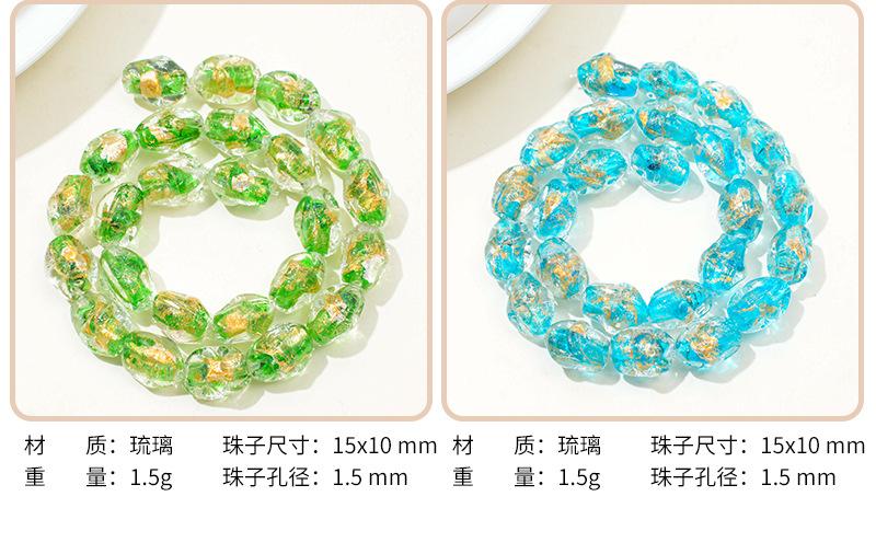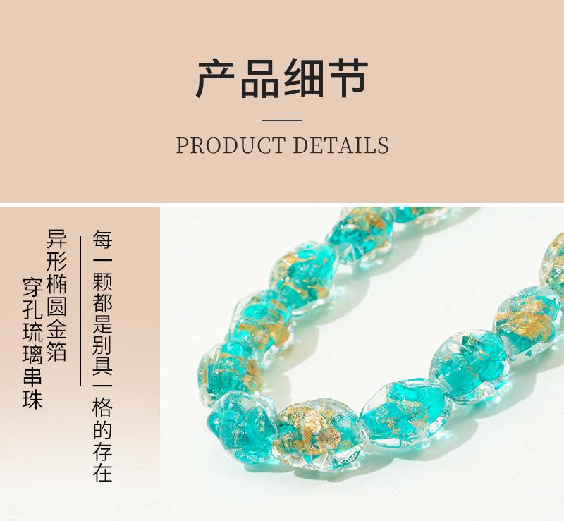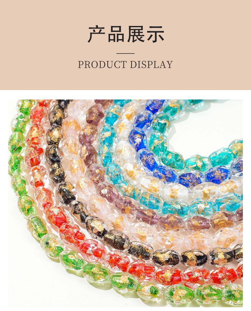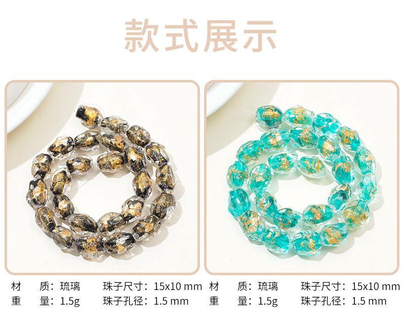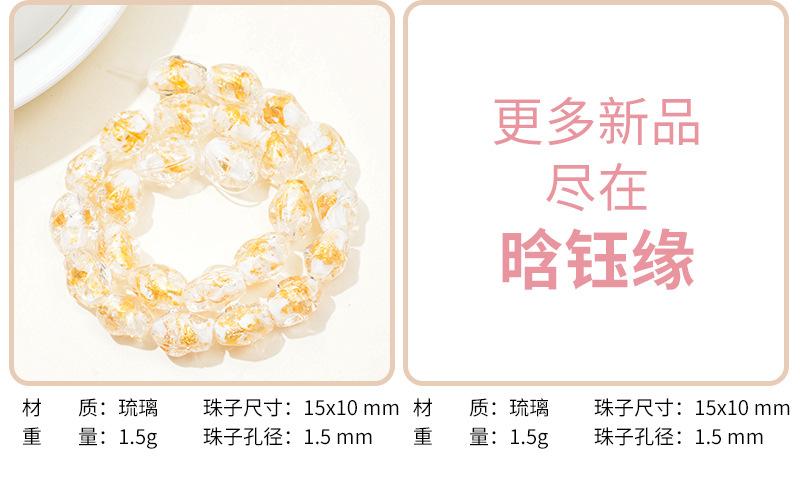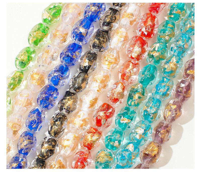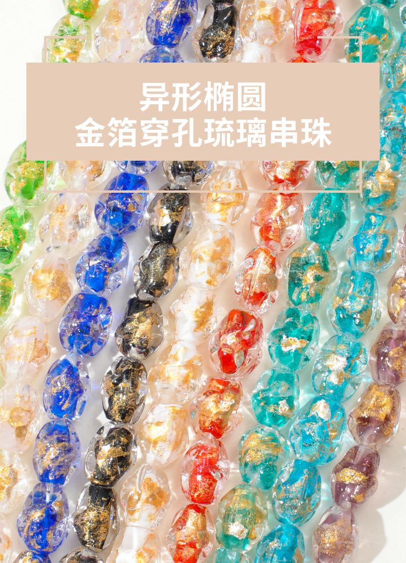 Cuentas de vidrio transparente vintage con forma ovalada de lámina dorada con agujero recto, hechas a mano, para pulseras, collares y pendientes.