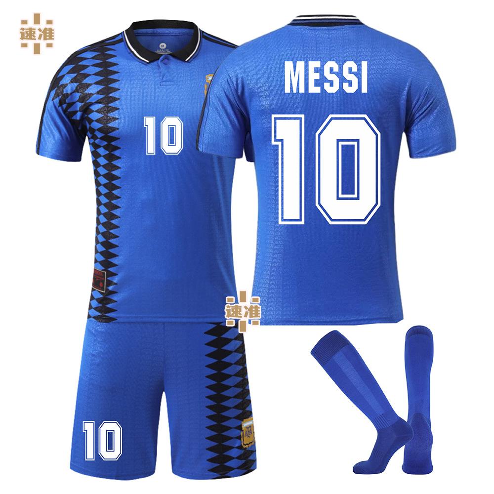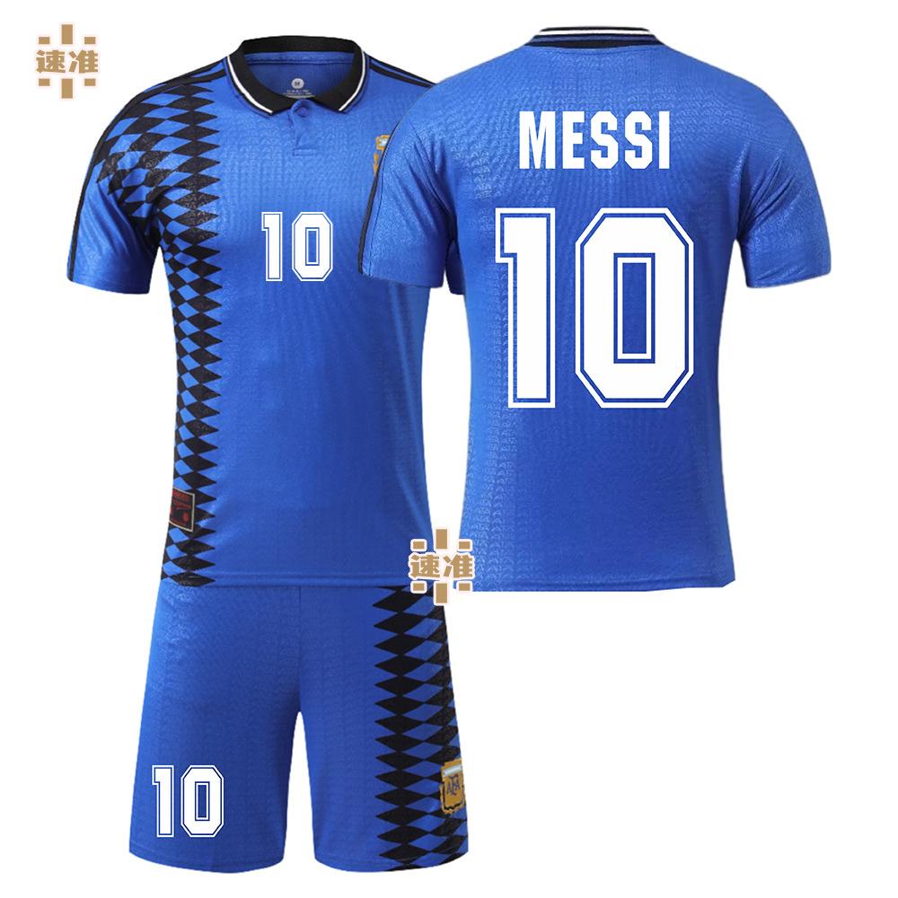 Camiseta de fútbol de Argentina 1994 n.° 10 Messi, camiseta retro para adultos y niños, Maradona, versión transfronteriza