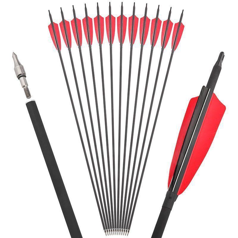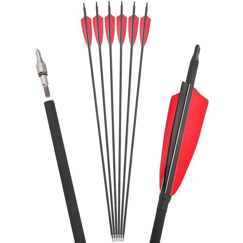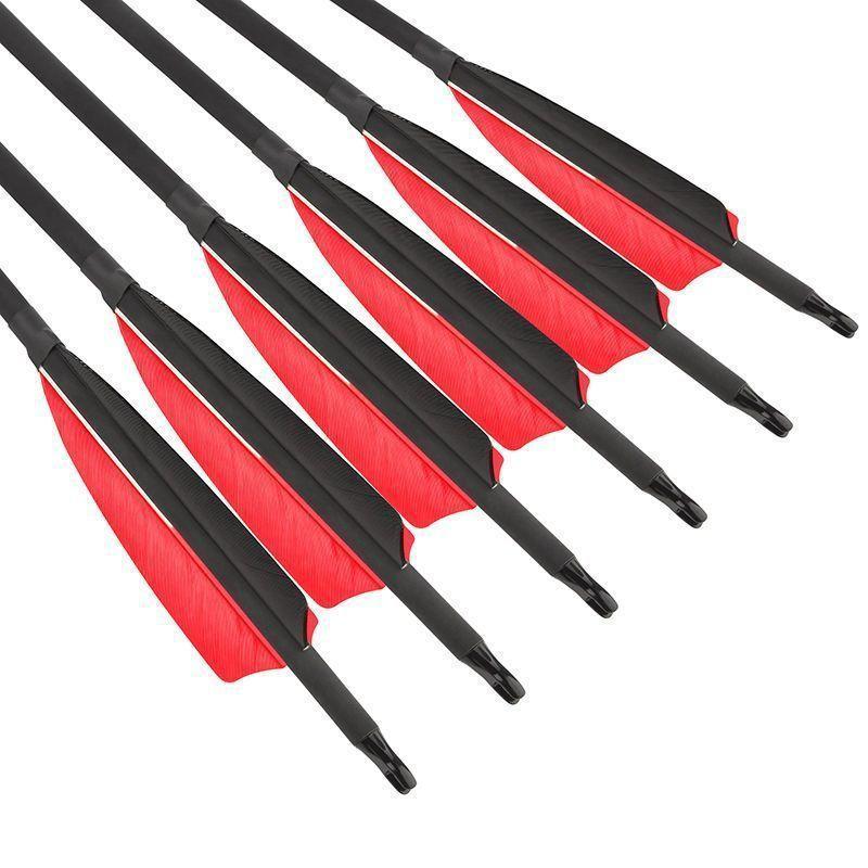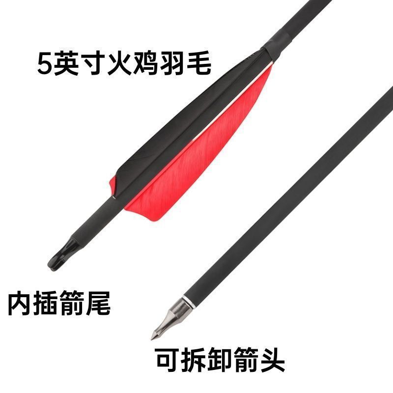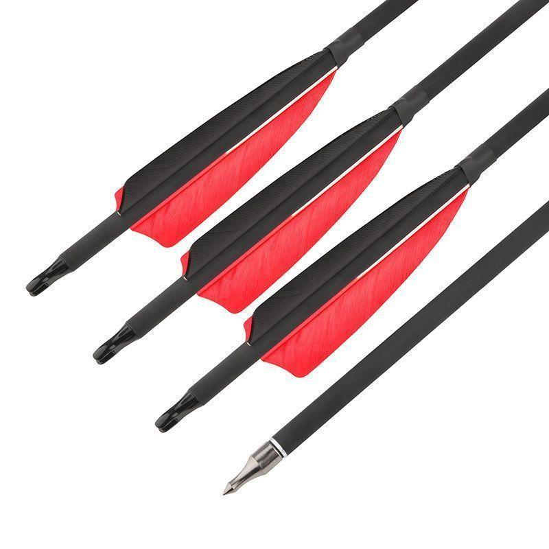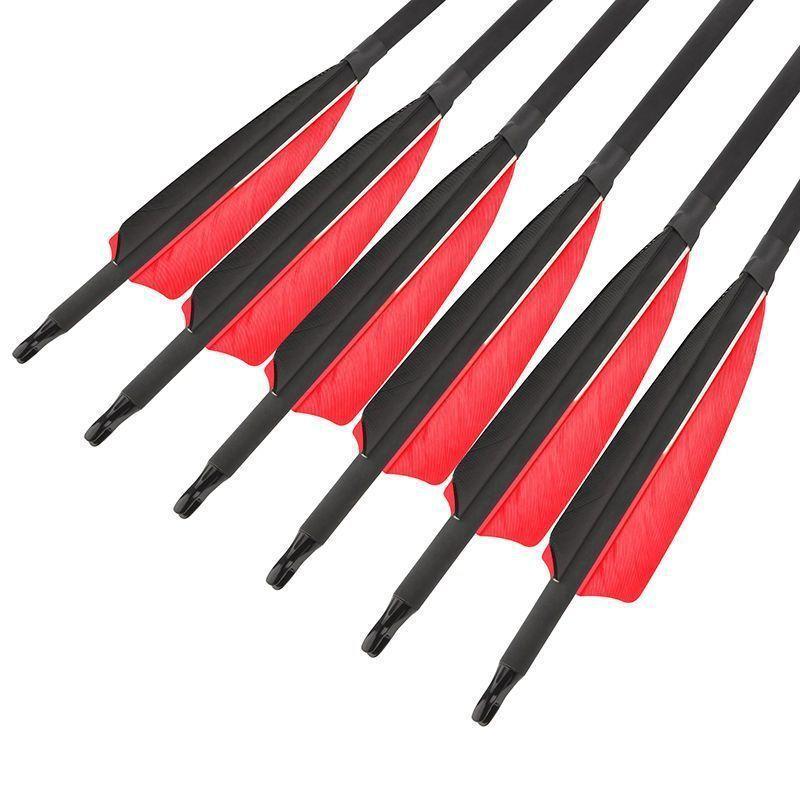 Flecha de carbono de pluma real de 4 pulgadas mezclada con flecha de carbono de pluma de pavo, flecha intercambiable, arco y flecha de caza tradicional de EE. UU., flecha de carbono de práctica
