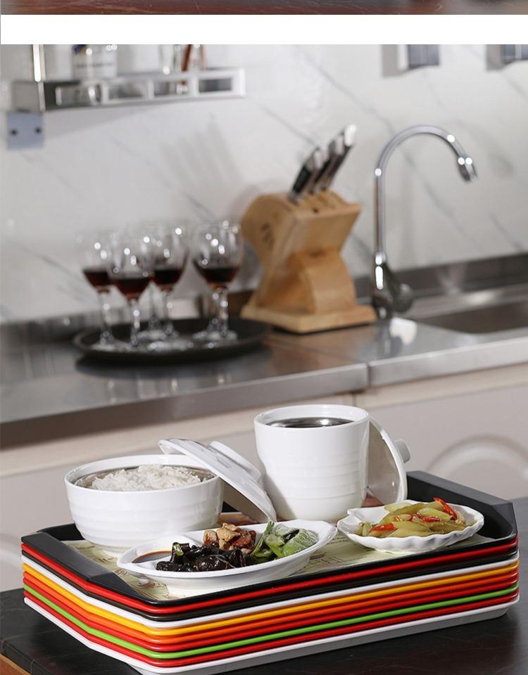 Plato de Cena Bandeja de Plástico Antideslizante Rectangular para Servir Restaurante Comedor Hamburguesa Jardín de Niños Comida Rápida Plato Plano Comercial Cuadrículas