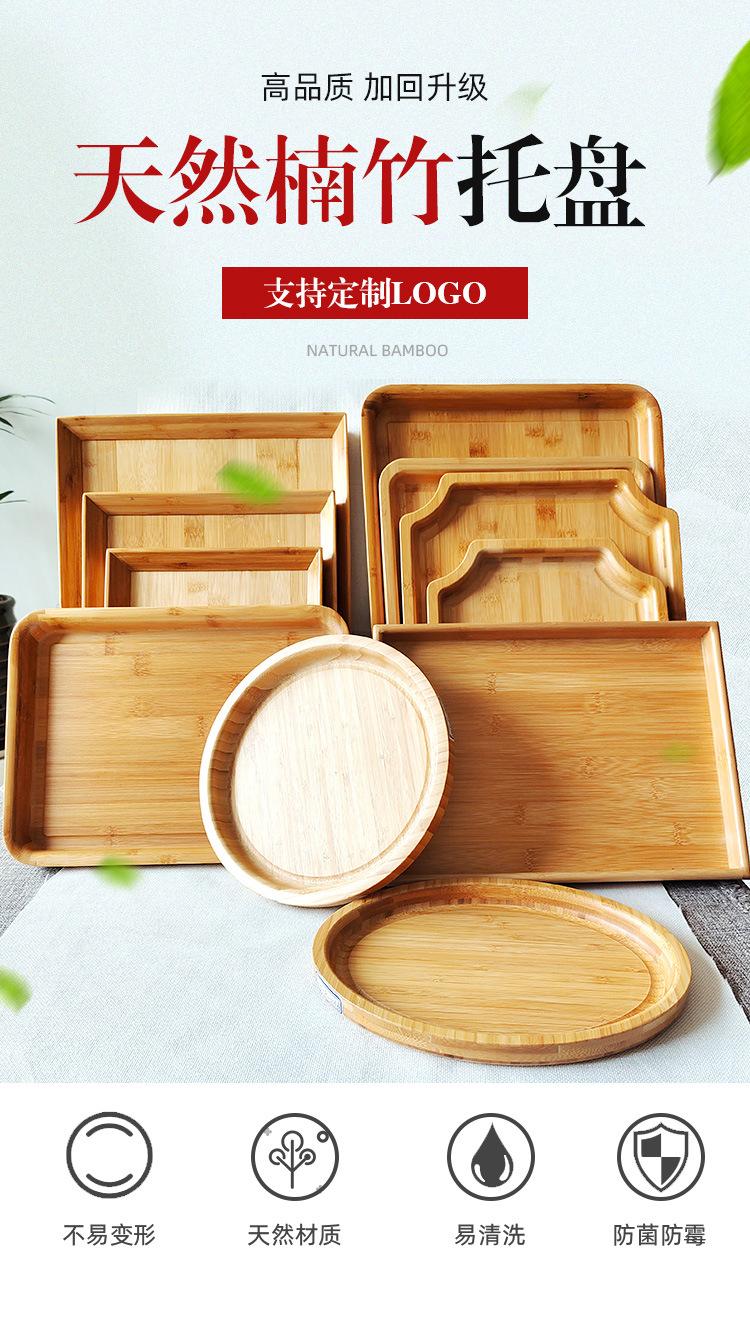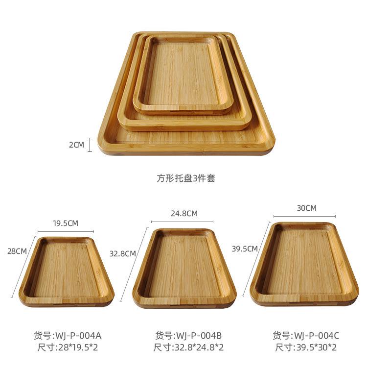 Juego de bandejas de té de bambú y madera, venta al por mayor, bandeja rectangular para el hogar, bandeja de bambú simple para frutas, bandeja de pan de estilo japonés