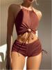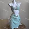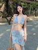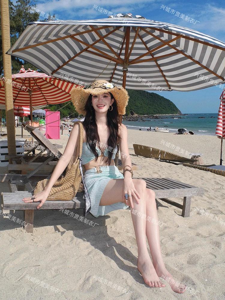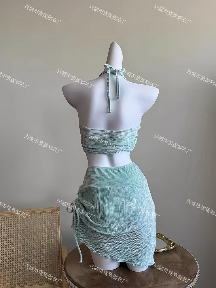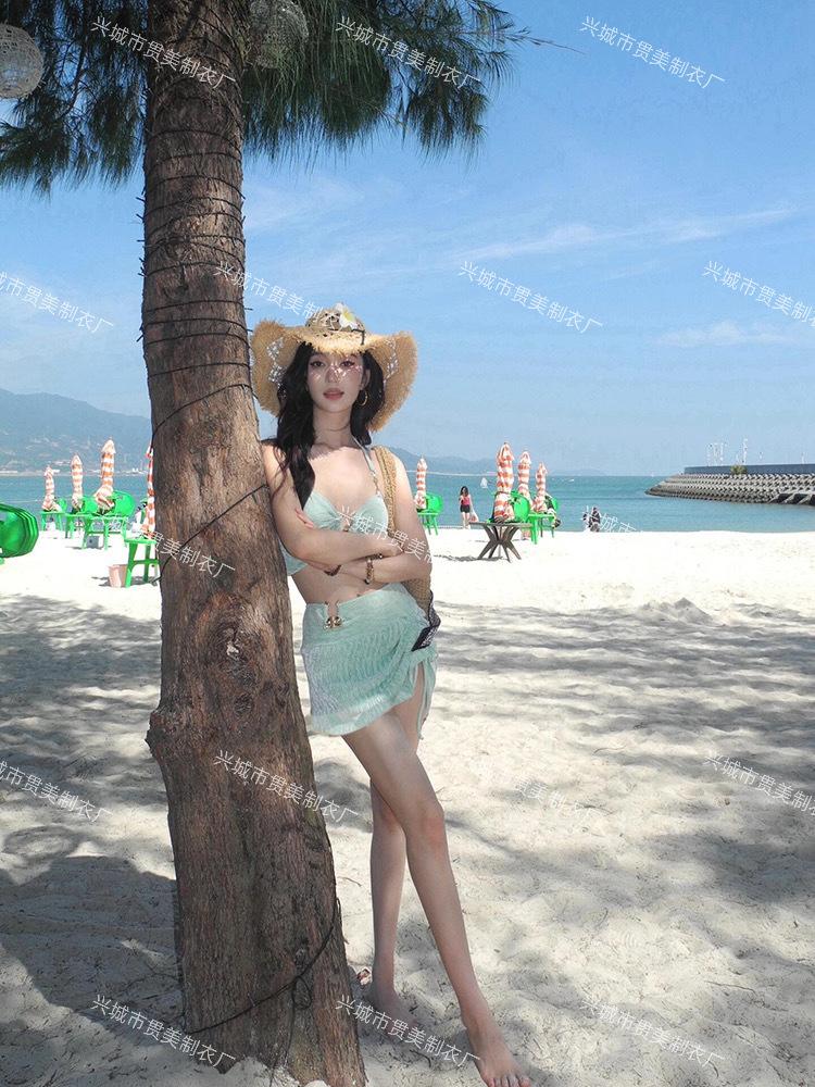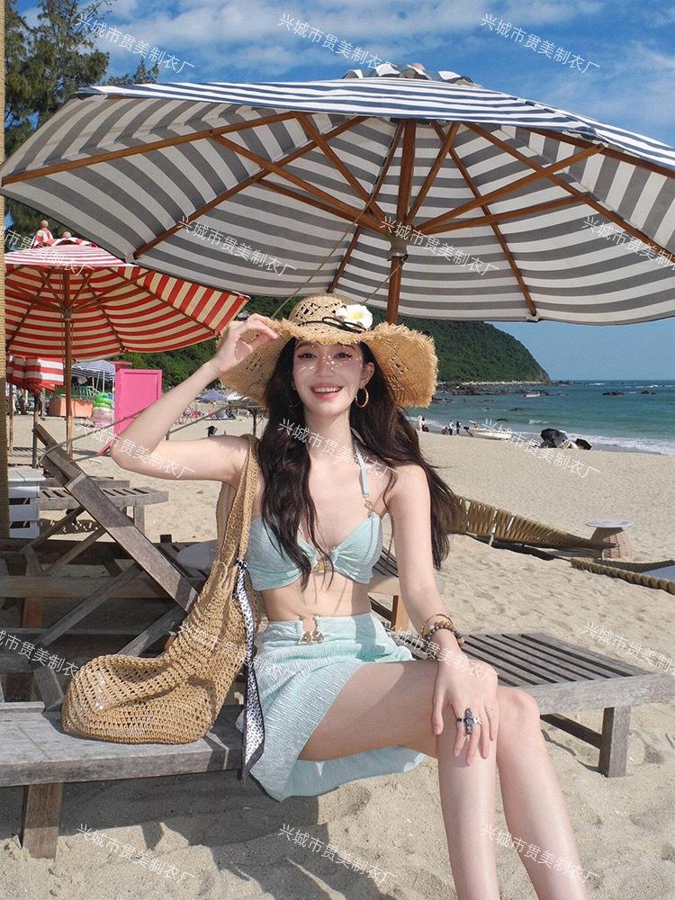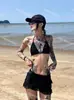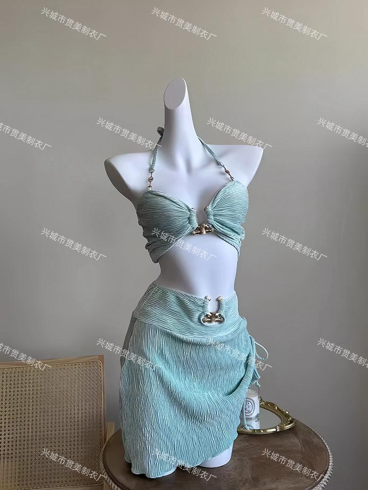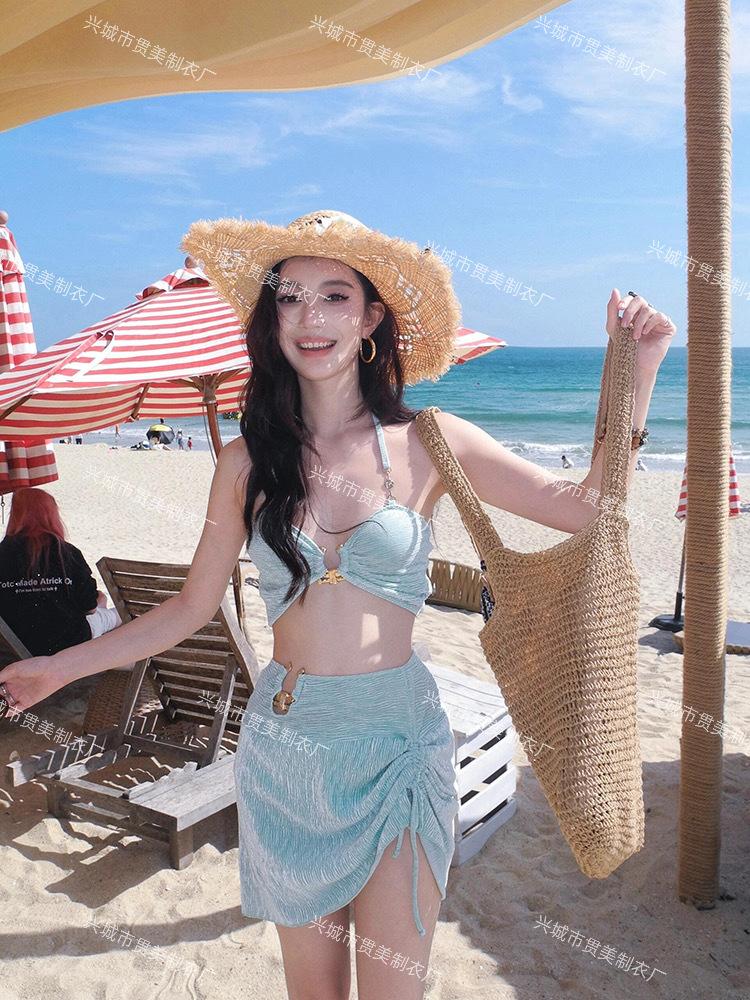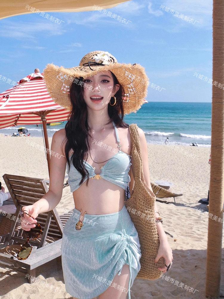 Nuevo Bikini Sexy Puro de Tres Piezas con Falda Dividida, Reunión para Pecho Pequeño, Traje de Baño para Vacaciones en la Playa y la Isla de Aguas Termales