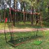 Malla de práctica de múltiples objetivos: el orificio pequeño superior es para practicar la precisión y los lanzamientos altos, el orificio cuadrado del medio es para practicar el lanzamiento y el orificio cuadrado inferior cerca del suelo es para practicar tiros cortos;