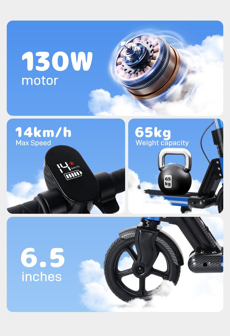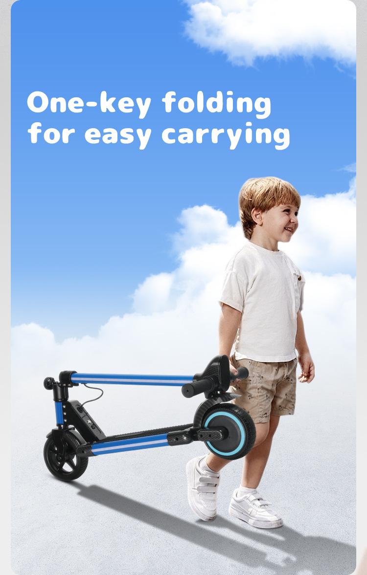 Patinete eléctrico infantil plegable pequeño y portátil de dos ruedas de 6,5 pulgadas para niños de 3 a 8 años