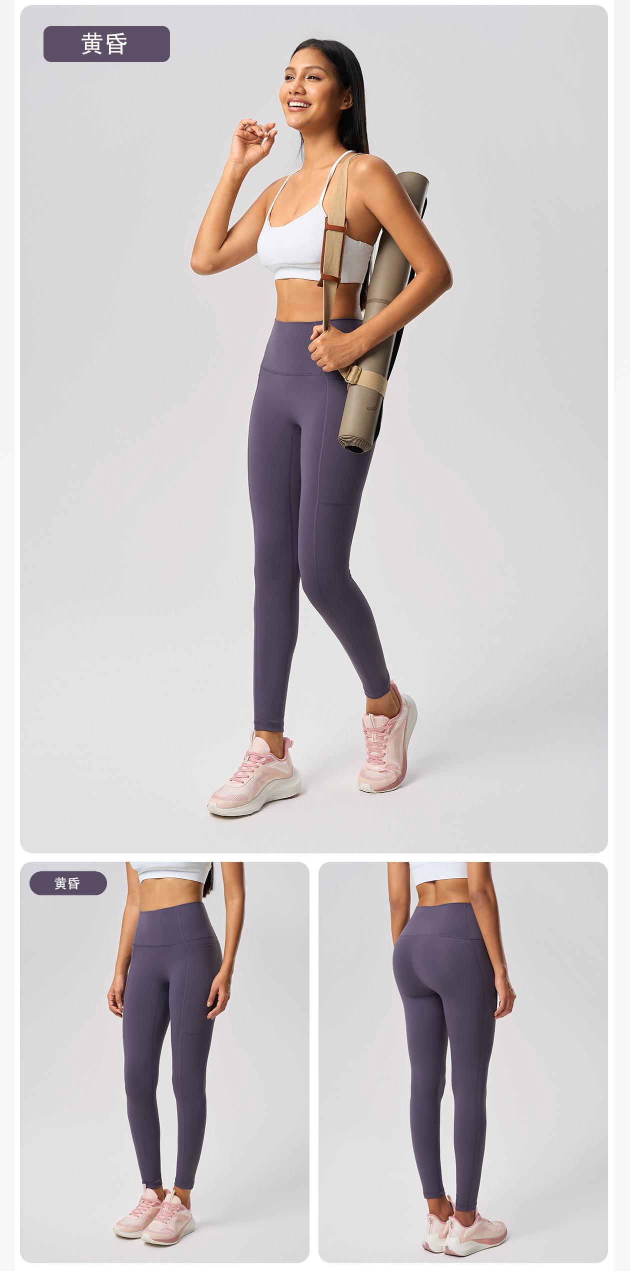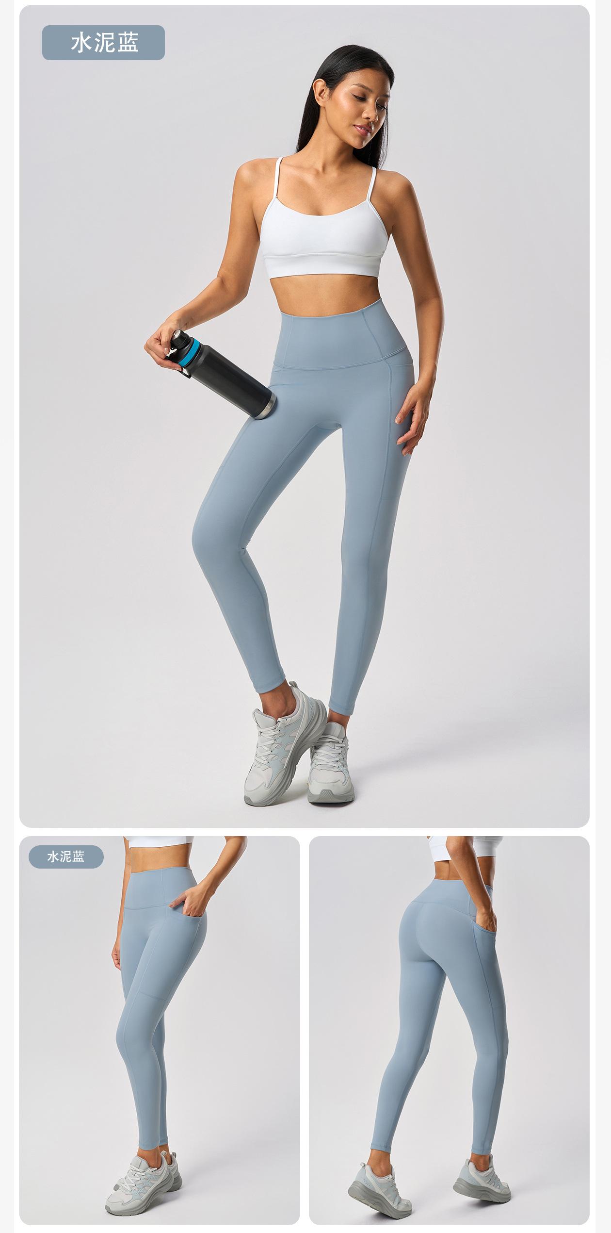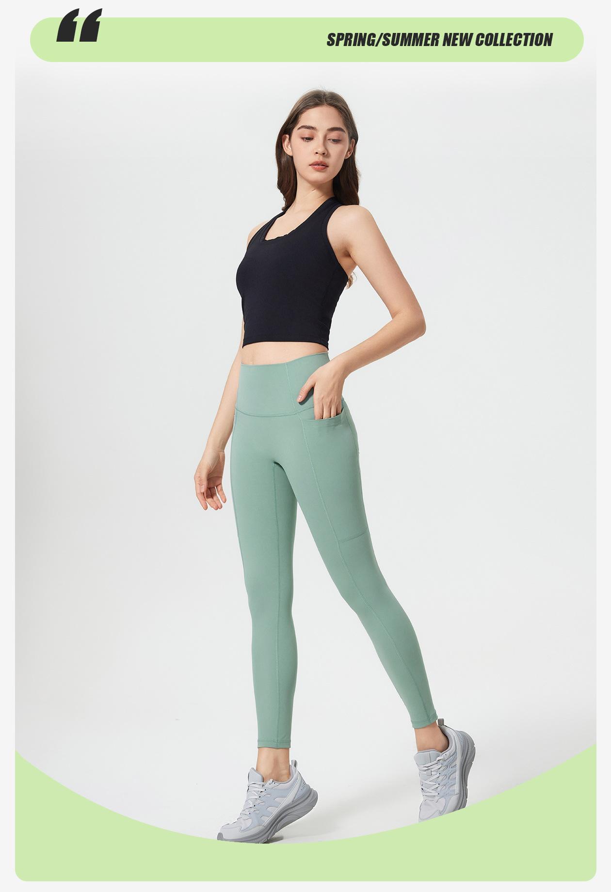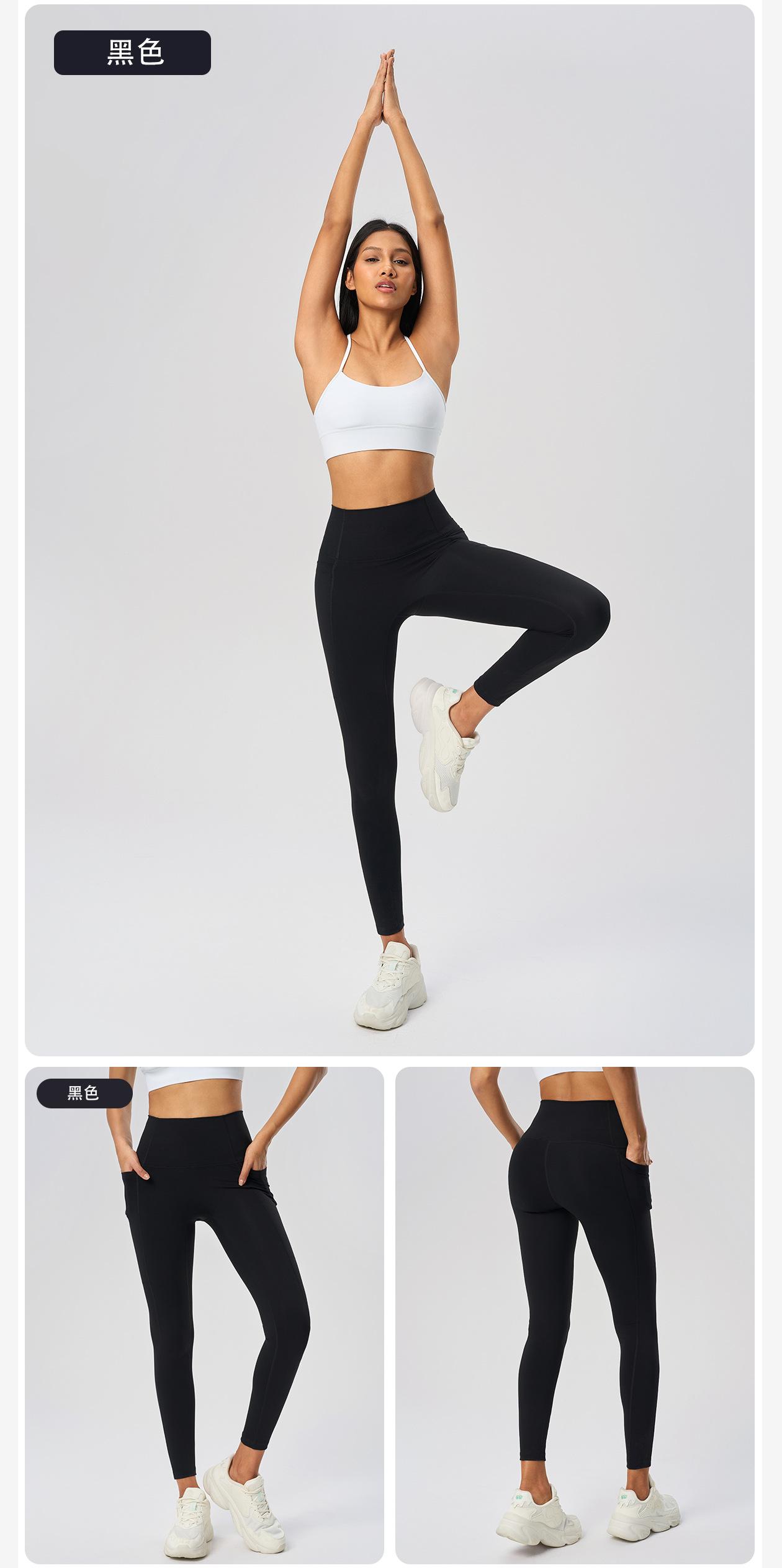 Pantalones Capri de Yoga Desnudo Cintura Alta Levanta Cadera Bolsillo Ajustados Pantalones Deportivos Elásticos Fitness Abdominal para Mujer D25036