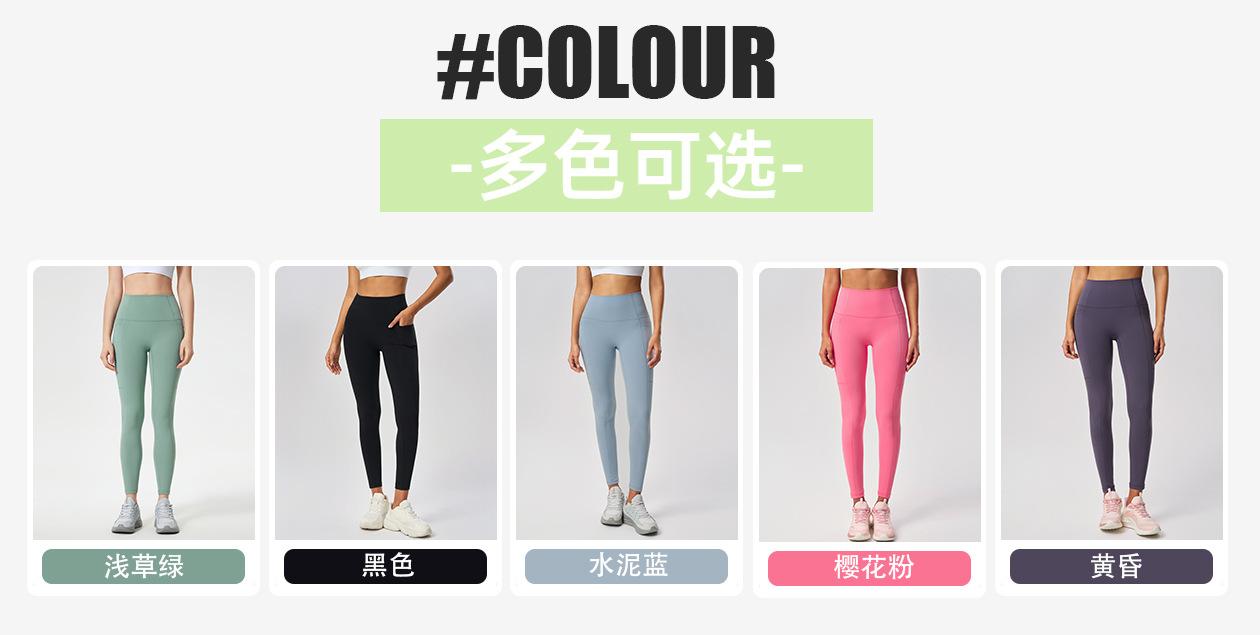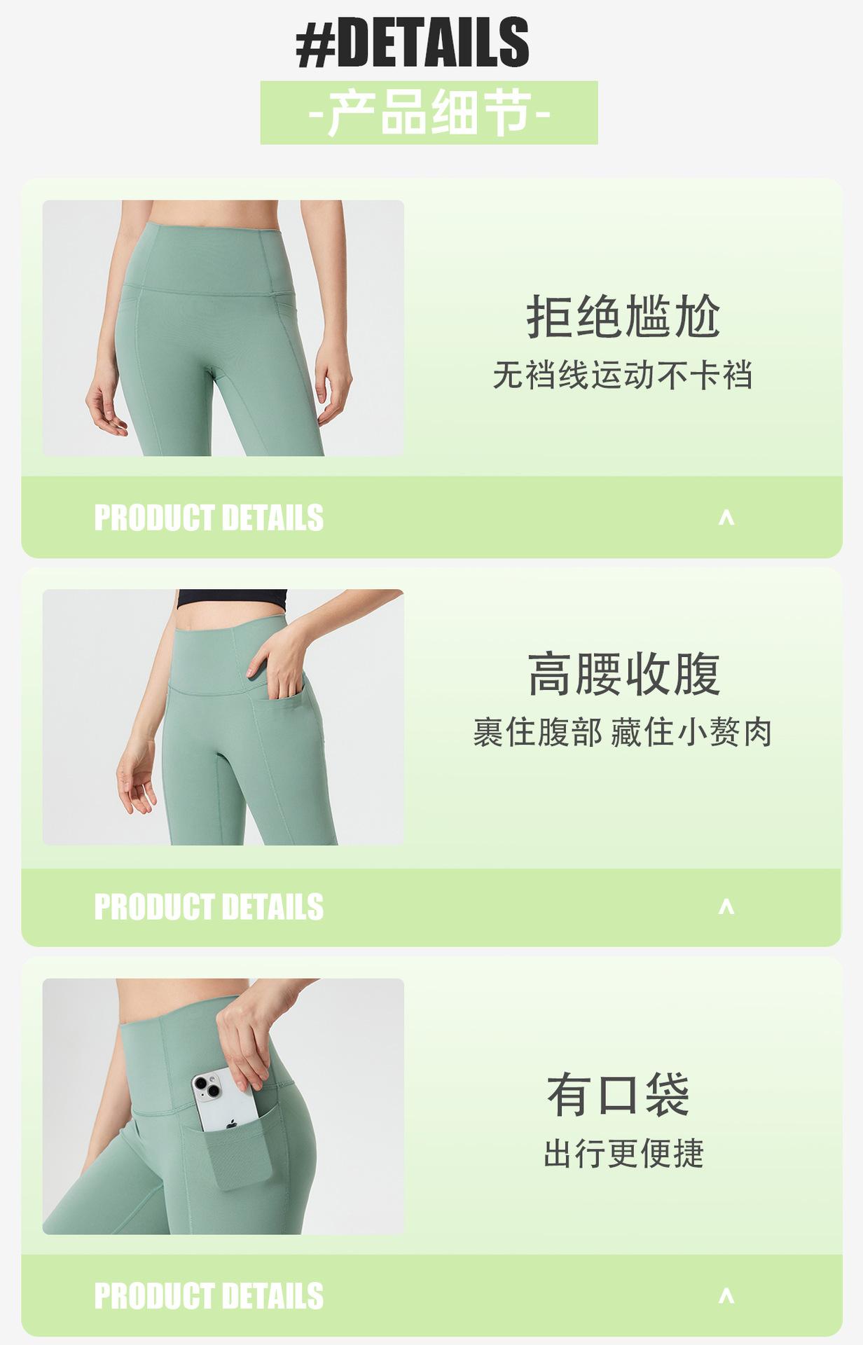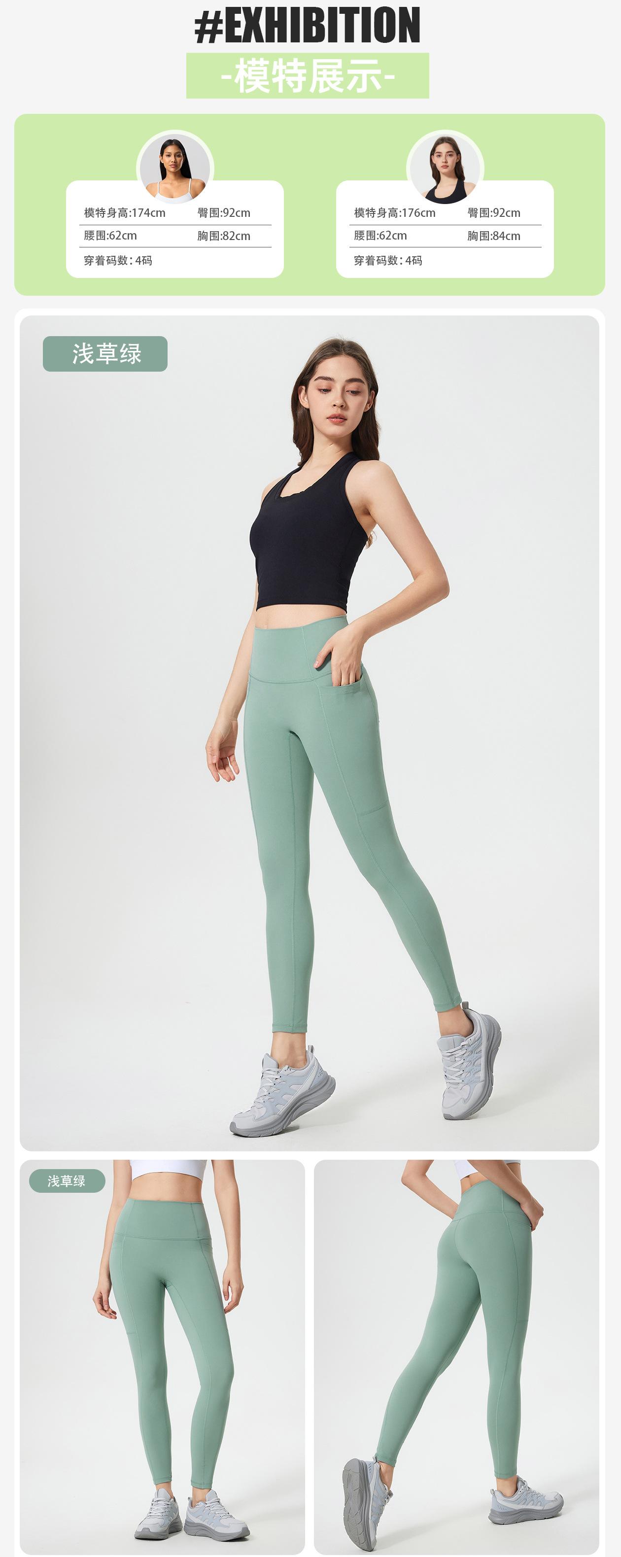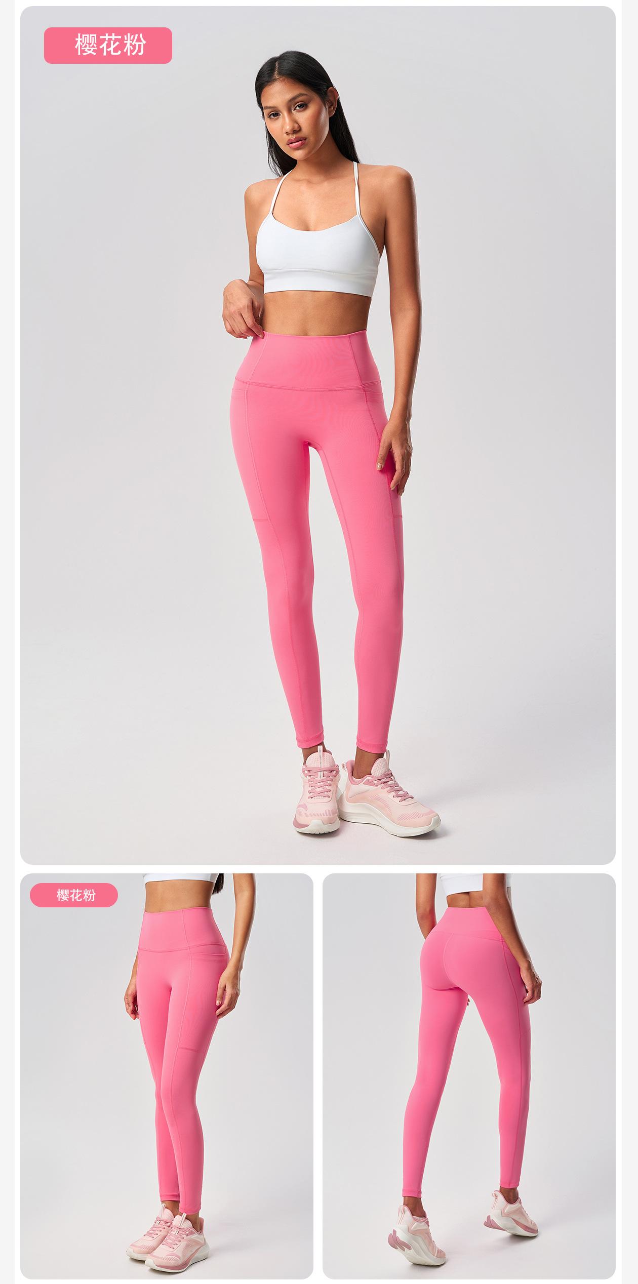 Pantalones Capri de Yoga Desnudo Cintura Alta Levanta Cadera Bolsillo Ajustados Pantalones Deportivos Elásticos Fitness Abdominal para Mujer D25036