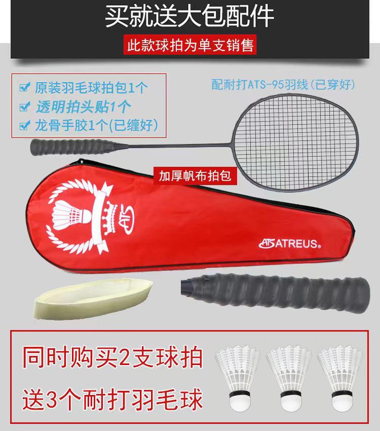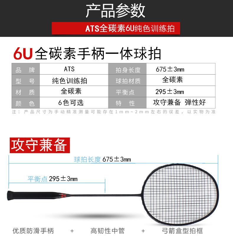 Raqueta de bádminton ats mango de carbono 6u fibra de carbono completa raqueta individual raqueta de entrenamiento para hombres y mujeres principiantes