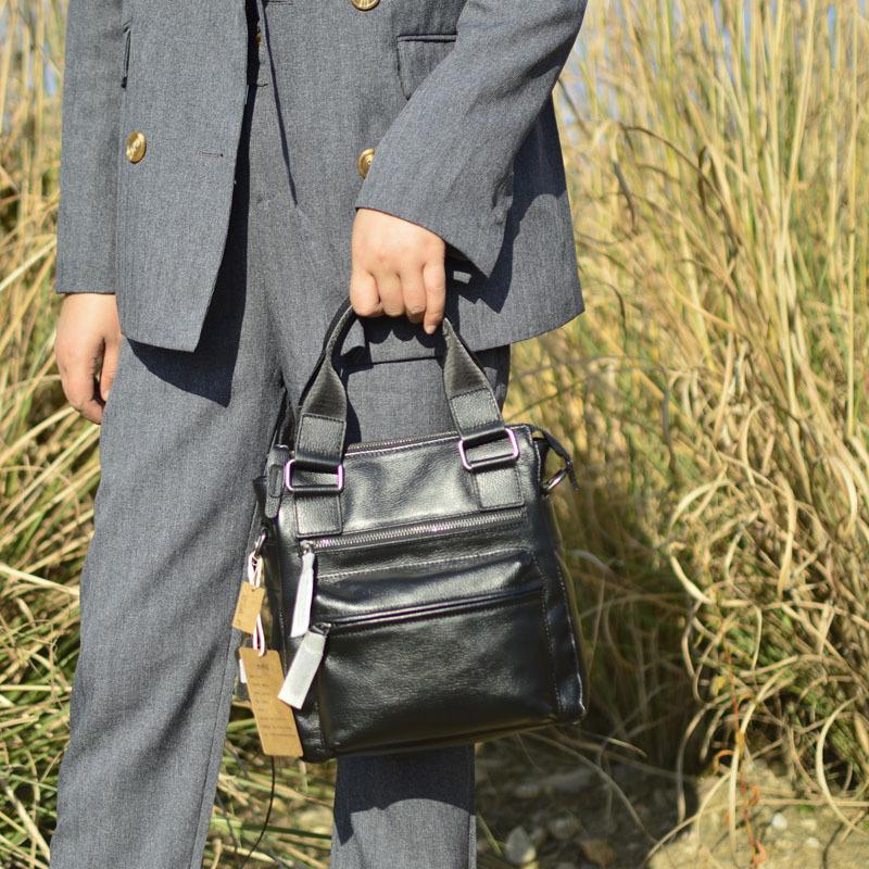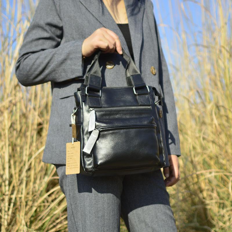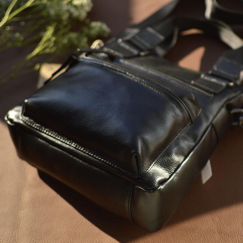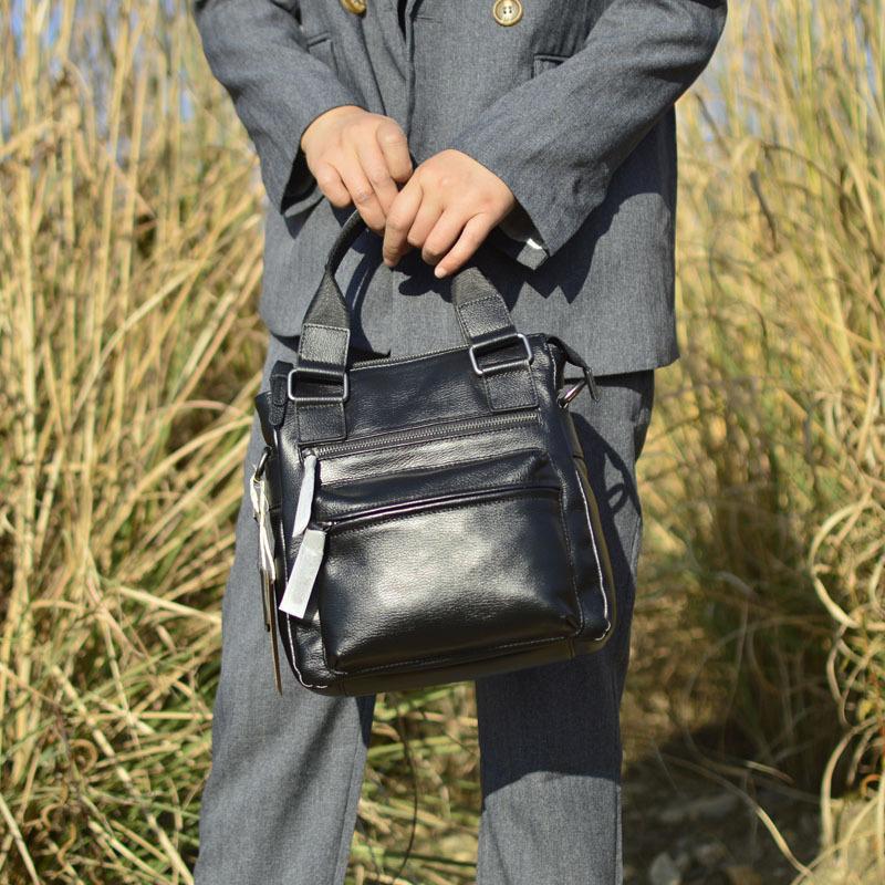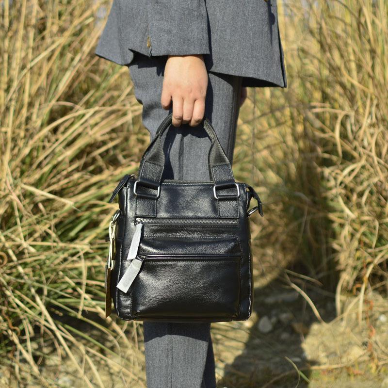 Bolso pequeño de cuero para hombre, estilo vertical, informal, tipo mensajero, de piel de vaca de primera capa.