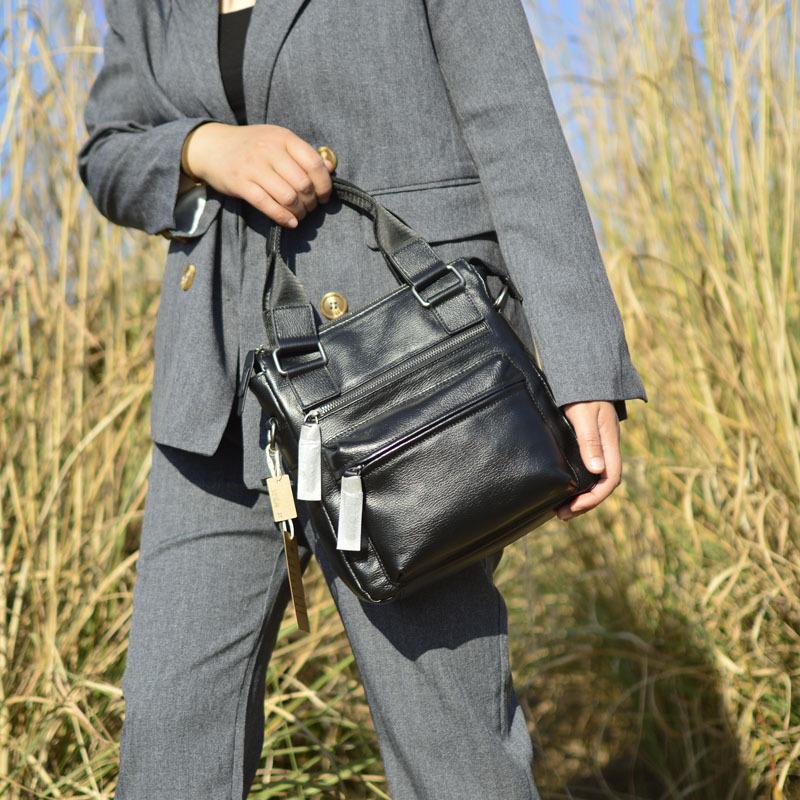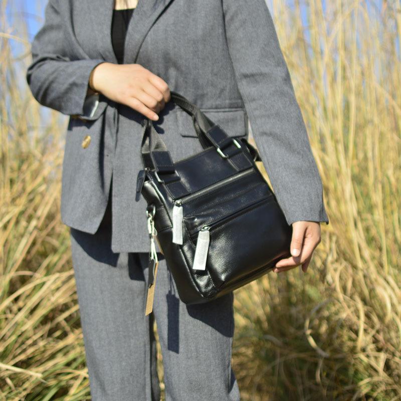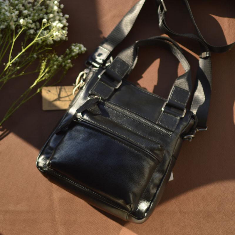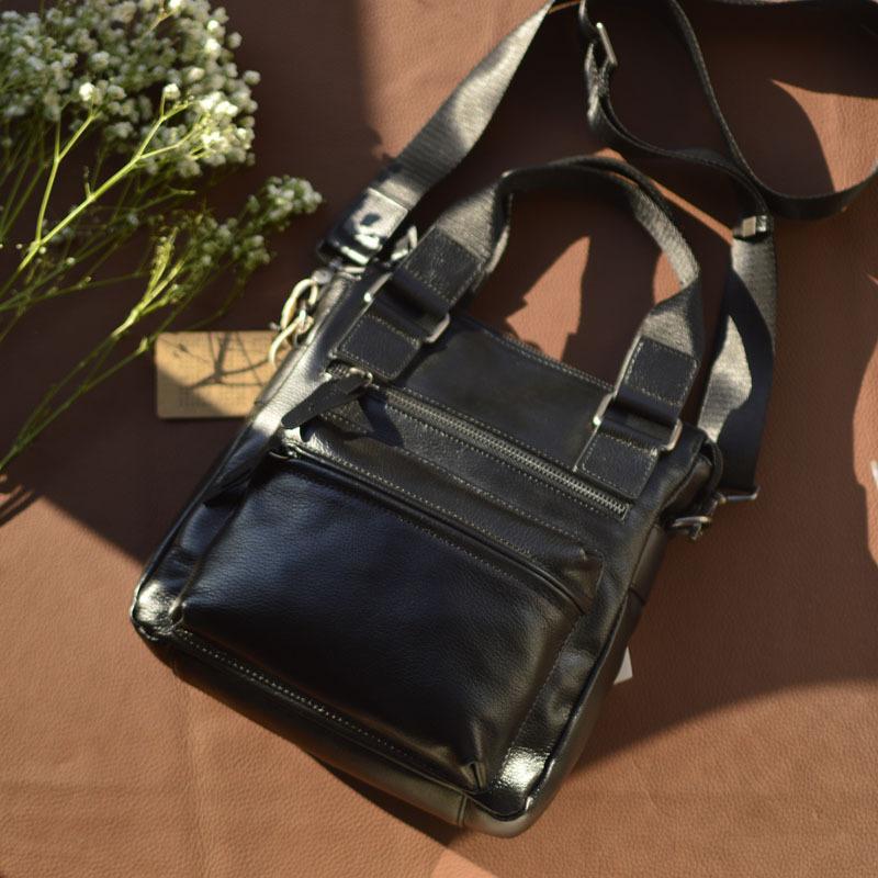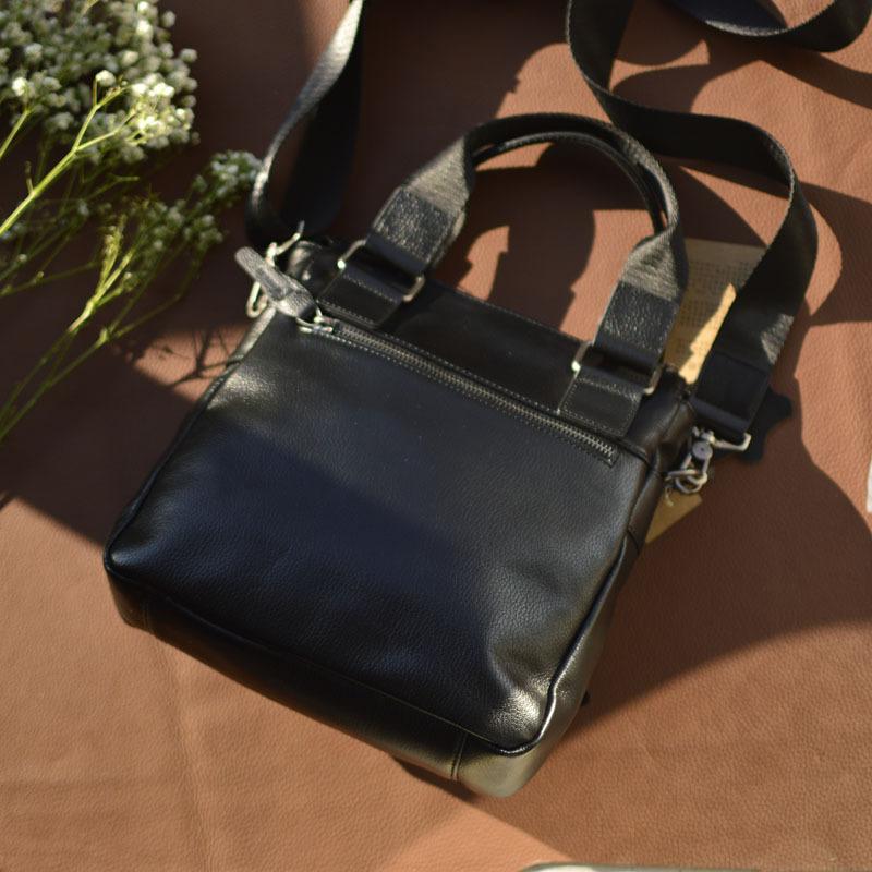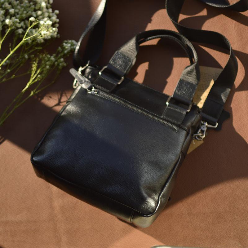 Bolso pequeño de cuero para hombre, estilo vertical, informal, tipo mensajero, de piel de vaca de primera capa.