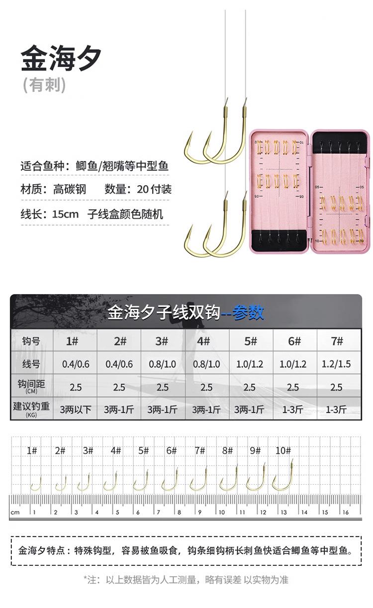 Extra short gold haixi with thorn no. 3 sub-line 0.8+1.0 10 each