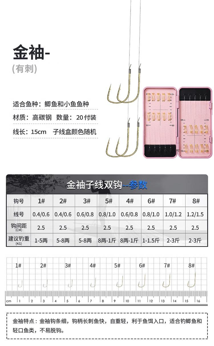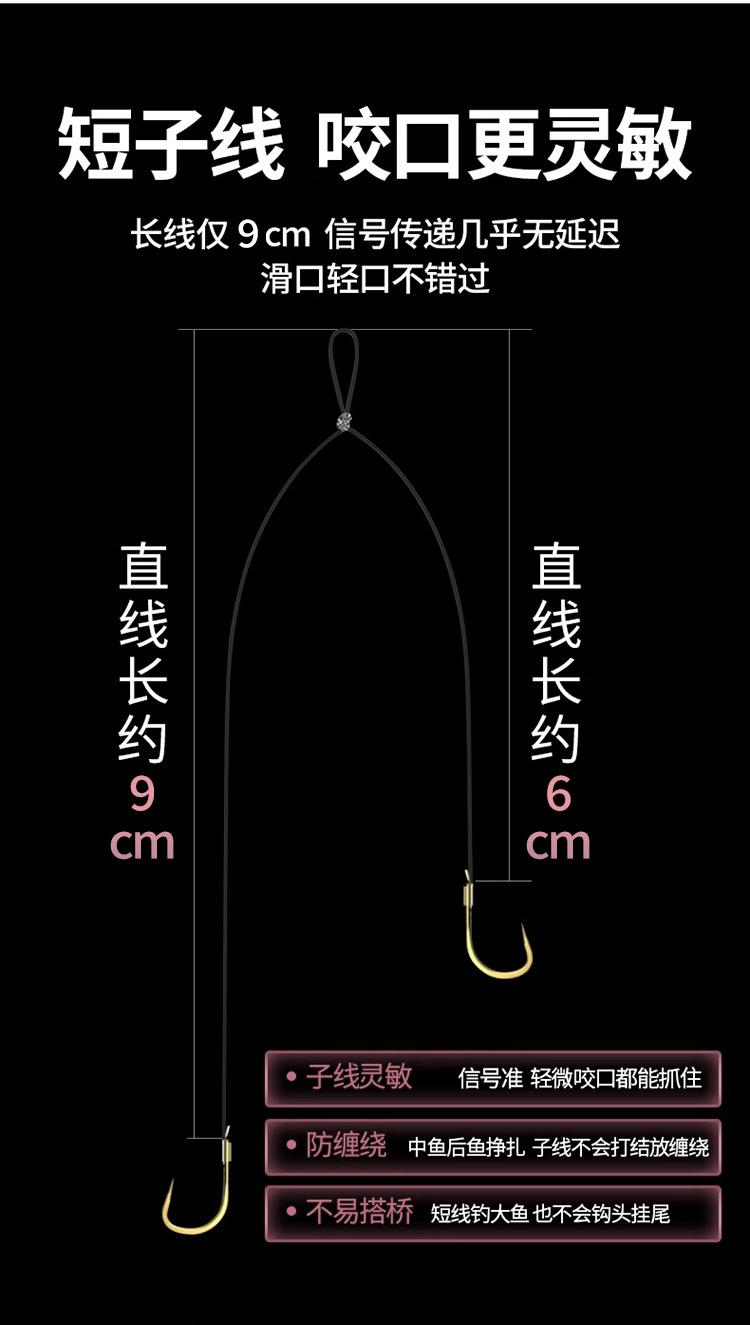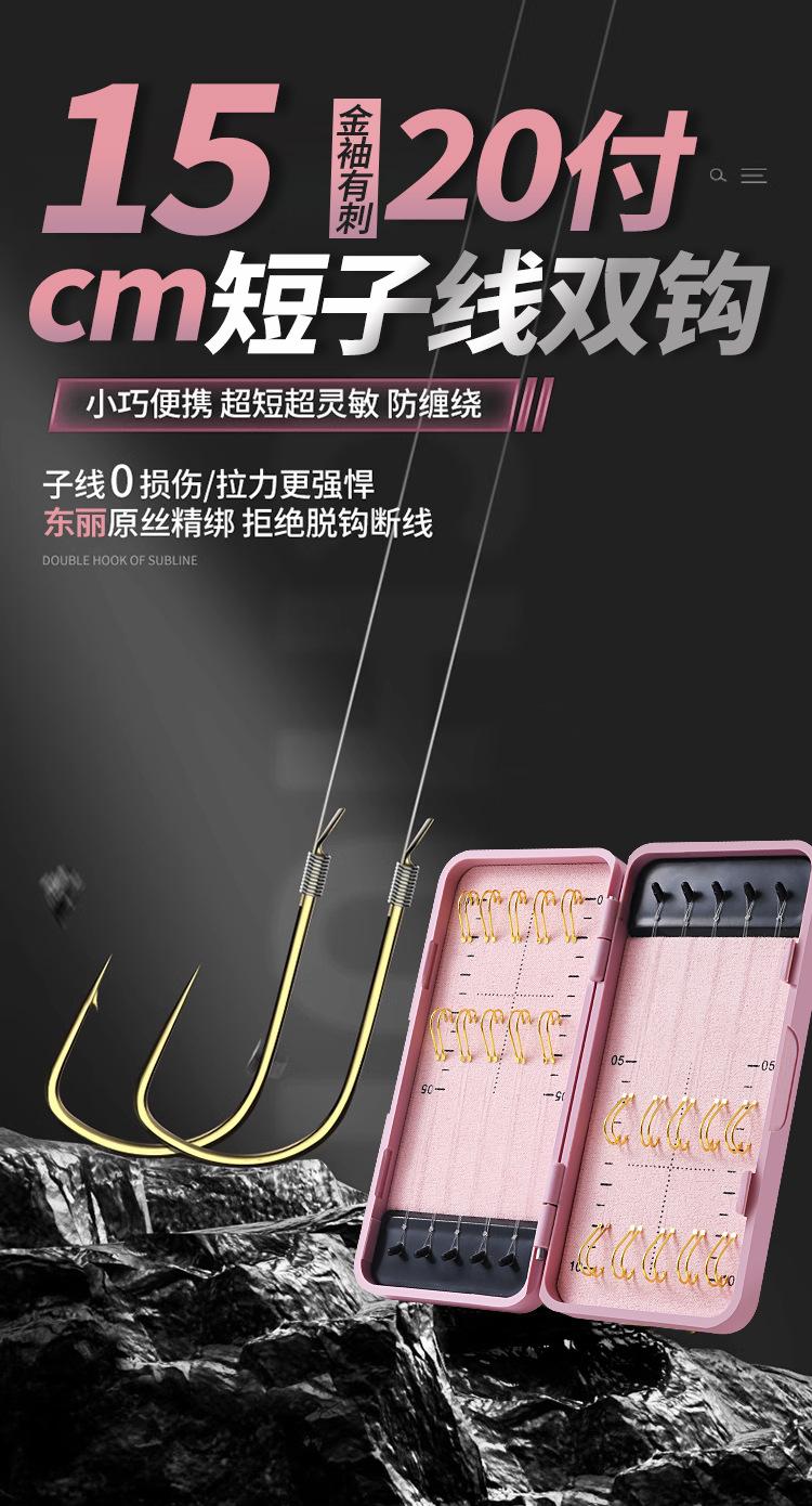 Nuevo anzuelo doble de línea subcorta ultracorta de 15 cm con acabado anti-enrollamiento, método de pesca Tumeizhou, manga dorada, anzuelo para carpa cruciana de noche de mar dorado