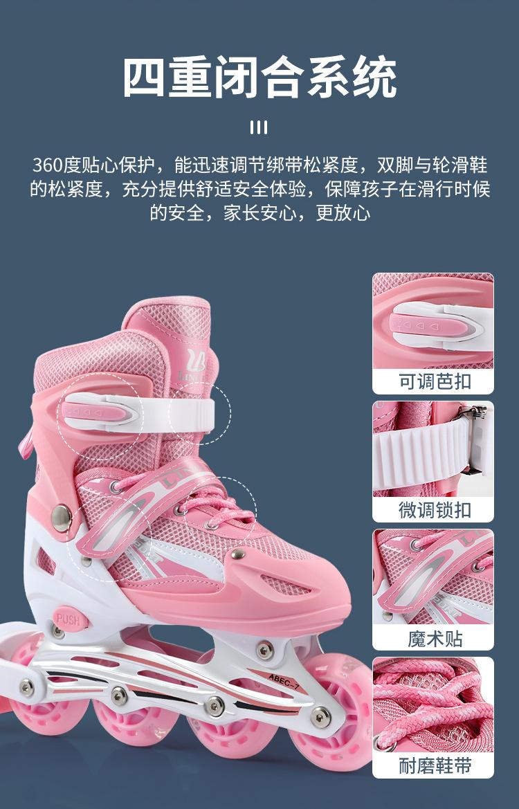 Princess pink roller skates + helmet + protective gear 6-piece set + gifts