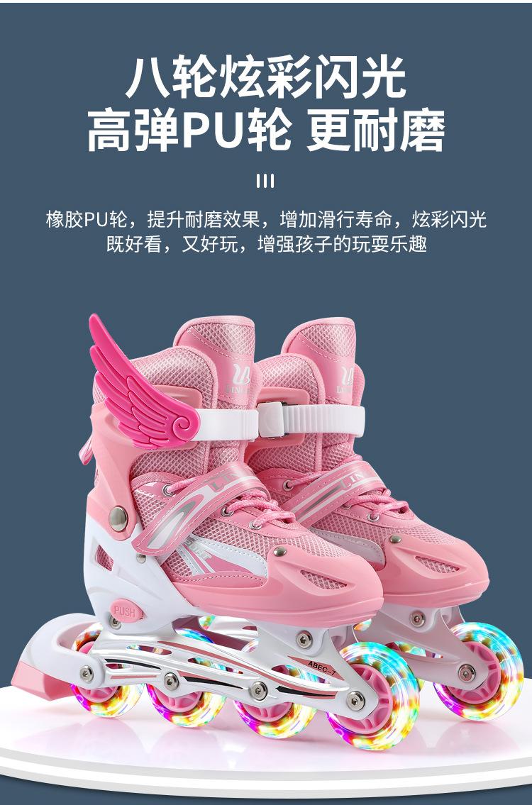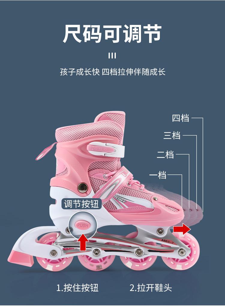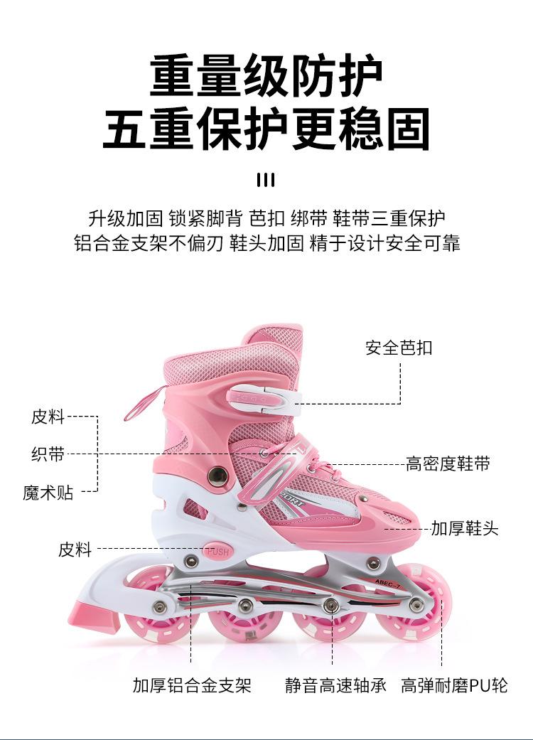 Princess pink roller skates + helmet + protective gear 6-piece set + backpack + gifts