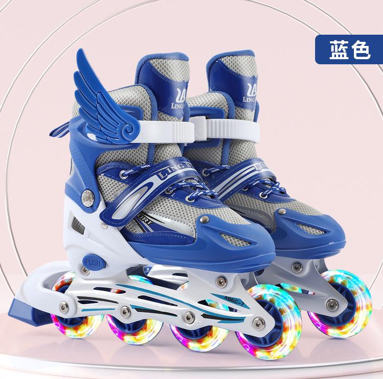 Sapphire blue roller skates + helmet + protective gear 6-piece set + gifts