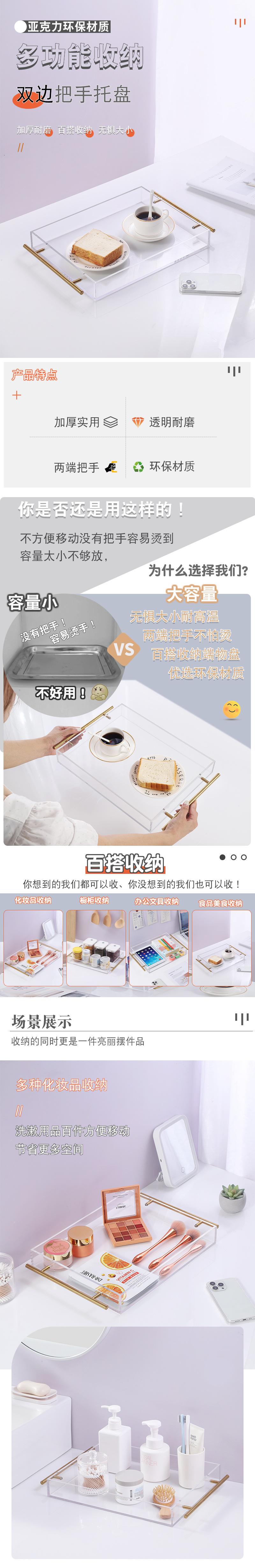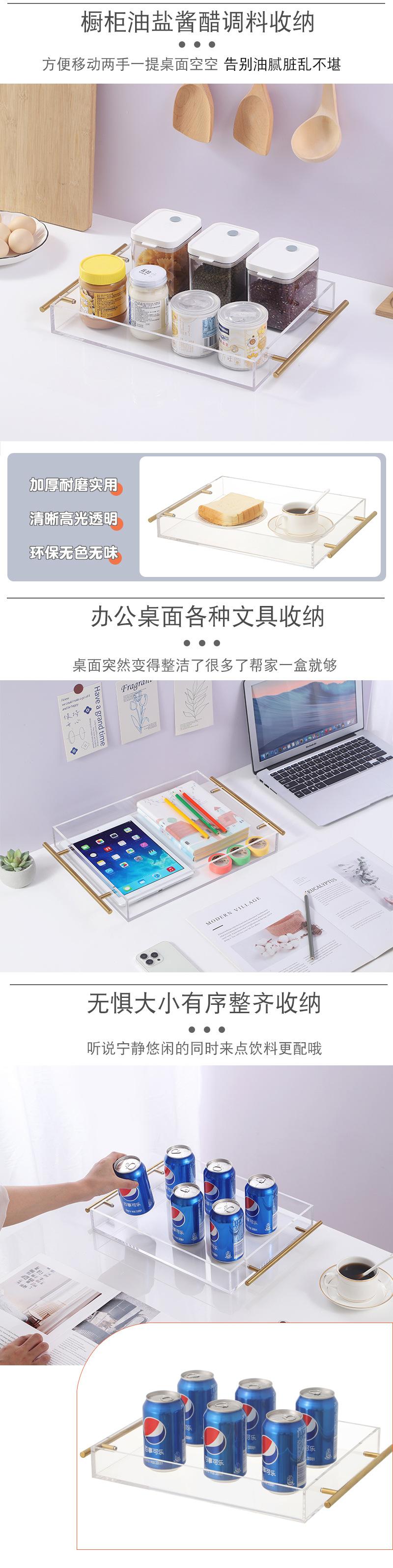 Bandeja de acrílico transparente rectangular para el hogar, bandeja para la cena de frutas con asa, bandeja para el té, bandeja para almacenar productos para el hogar, caja cuadrada