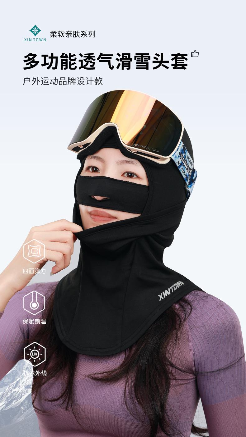 Casco de esquí de doble capa Xingheng, máscara de equitación con chapa para exteriores, otoño e invierno, cálido, protección para el cuello, forro polar fino a prueba de frío