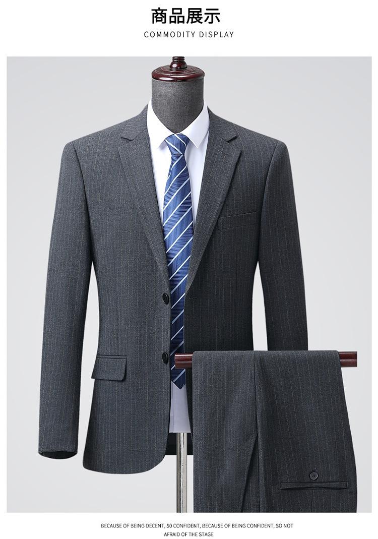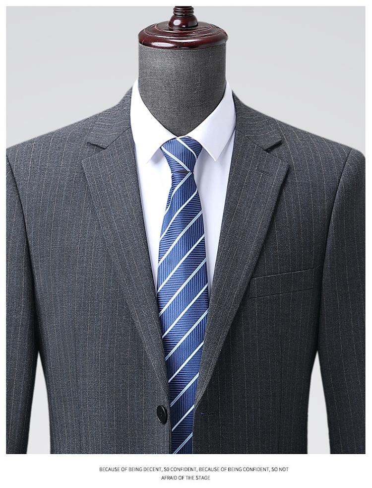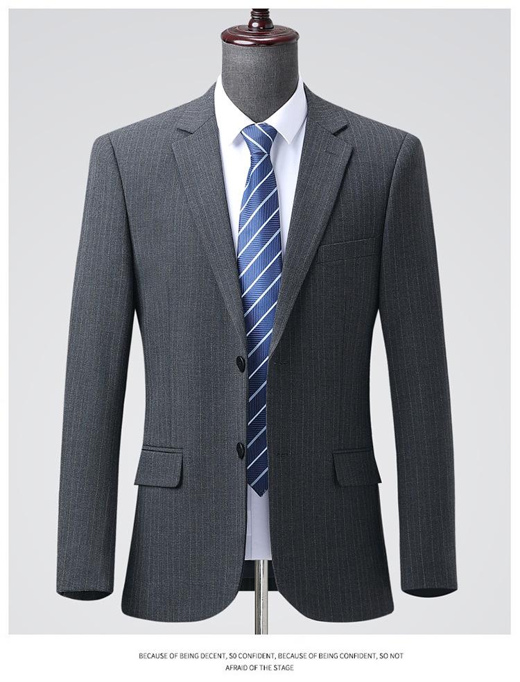 Traje informal de negocios profesional de primavera 2025 de cuello blanco para hombre, nuevo traje a rayas sin dividir para hombre
