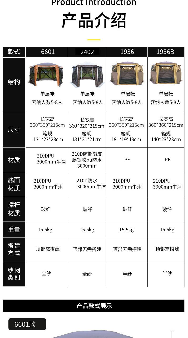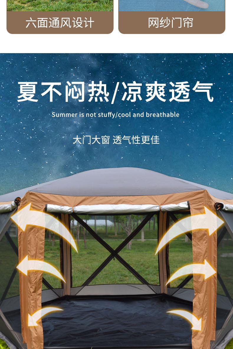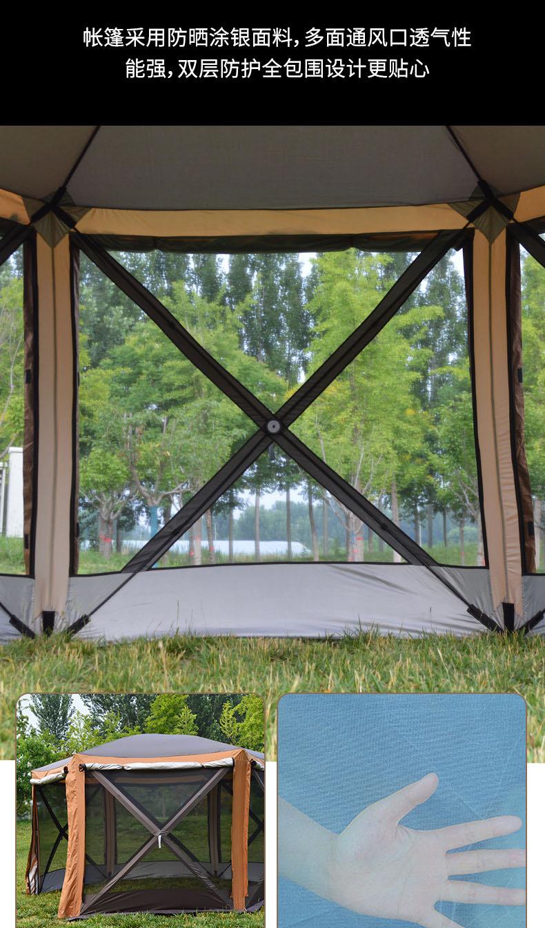 Tienda de campaña plegable hexagonal automática para exteriores, venta al por mayor de fábrica, para salidas rápidas, equipo de acampada familiar para 5-8 personas