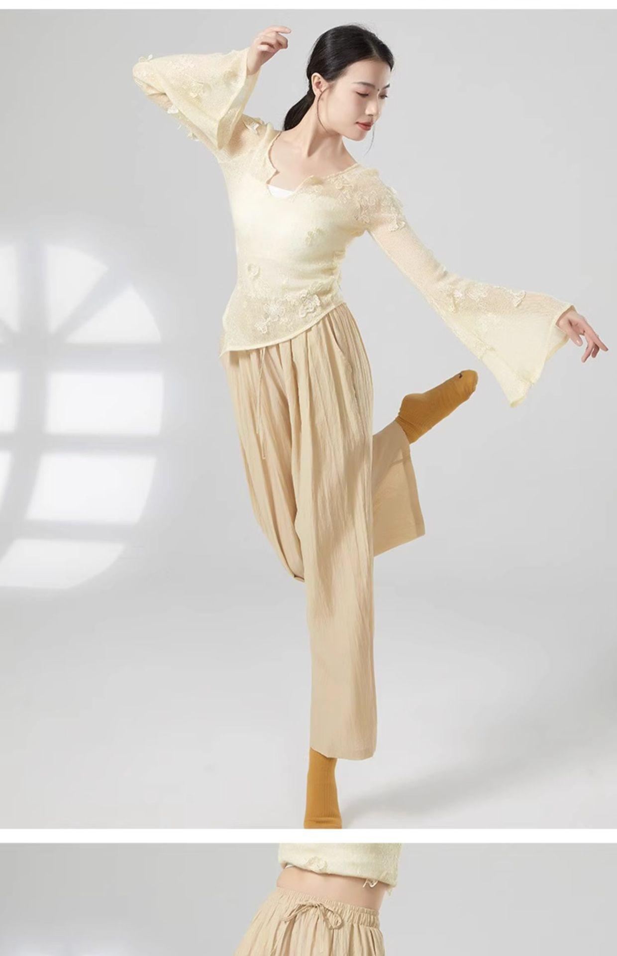 Pantalones de baile moderno, ropa de práctica de baile, pantalones de pierna ancha y recta con bolsillo, elegante traje de danza clásica étnica china.